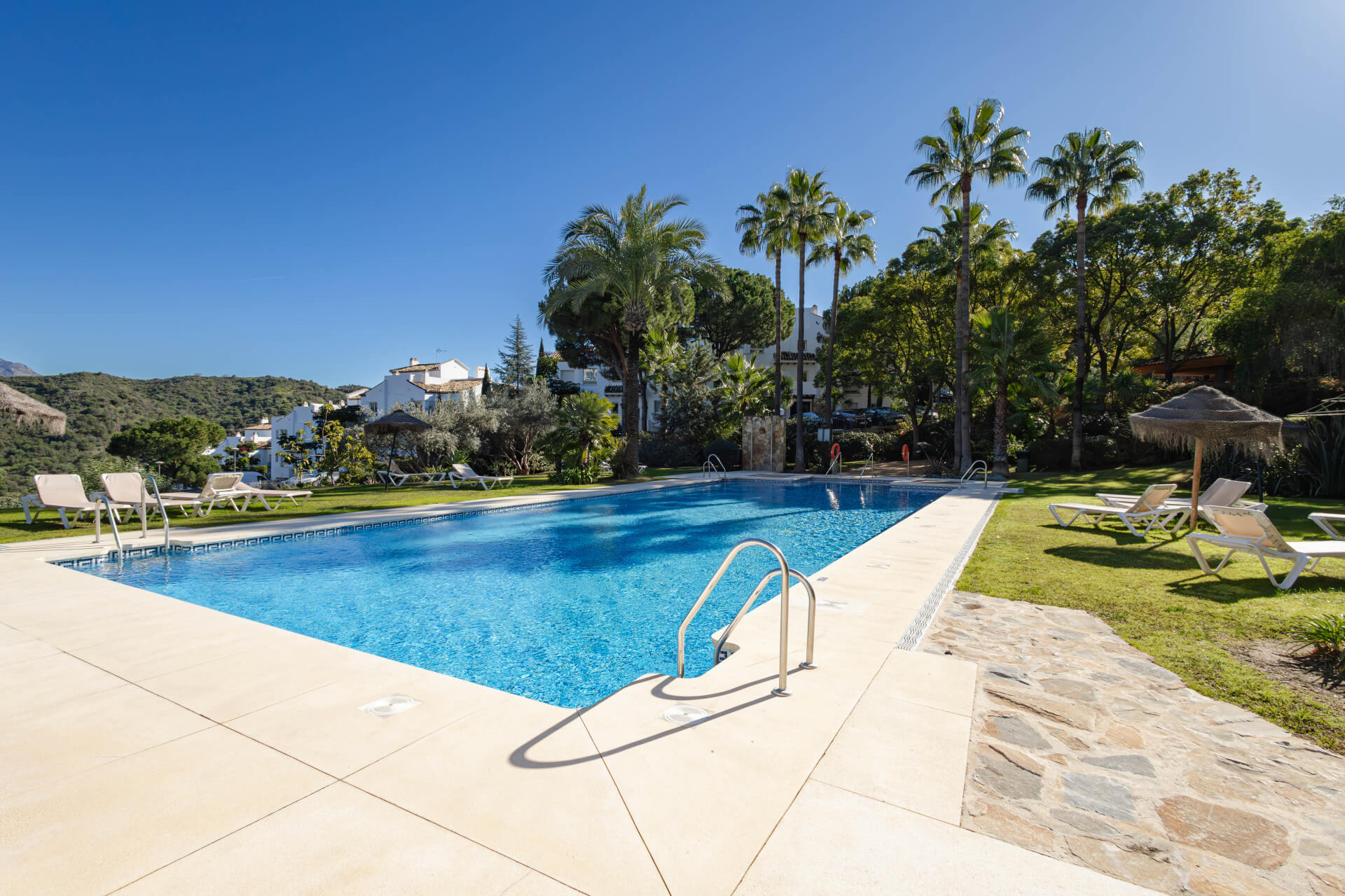 Situated just five minutes from the La Quinta Golf Clubhouse, the property is ideally located for both leisure and convenience. Marbella’s historic town center is only 15 km away, and the glamorous Puerto Banús is just 7 km from your doorstep. With the beach only a 6 km drive, this apartment perfectly combines serene living with easy access to vibrant coastal attractions.