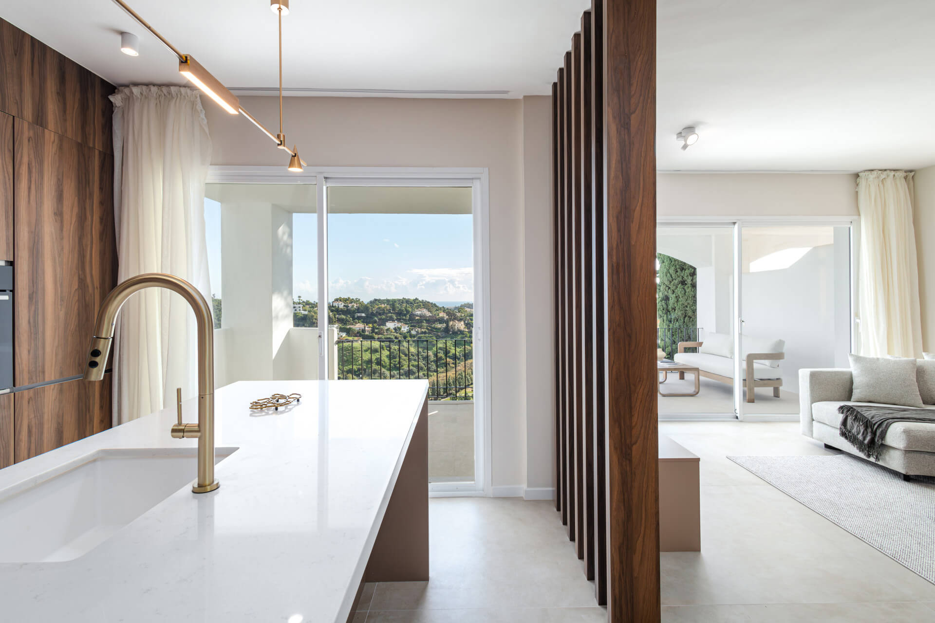 Meticulously renovated to the highest Scandinavian standards, this home features three generously sized bedrooms and two beautifully designed bathrooms. The interiors are flooded with natural light and decorated in calming, neutral tones that create an inviting atmosphere. The pièce de résistance is the spacious terrace, which comes complete with a cozy outdoor bathtub. From here, you can soak in panoramic views of the mountains, the shimmering sea, and the lush fairways of the surrounding golf course – the perfect setting for relaxation or entertaining.