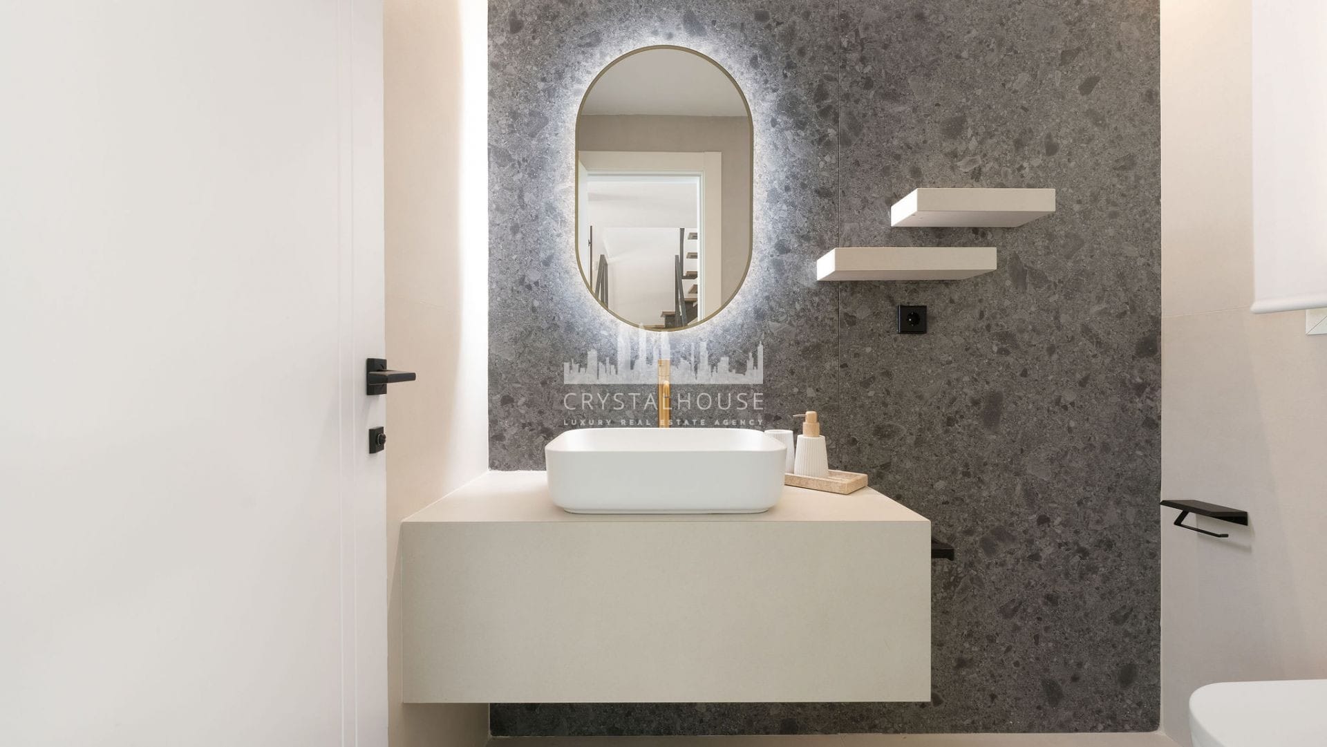The interiors of Casa Chloe are as impressive as its architecture, featuring high-end materials such as wood and stone, complemented by sleek SMEG appliances and minimalist, elegant furnishings. The house’s west-facing orientation ensures that the living spaces are bathed in warm, natural light during the day and offer stunning sunsets in the evening. Casa Chloe is not just a home of style but also of security and convenience, as it is situated within a gated community, complete with double-glazing windows, security shutters, and a communal parking area reserved exclusively for residents.