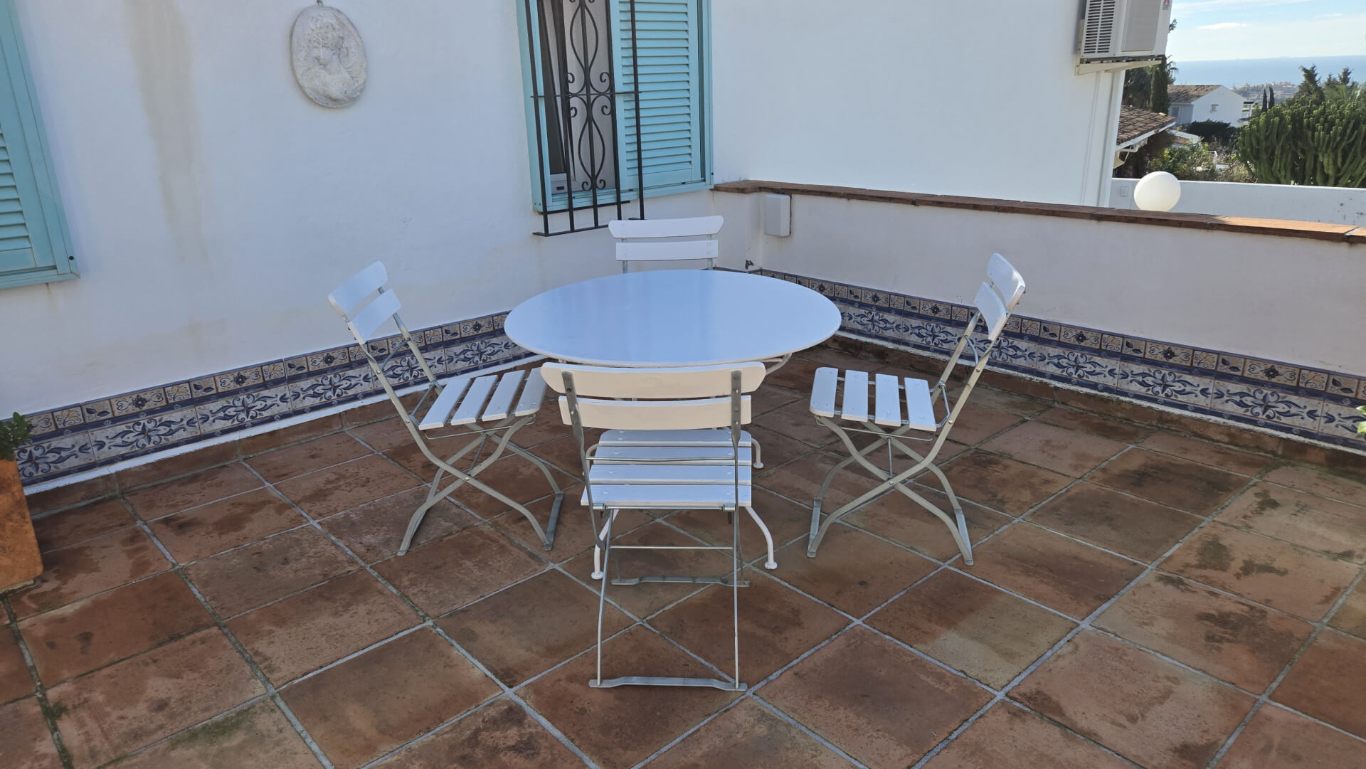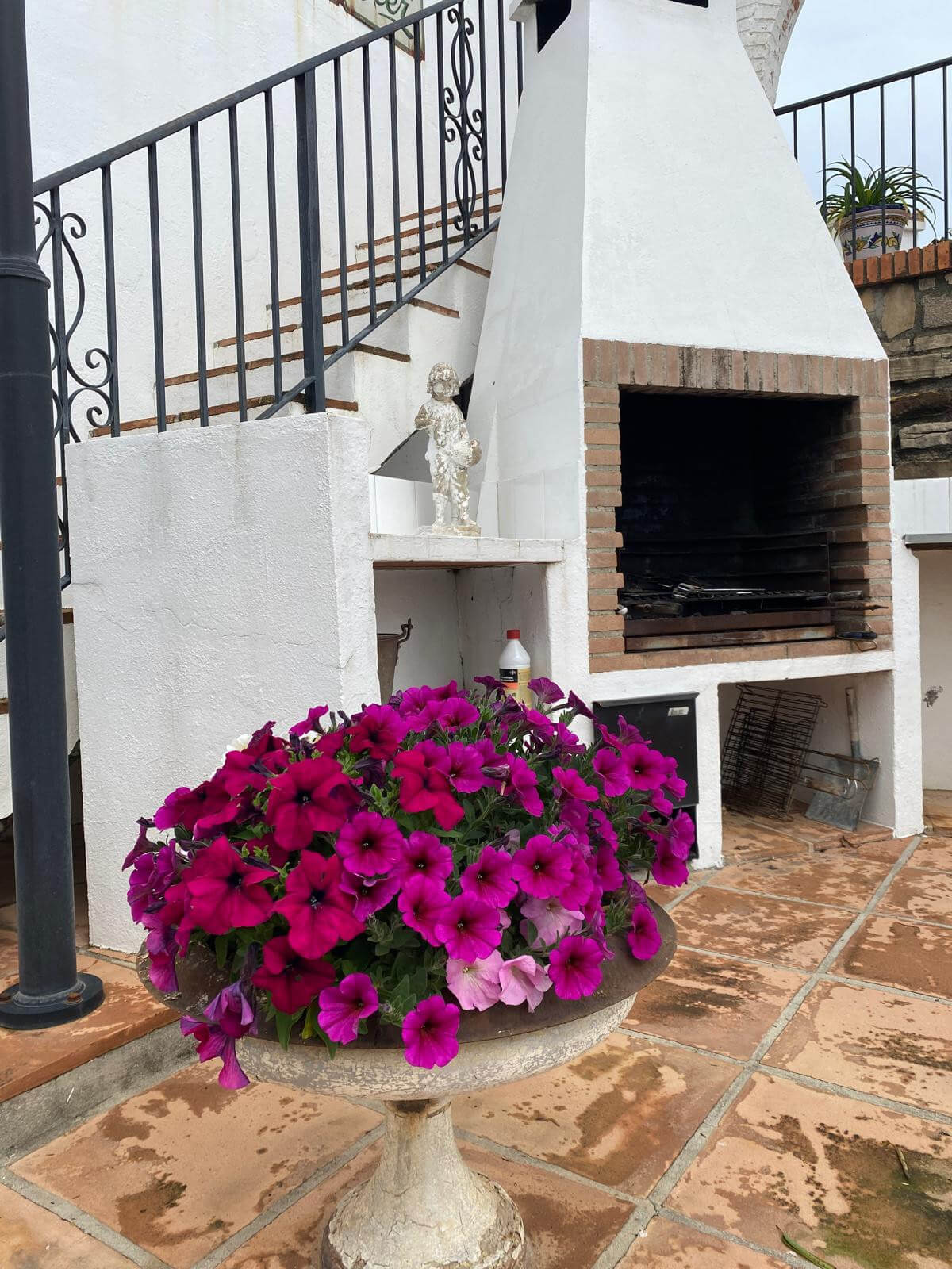 Outdoor living is equally impressive, with expansive terraces totalling 120m²—both covered and uncovered—perfect for alfresco dining or taking in the breathtaking views. The mature, automatically irrigated gardens with various fruit trees surround a private swimming pool, and a barbecue area provides additional entertaining options. The property also includes a private garage and ample parking. Security is prioritised with an alarm system and window bars.