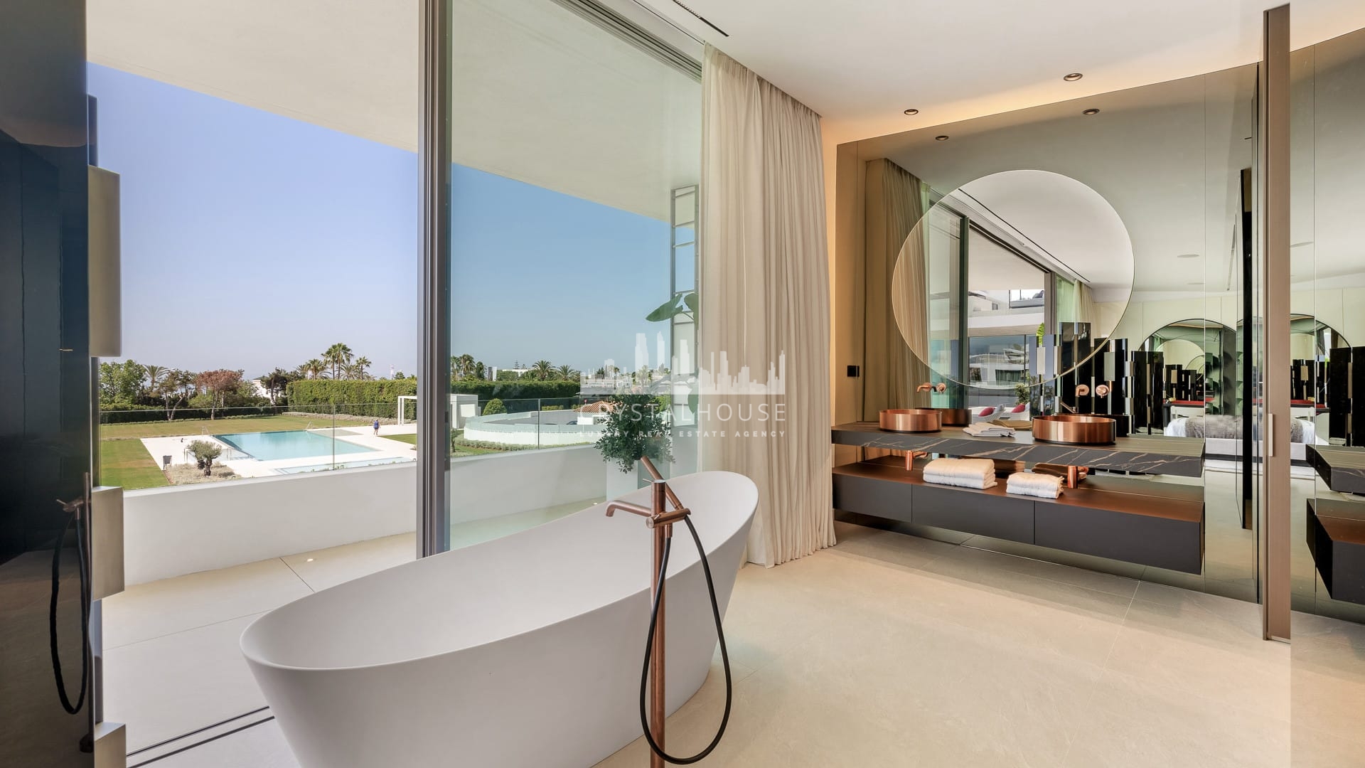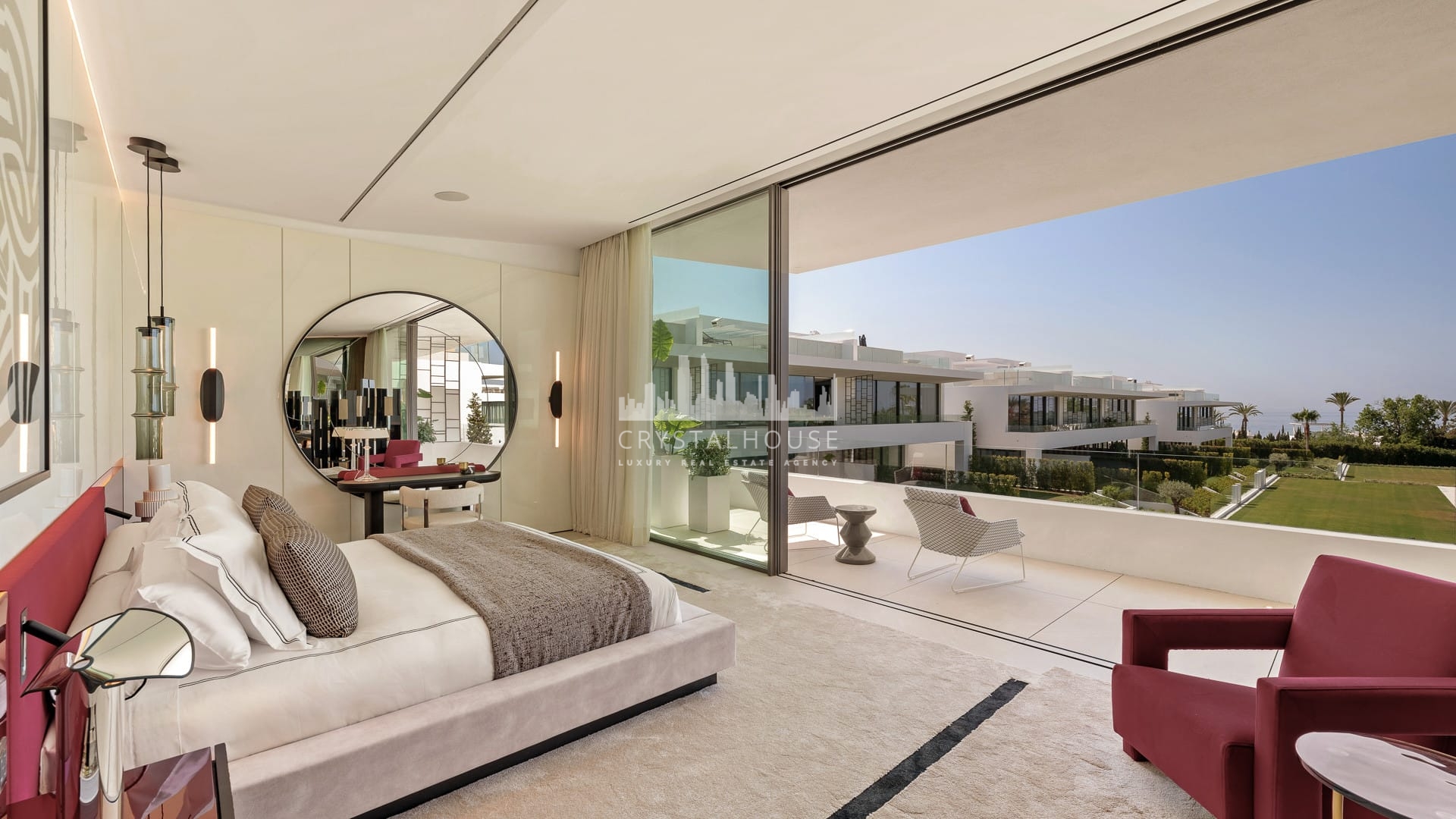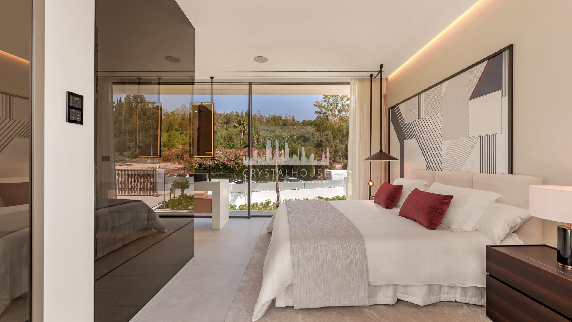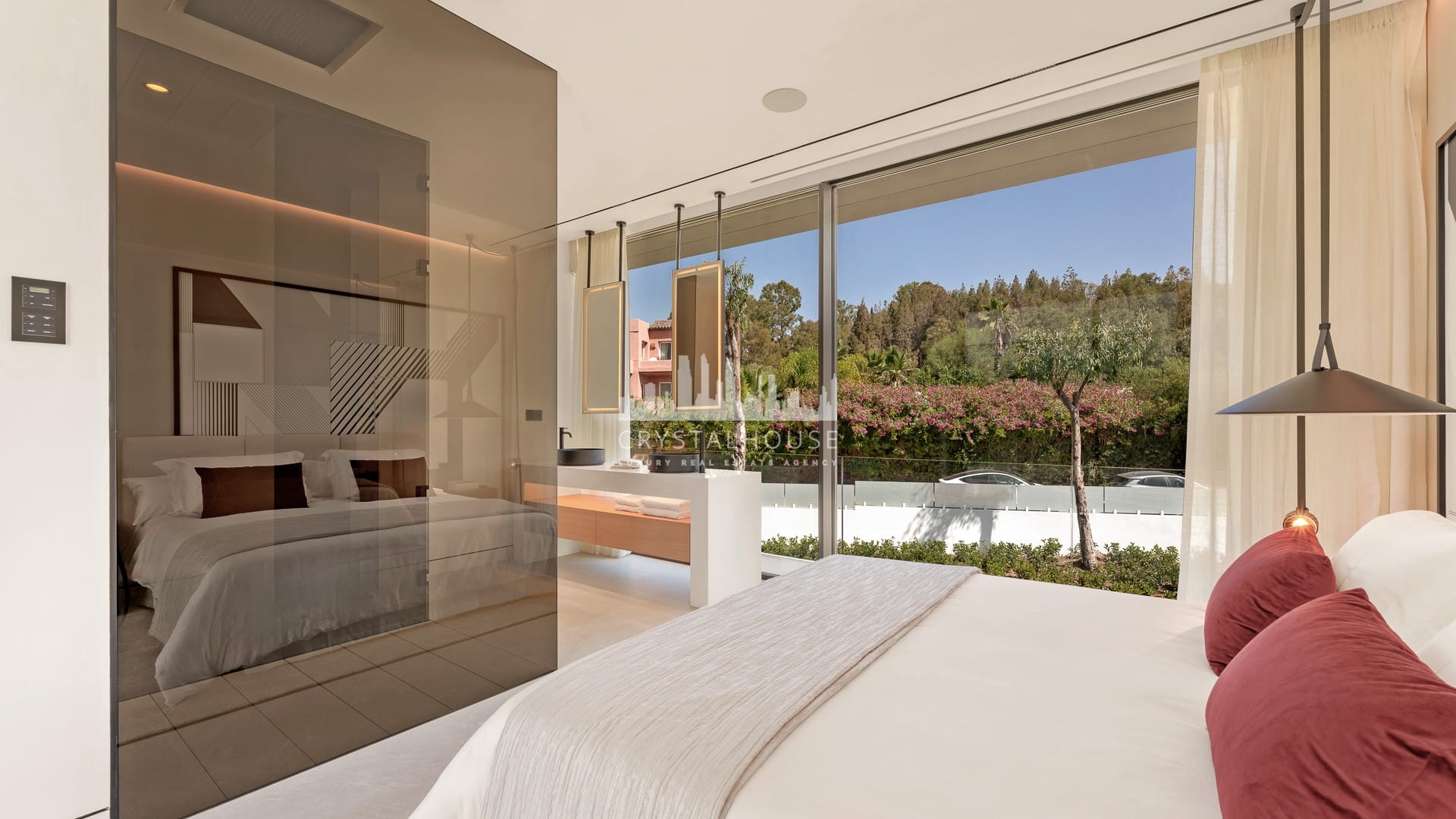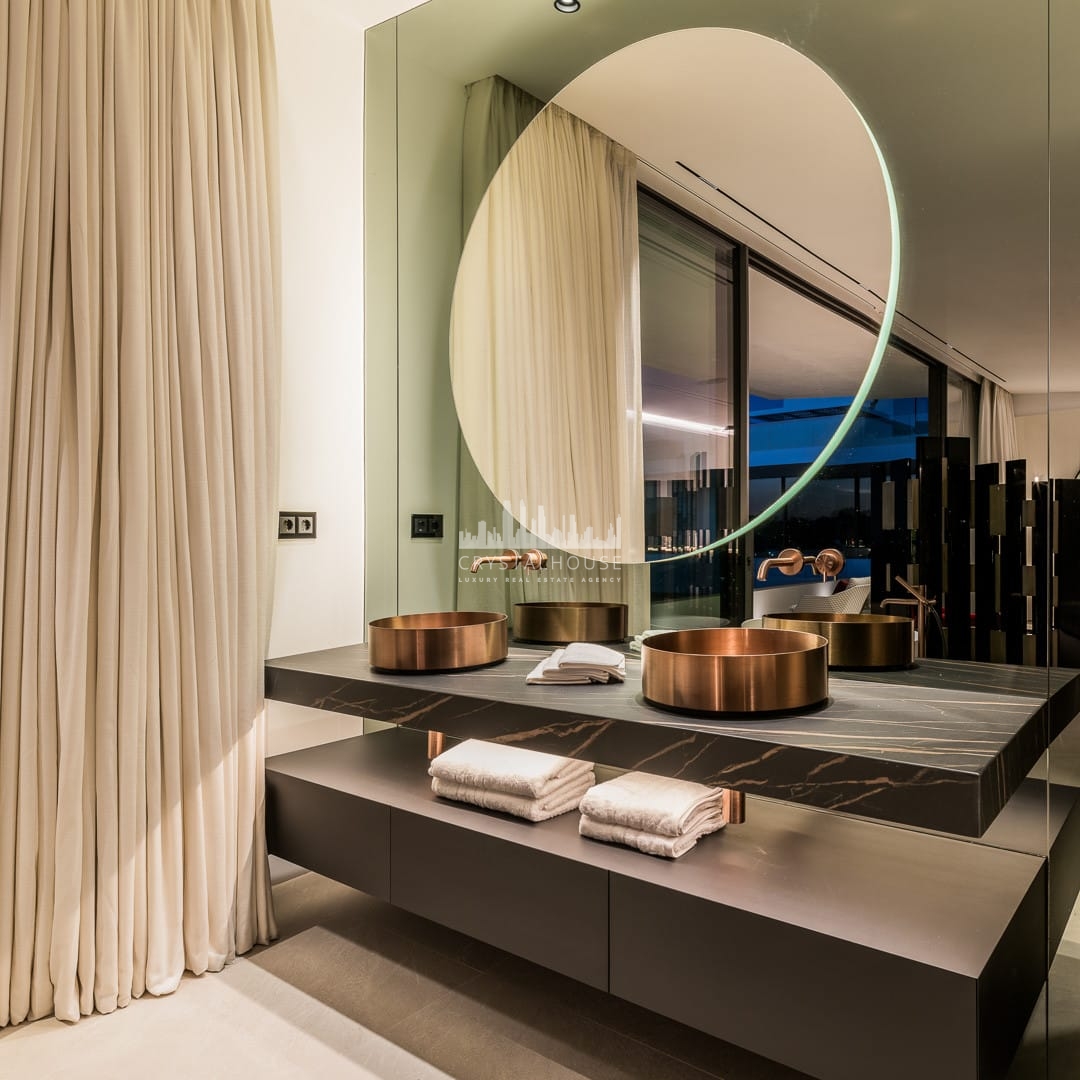 Each of the four bedrooms is designed for ultimate comfort and privacy. The master suite includes a walk-in wardrobe, spa-style bathroom, and a private terrace with panoramic sea views. Two additional guest bedrooms feature bespoke wardrobes and elegant finishes. The fourth bedroom, located in the basement, benefits from natural light and offers a calm retreat or guest suite.