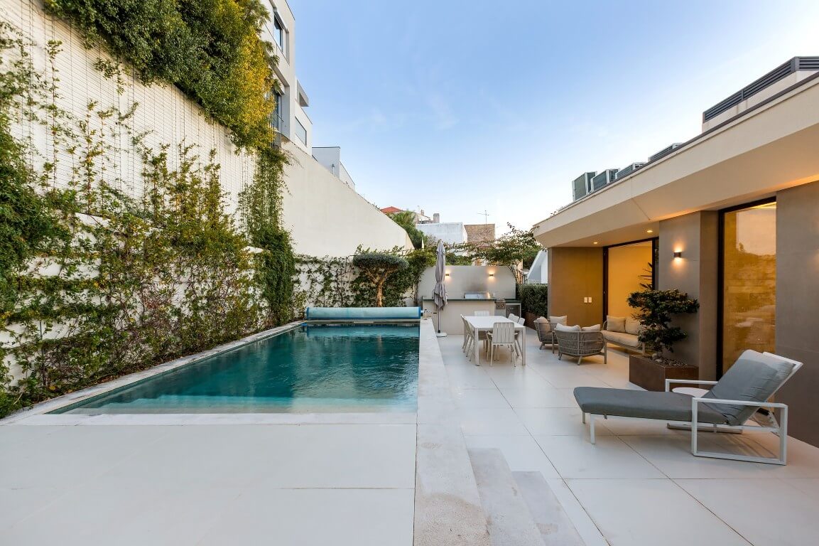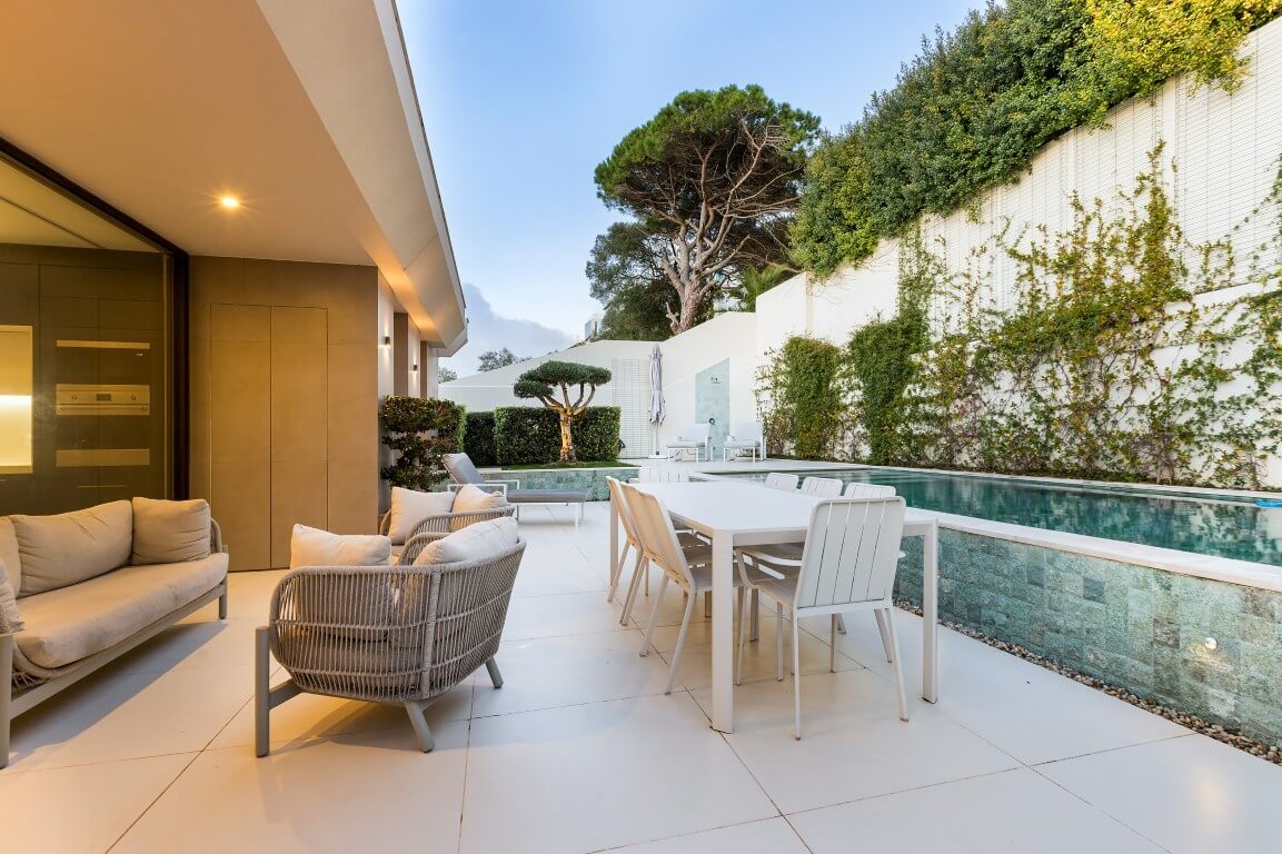The villa is located next to Palmela Park, with a tree-lined path that leads directly to the beach of Cascais. A rare privilege: living surrounded by greenery, with pedestrian access to the sea, without relying on a car and without sacrificing centrality.