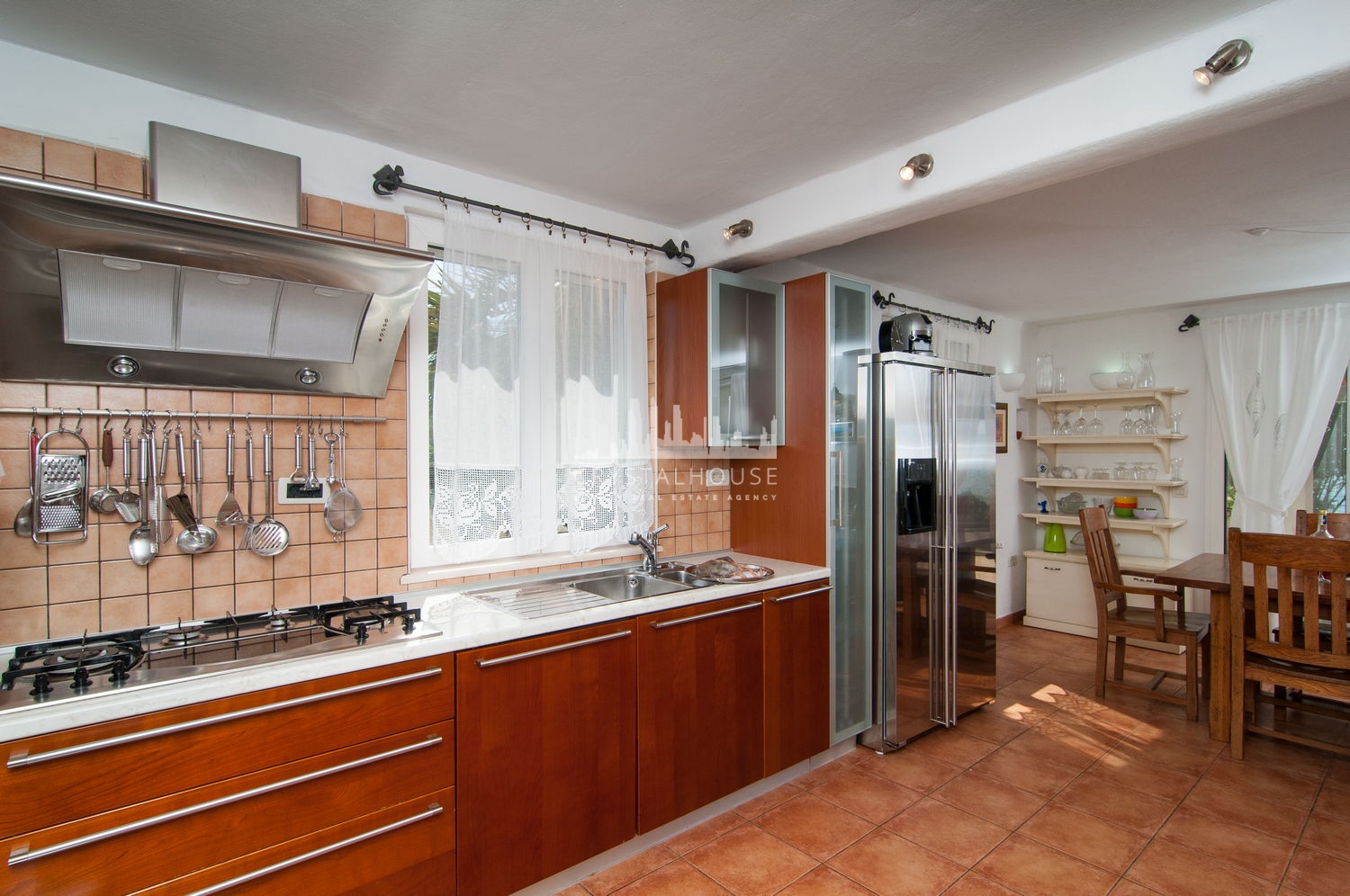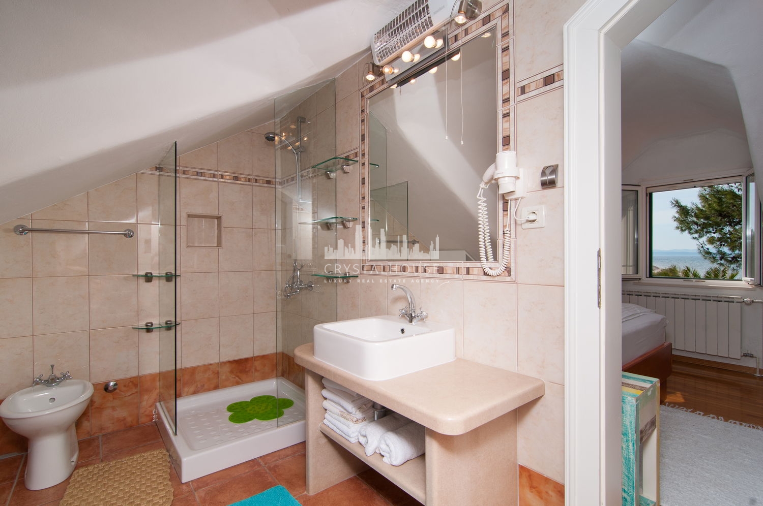 Outside, the house features a 26 square meter swimming pool, perfect for taking a refreshing dip or simply lounging poolside with a good book. The patio area offers plenty of space for outdoor dining and relaxing, with stunning views of the crystal-clear waters of the Adriatic Sea.
