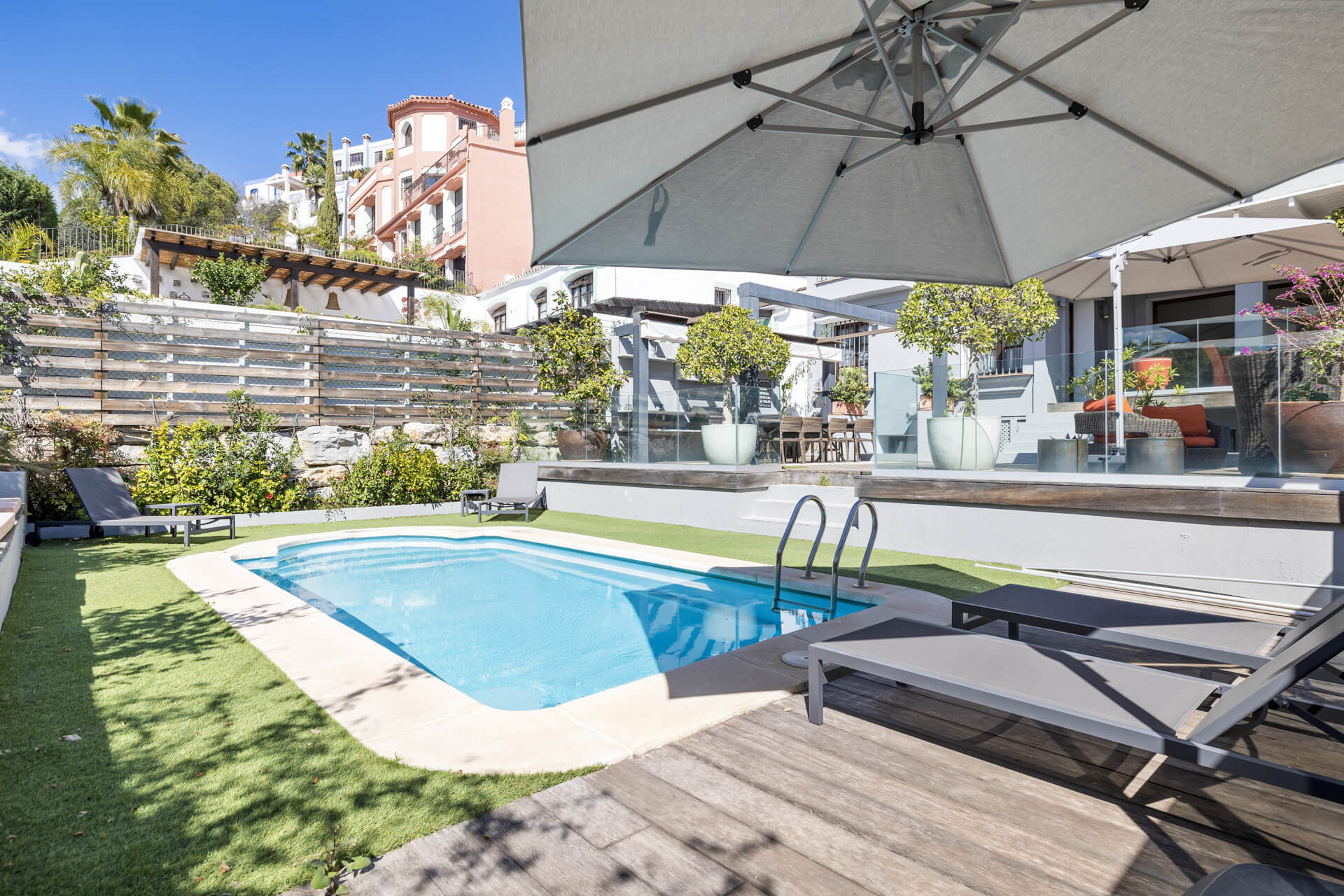 This impressive town house, situated in the sought-after area of Benahavis, Malaga, offers a harmonious blend of comfort, style, and convenience. Boasting five spacious bedrooms and four bathrooms, along with an additional guest toilet, the property spans a generous built area of 333m², complemented by a 35m² terrace and a 179m² plot. The residence is ideally located close to amenities, shops, schools, restaurants, and the vibrant town centre, making it an excellent choice for families or those seeking a well-connected home.
