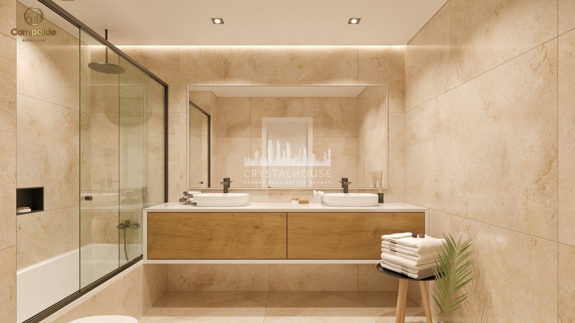 The apartments are distinguished by sleek, modern aesthetics, neutral color schemes, and panoramic views overlooking the city, Monsanto Park, and the iconic Águas Livres Aqueduct. Premium finishes and materials throughout enhance the living experience. Standout features include built-in wardrobes, high-quality wooden flooring, expansive windows that flood each space with natural light, open-plan kitchens equipped with stone countertops and top-tier appliances, luxurious marble bathrooms, air conditioning, a video intercom system, and double-glazed windows.