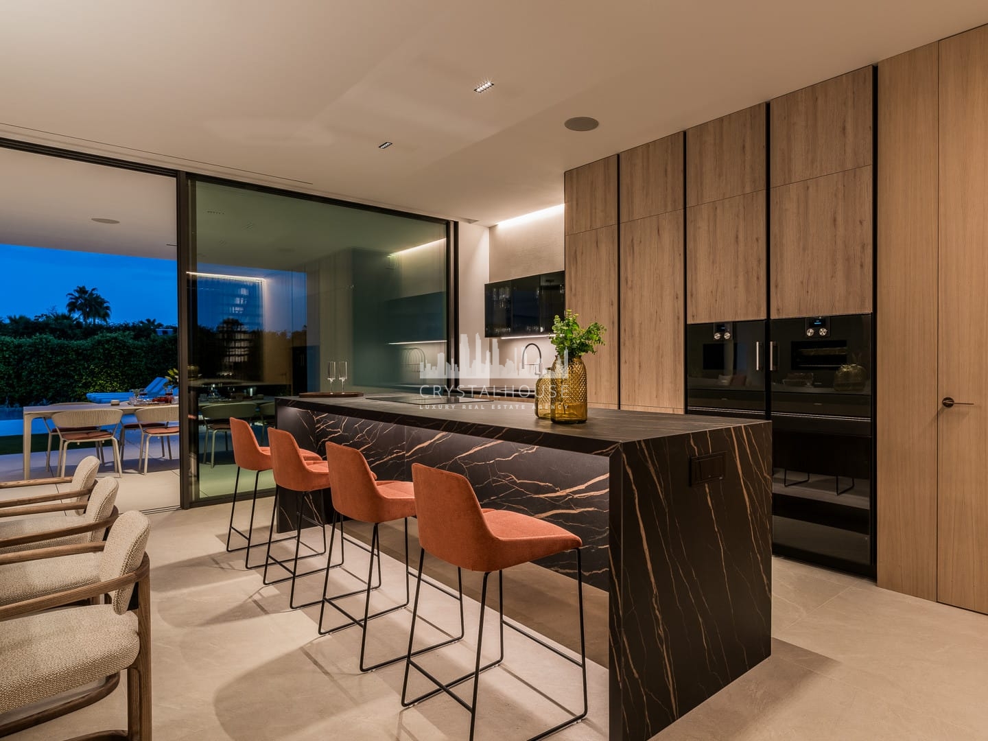 Every detail is crafted with excellence: underfloor heating throughout, Dolby Surround system, high-speed fibre optic internet, electric blinds, and a top-tier home automation system. The villa also benefits from full security: video entrance, surveillance cameras, and armored doors.