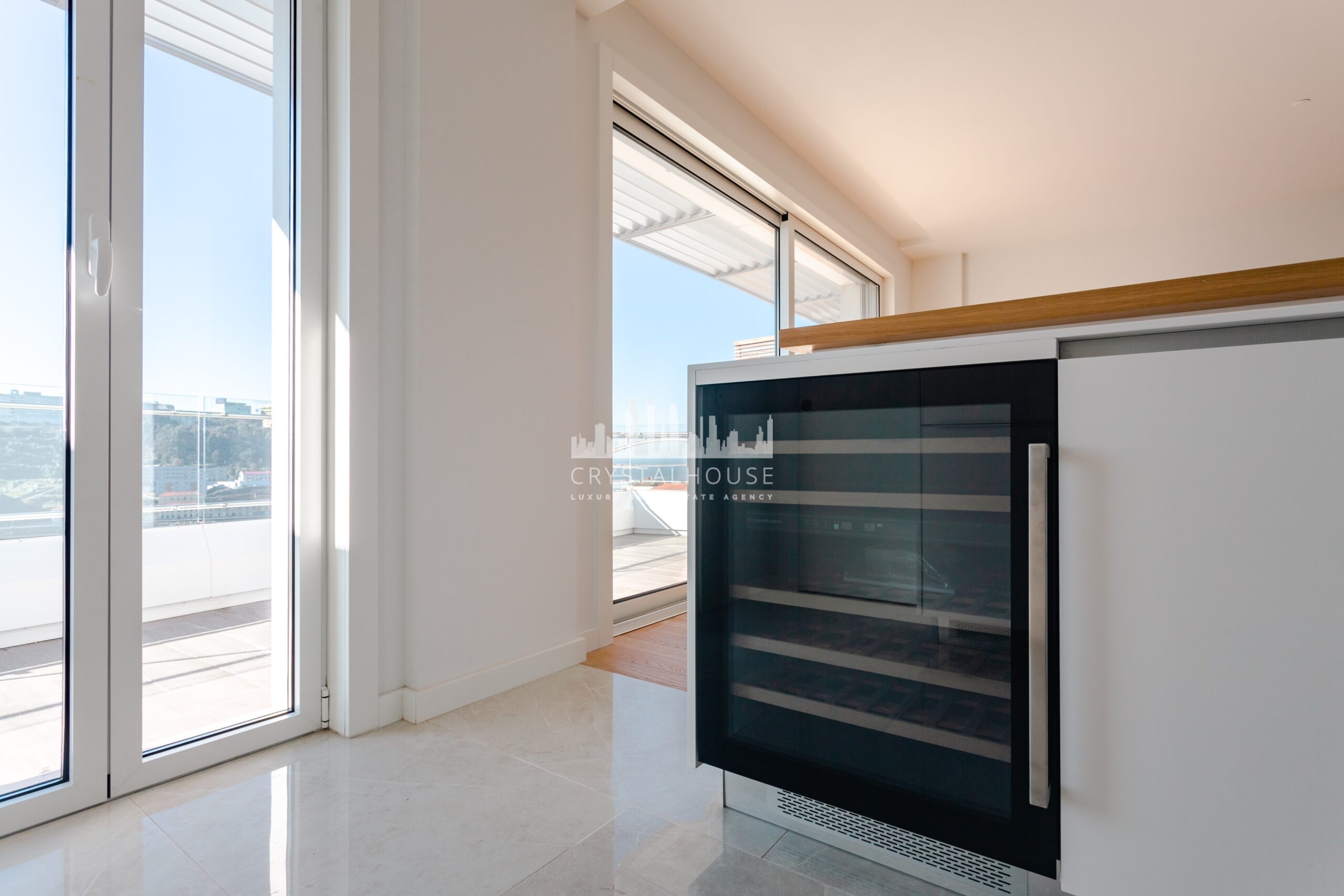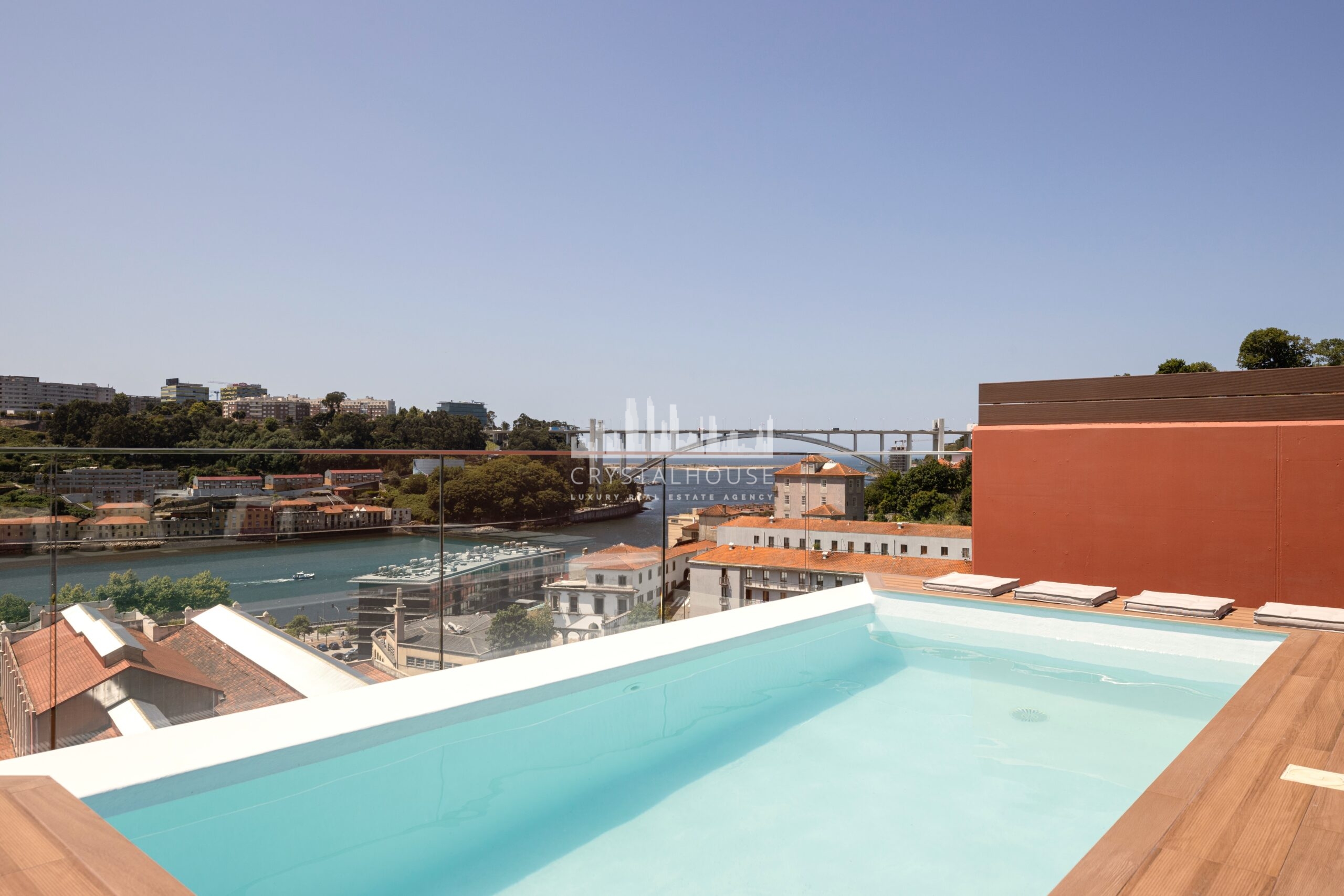This fabulous apartment, located next to the Douro River, has contemporary and clean architecture, with 155.7 sqm of interior area and 73.7 sqm of exterior area, two parking spaces in the garage, and an elevator. This apartment has three suites, a large living room, and a terrace with a swimming pool overlooking the River Douro. It also has an equipped kitchen, quality finishes, and plenty of natural light.