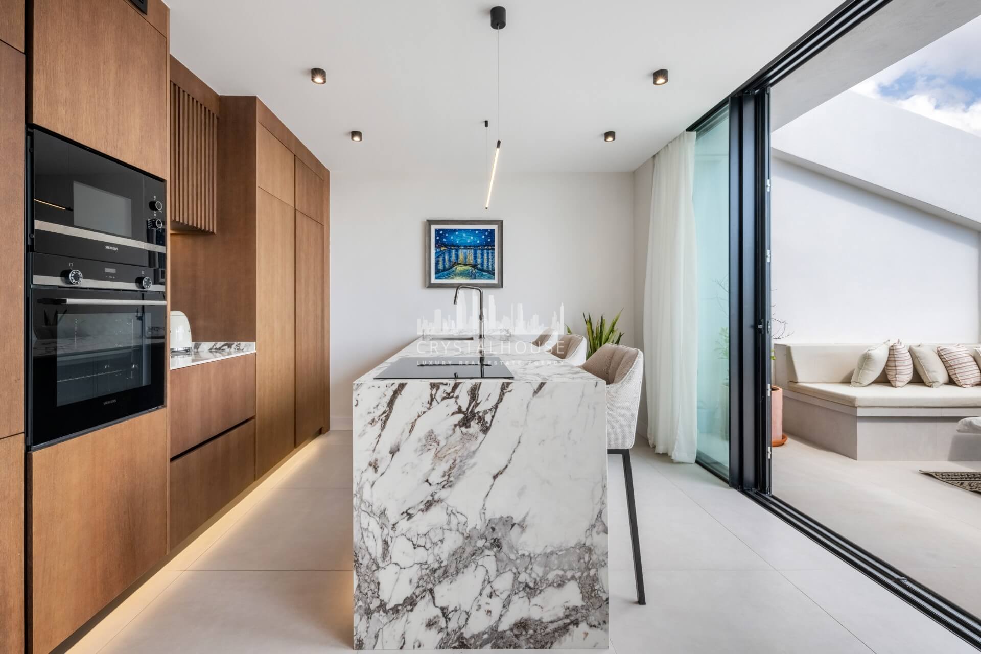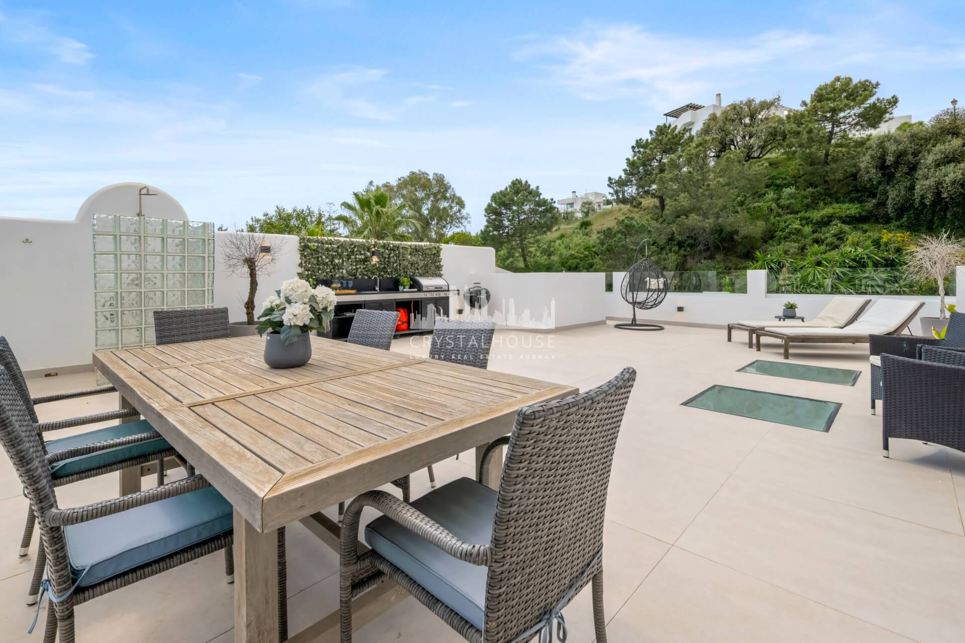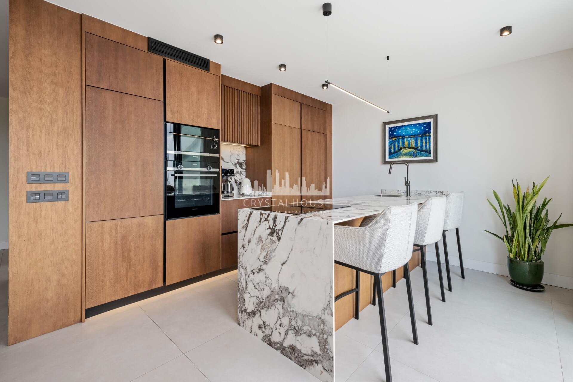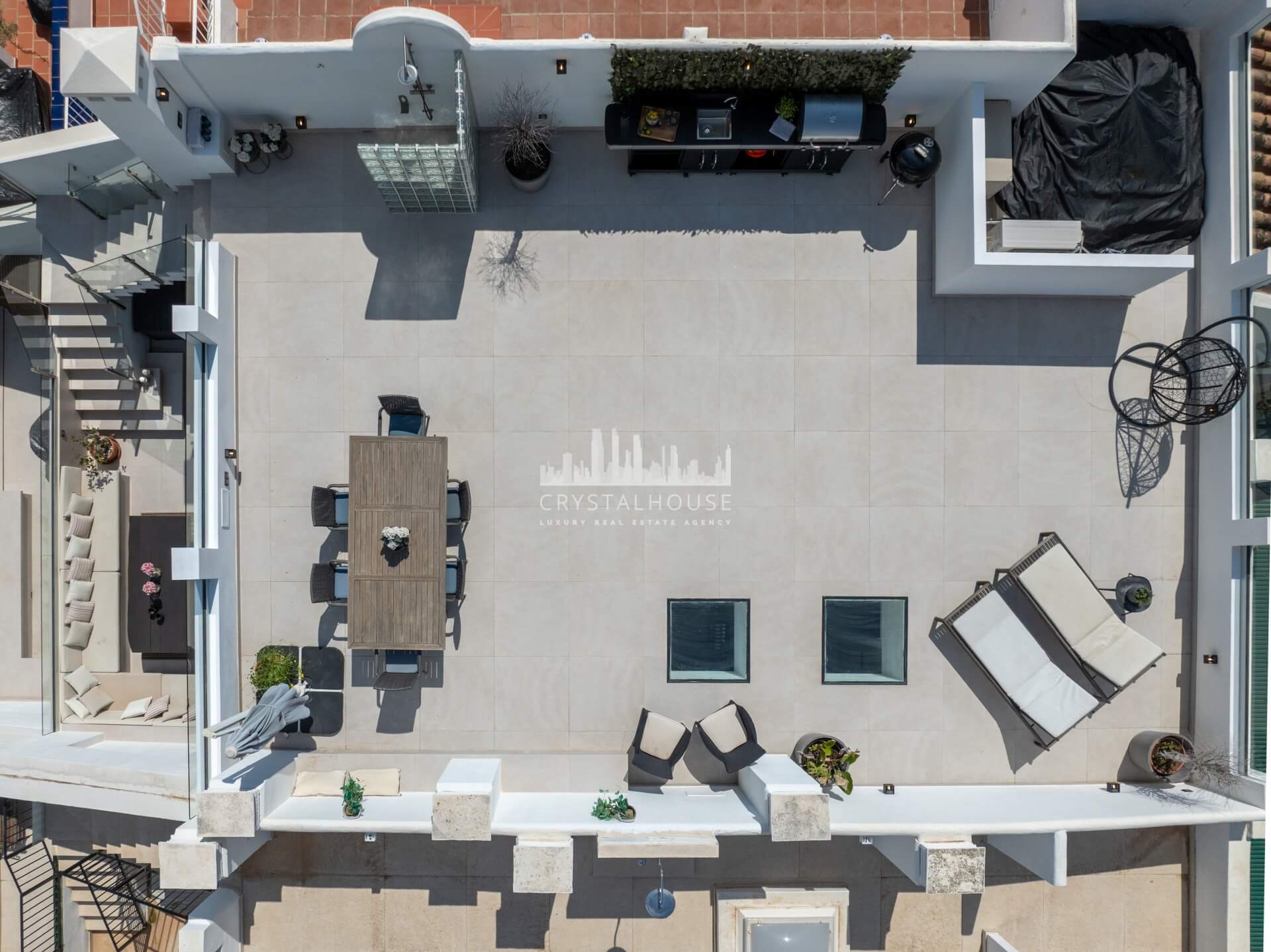 Designed for enjoying the Mediterranean lifestyle, the penthouse features spacious terraces on the main floor as well as a private rooftop retreat. The upper level is equipped with a complete outdoor kitchen, creating the perfect space for entertaining, dining, or unwinding while taking in stunning sea views.