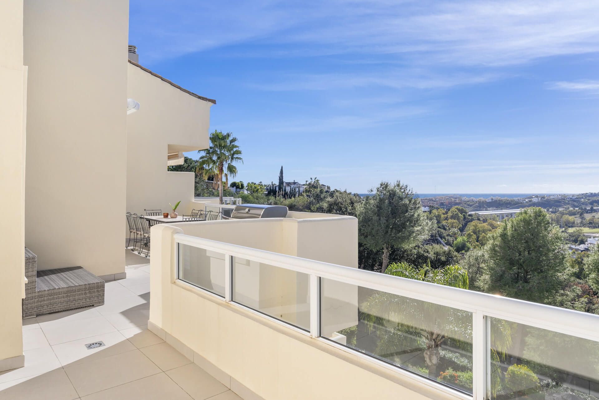 Welcome to this elegant two-level apartment in the sought-after community of Los Arqueros, Benahavís, where modern comfort meets spectacular natural surroundings. This beautifully presented home offers three spacious bedrooms and three stylish bathrooms, providing the perfect blend of functionality and relaxation for both permanent living and holiday stays. Set within a peaceful and well-maintained residential area, the property enjoys abundant natural light, open interiors, and stunning views that stretch across the lush landscape towards the Mediterranean Sea.