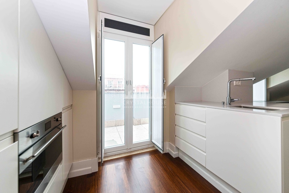 The apartment features a fully equipped kitchen with premium Smeg appliances and opens onto an impressive 34 sqm private terrace with sweeping views over Lisbon. A private parking space and storage room complete this exceptional offering — an ideal pied-à-terre or investment in one of the capital’s most sought-after addresses.
