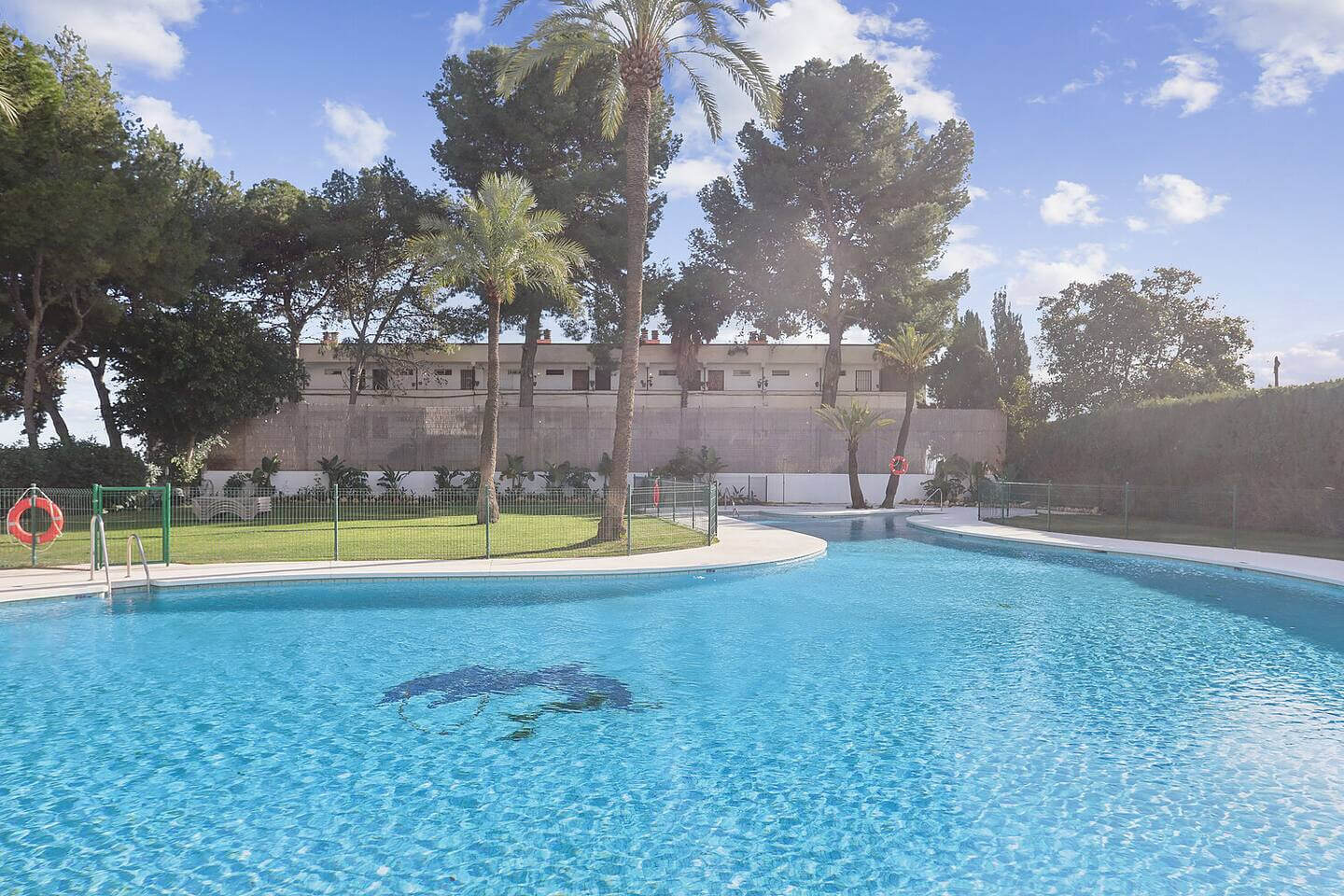Residents benefit from a secure gated community with 24-hour security, landscaped communal areas, a swimming pool (open during the summer season), and private parking.