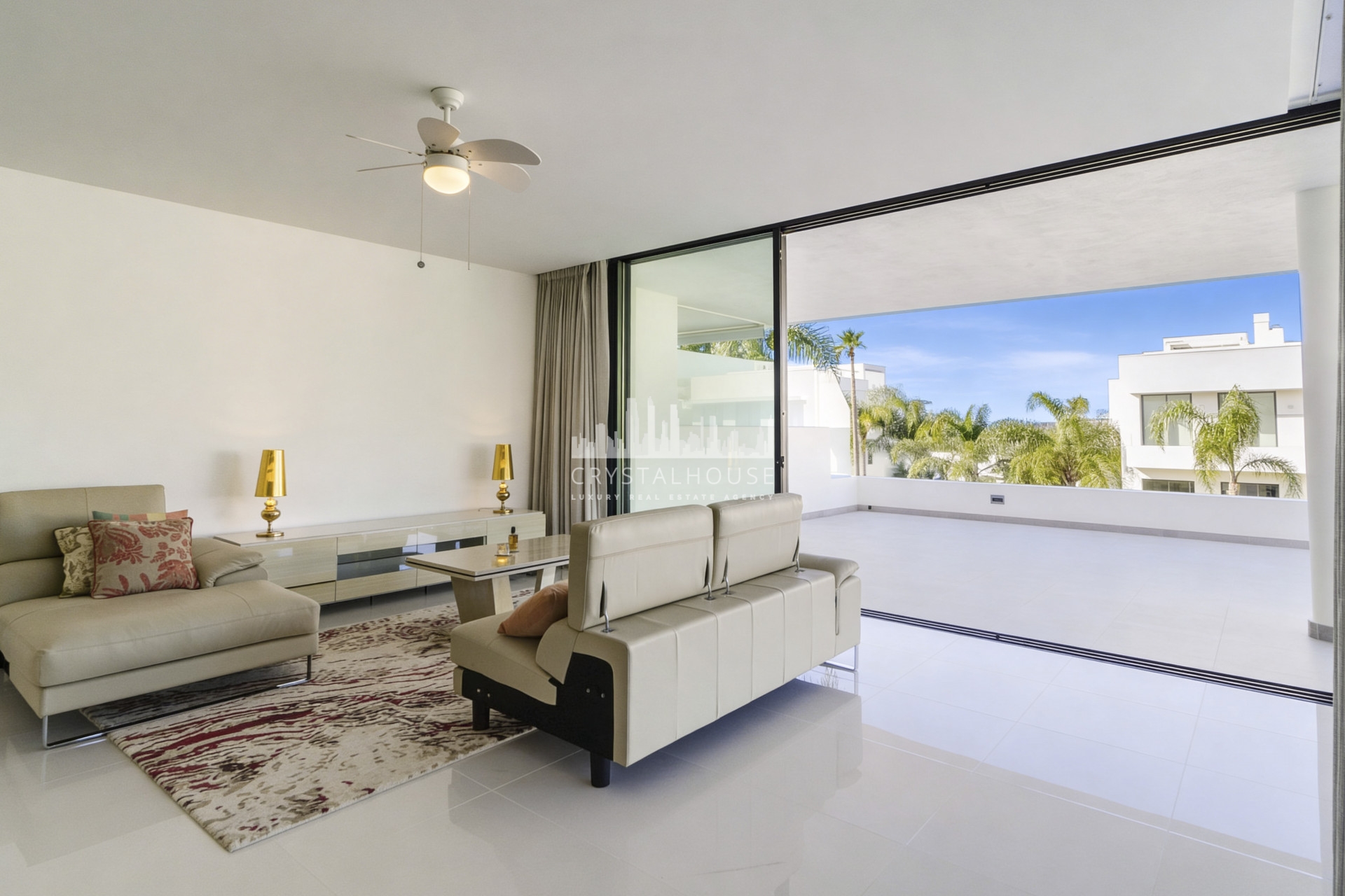 * An important feature are the floor to ceiling sliding windows which create a smooth transition of the living room into the extensive terrace area, perfect for maximum enjoyment of the Mediterranean climate and creating lots of extra living space, chillout area, outdoor dining area….