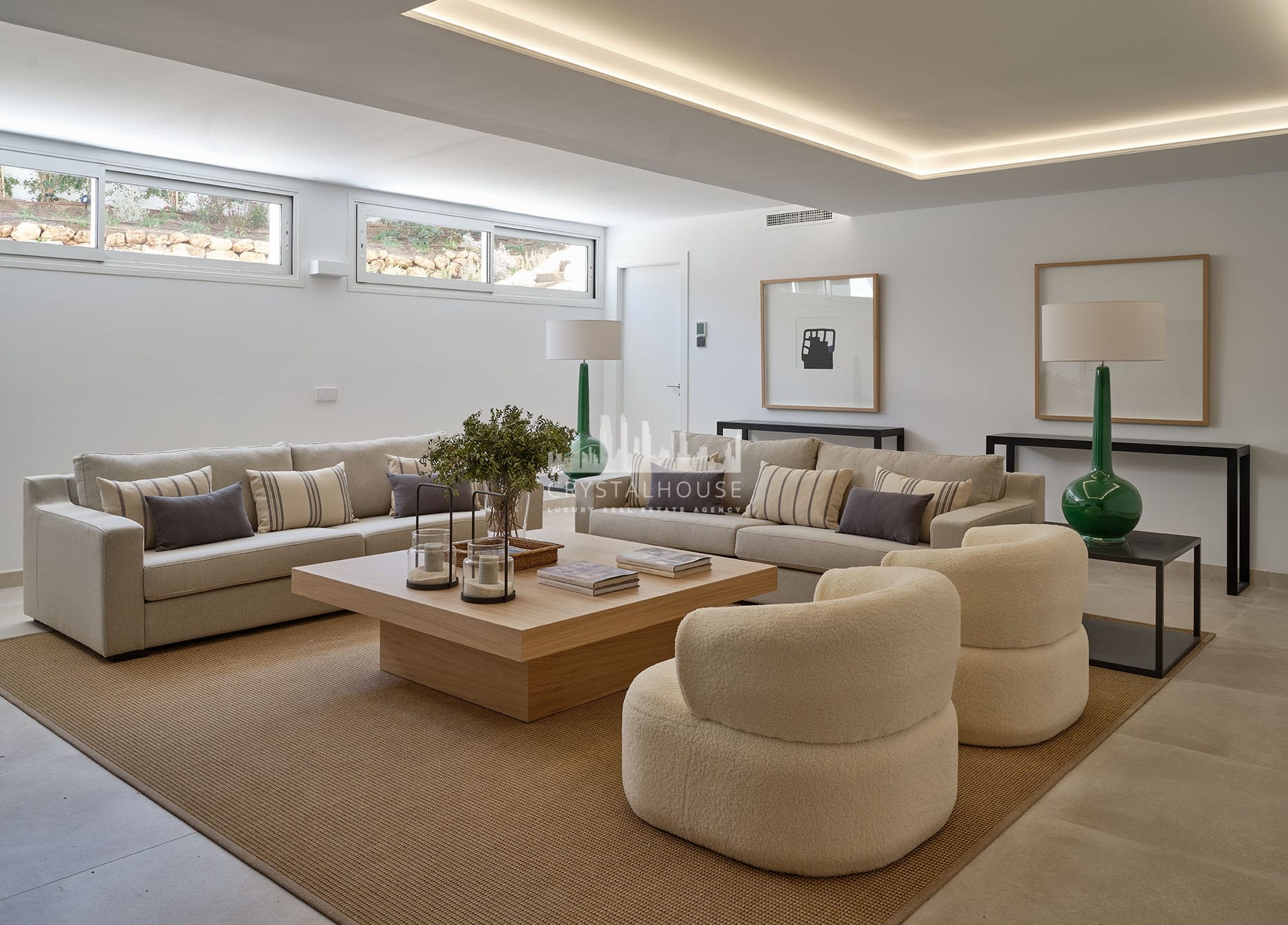 Exquisite boutique development of only 8 luxury villas set in a quiet area located only 5 minutes’ drive to El Pirulí, Marbella centre and the beach. Southeast or southwest facing, all units boast magnificent sea views, and are bright and spacious, with a garden and swimming pool. They comprise, on the ground level: a large, elegant, functional open living/dining room with floor-to-ceiling windows; fully fitted and equipped open-plan kitchen; guest toilet. First floor: 3 en-suite bedrooms with terraces. Upper level: pergola, a large solarium, and a toilet. Patio floor: 100-m2 divided into 2 rooms with natural light, to use as a gymnasium, a playroom, a library, etc., and one bathroom. The basement floor is a common area for all villas, with parking spaces, storage rooms, and access to each villa by private lift. All the homes will be finished with high-quality materials, including underfloor heating throughout, private lifts, Porcelanosa qualities, wood floor on the first level and much more. Situated in a quiet residential area next to schools, golf clubs and all amenities. Estimated completion date: mid 2023. This is an example of Villa 8.