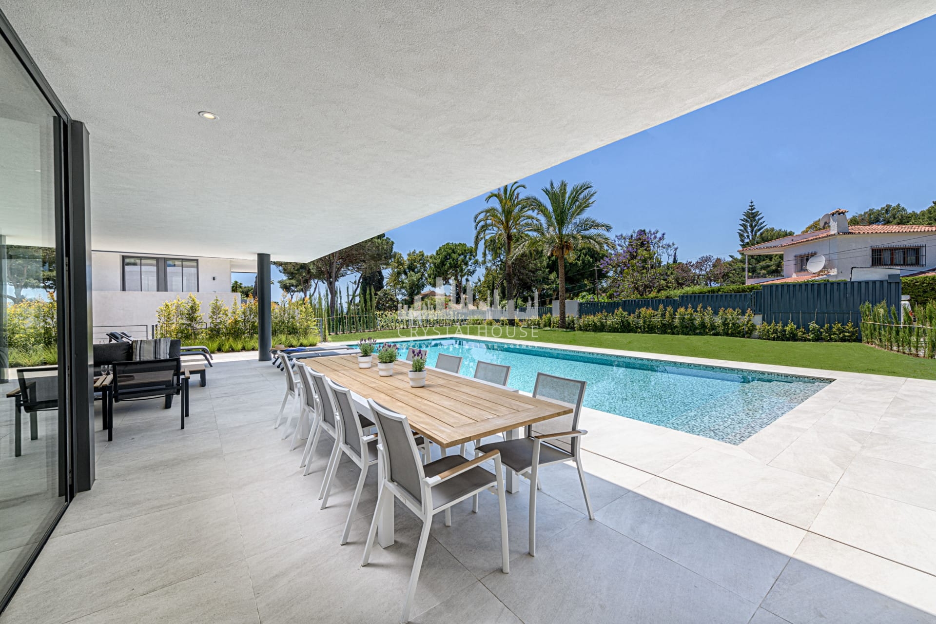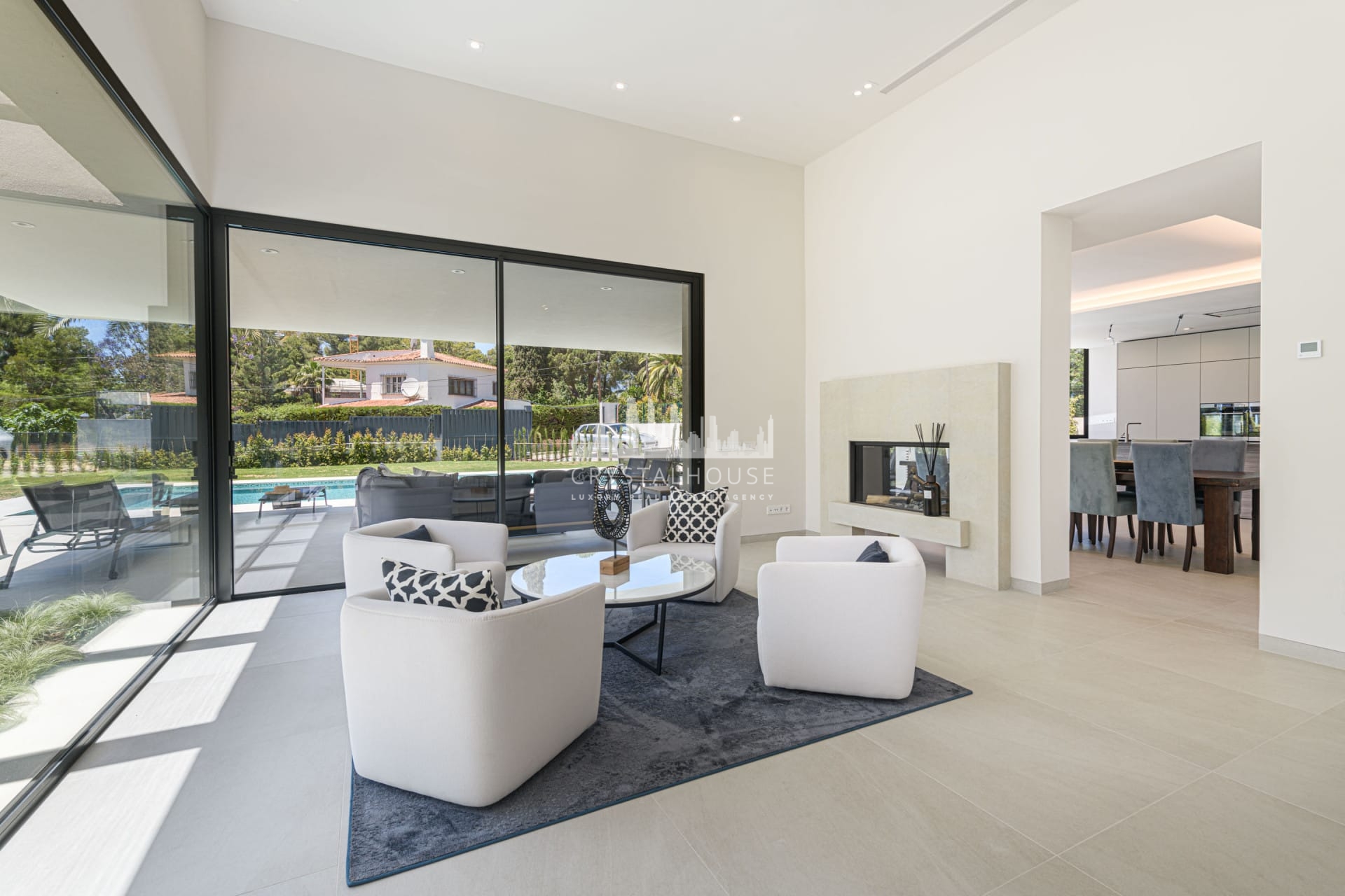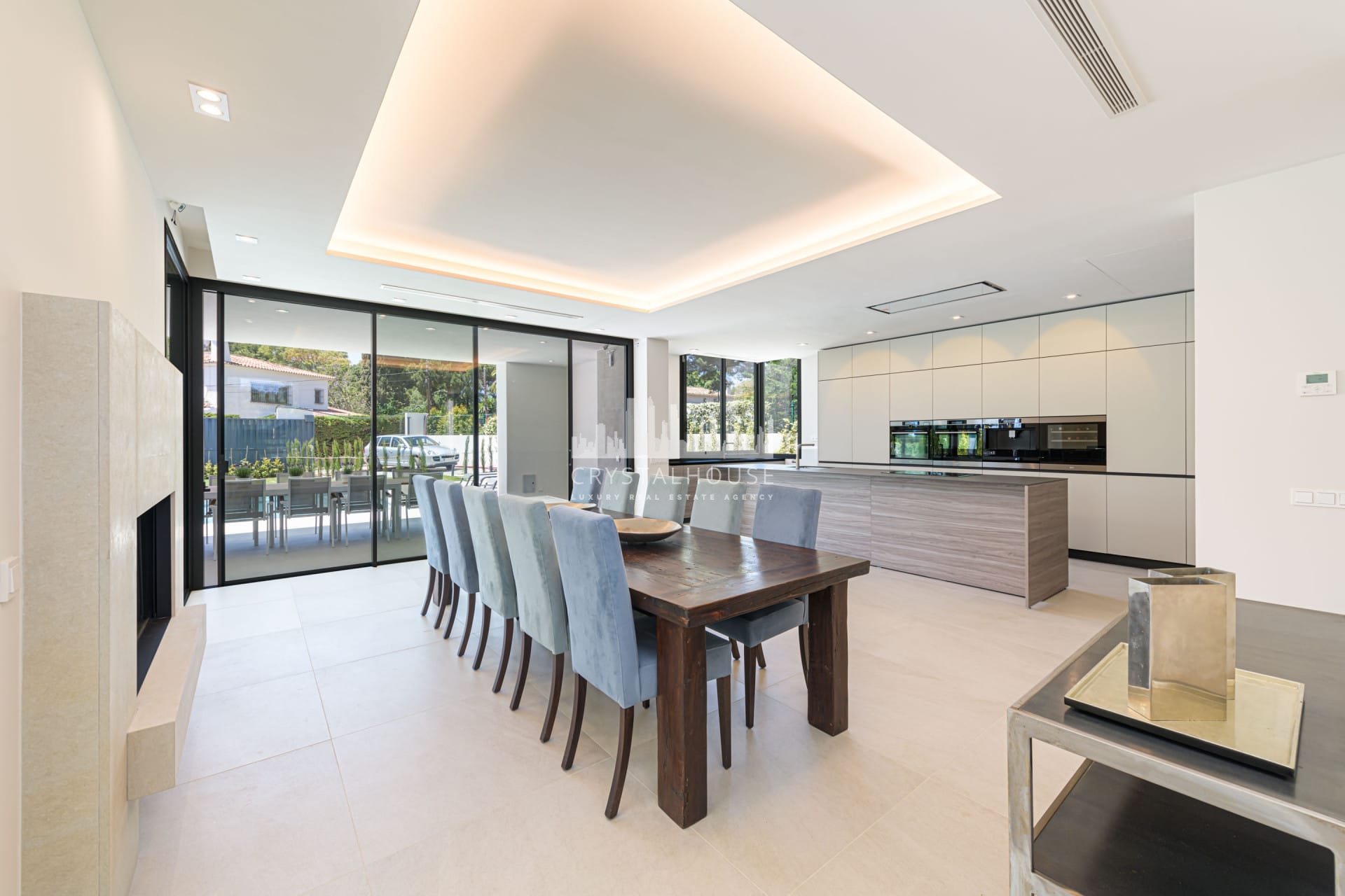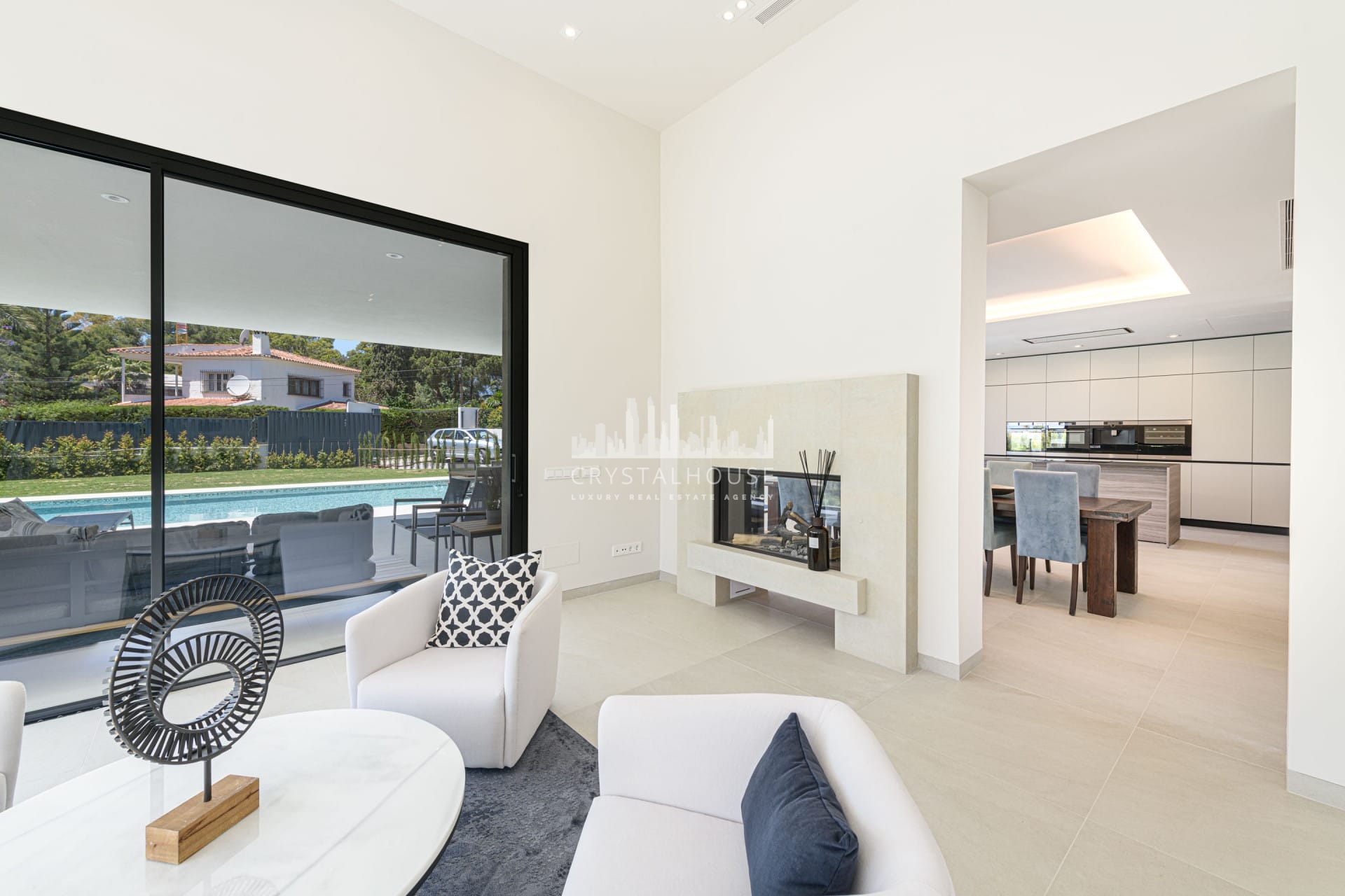 This villa has its own private swimming pool and garden with a BBQ area, which you can access directly from the living room. The moment you enter this property you are welcomed by a stunning entrance hall that leads into the dining room, connected to the fully equipped, open-plan kitchen.