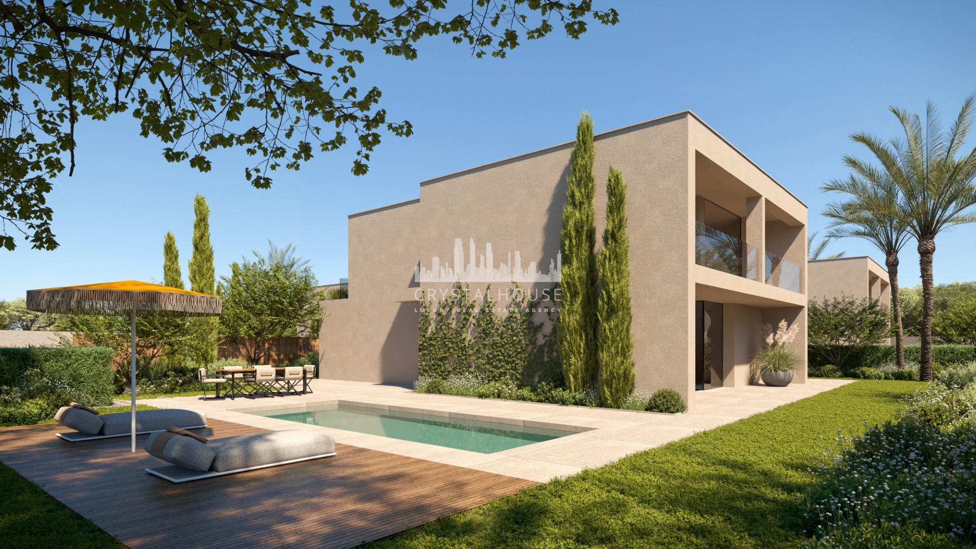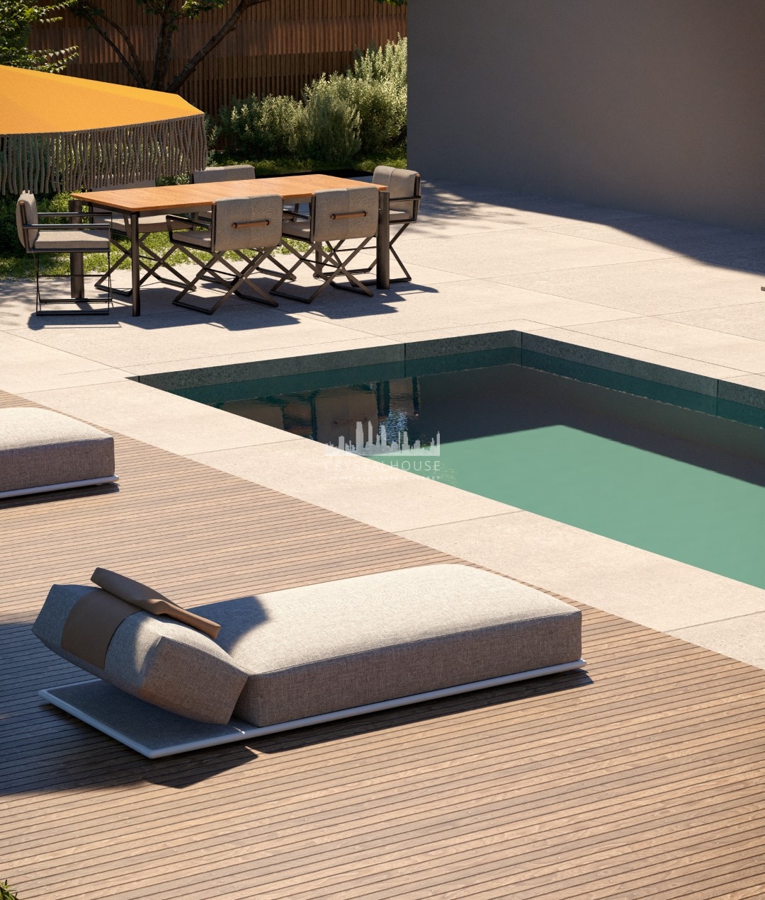 On the ground floor, the open spaces harmoniously interconnect the living room and the dining room, which stand out for their direct connection with the garden and the private pool.
