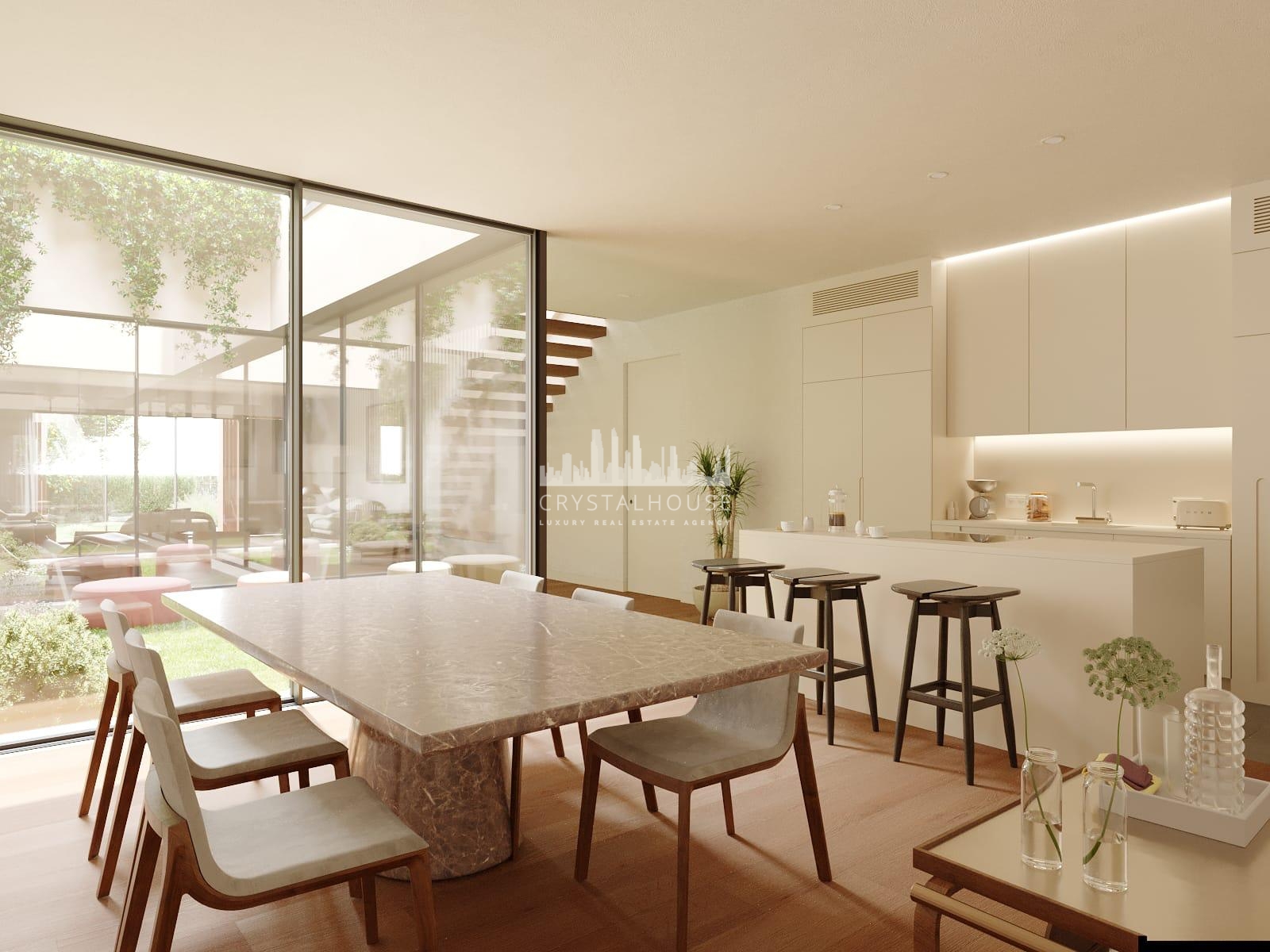 As far as Vila do Tijolo’s amenities are concerned, highlights include the development’s original entrance hall, with an area reserved for drop-off lockers; the gym; the communal swimming pool; the large garden; the parking area with sockets for charging electric vehicles; and five garages for the villas. There is also an area for individual storage and a space for washing equipment such as bicycles.