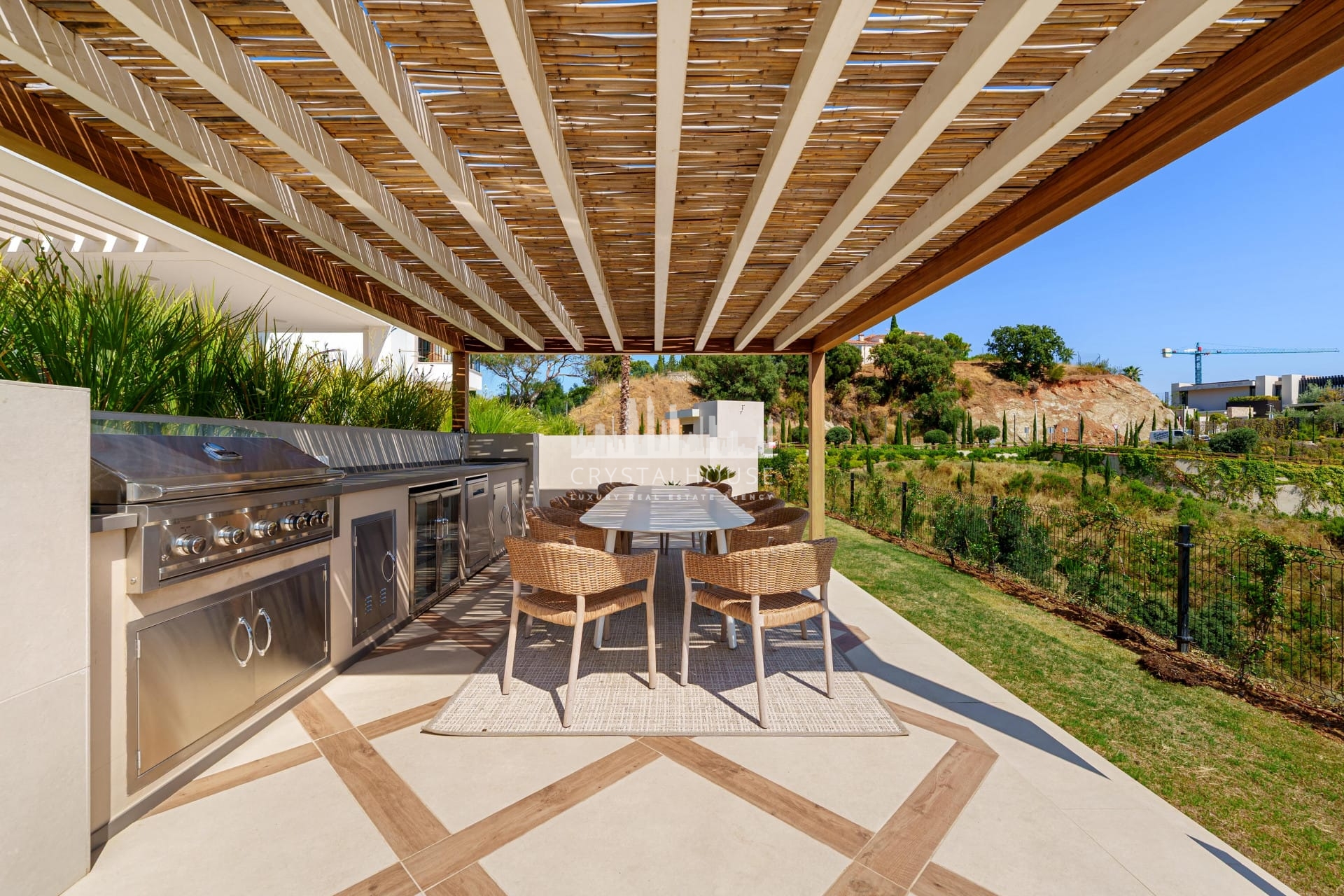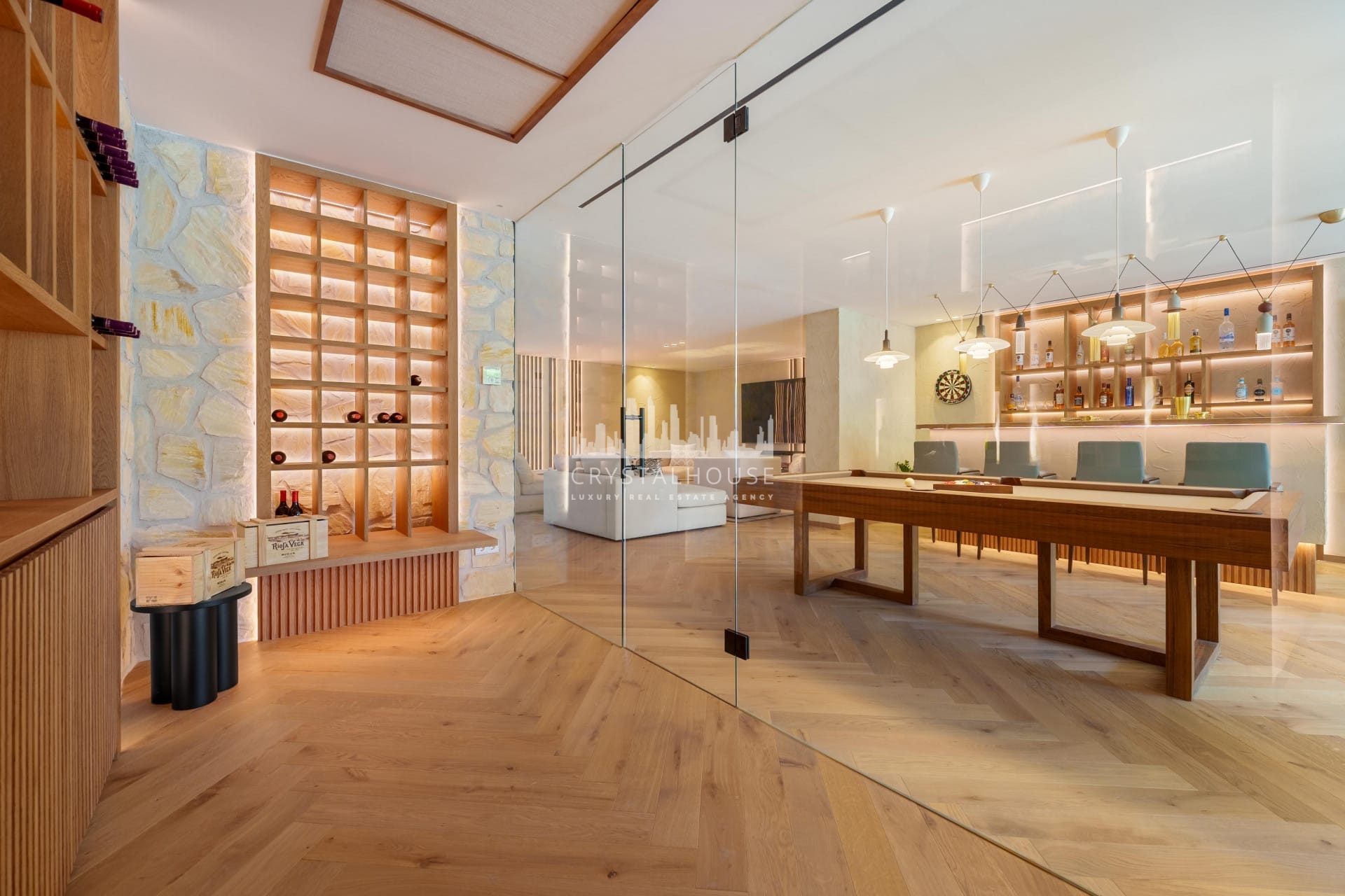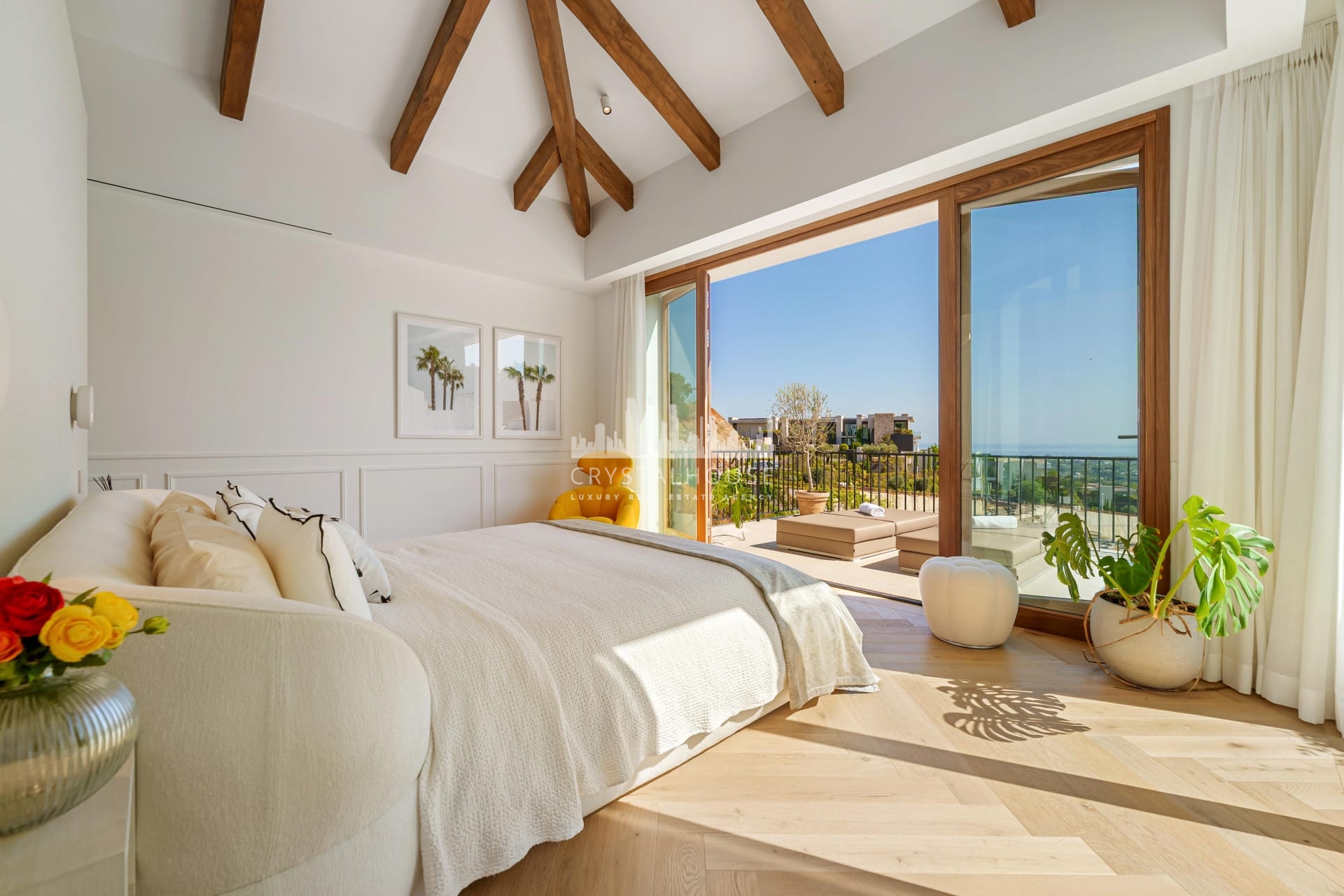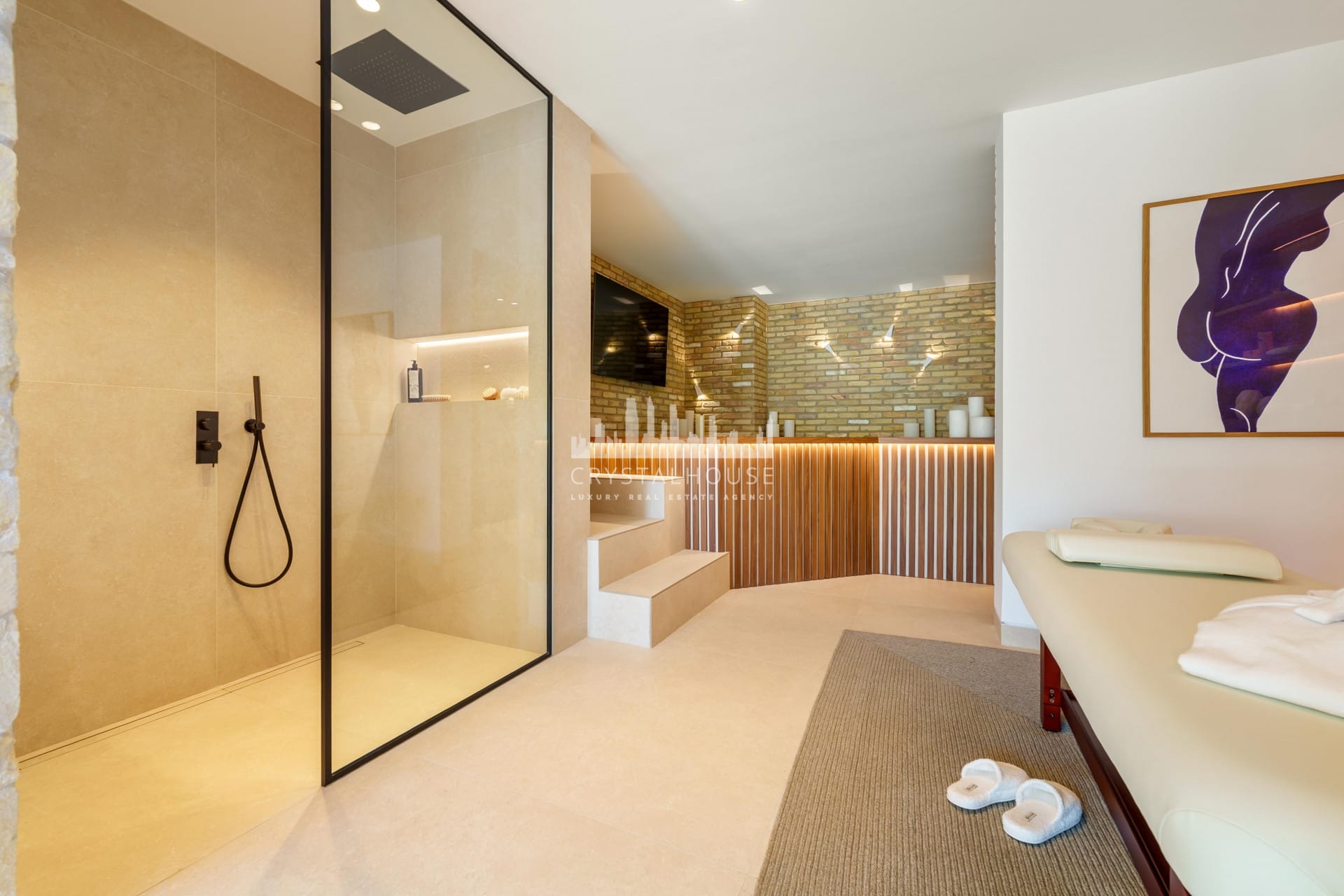 This bespoke 5-bedroom residence features eight bathrooms (five en suite), spacious living areas with a fireplace, and a state-of-the-art kitchen. Outdoors, a private saltwater infinity pool is complemented by a south-facing terrace, lounge area, fully equipped BBQ kitchen, and chill-out zone ideal for Mediterranean living.