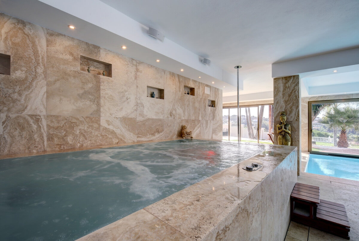 A spa with a Jacuzzi, sauna, and massage room for moments of absolute relaxation.