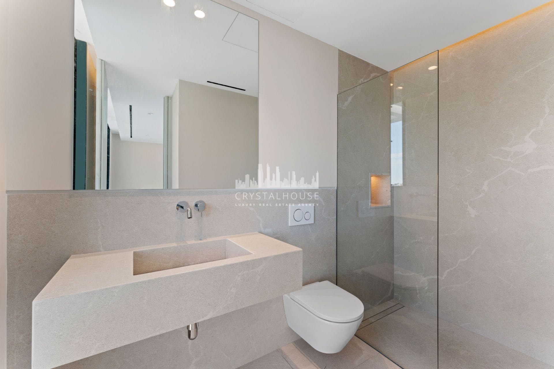 Modern amenities are integrated throughout the villa, including air conditioning with both hot and cold settings, underfloor heating, and an elevator for easy access to all levels. The use of natural stone floors adds a touch of elegance, while solar panels contribute to energy efficiency and sustainability.