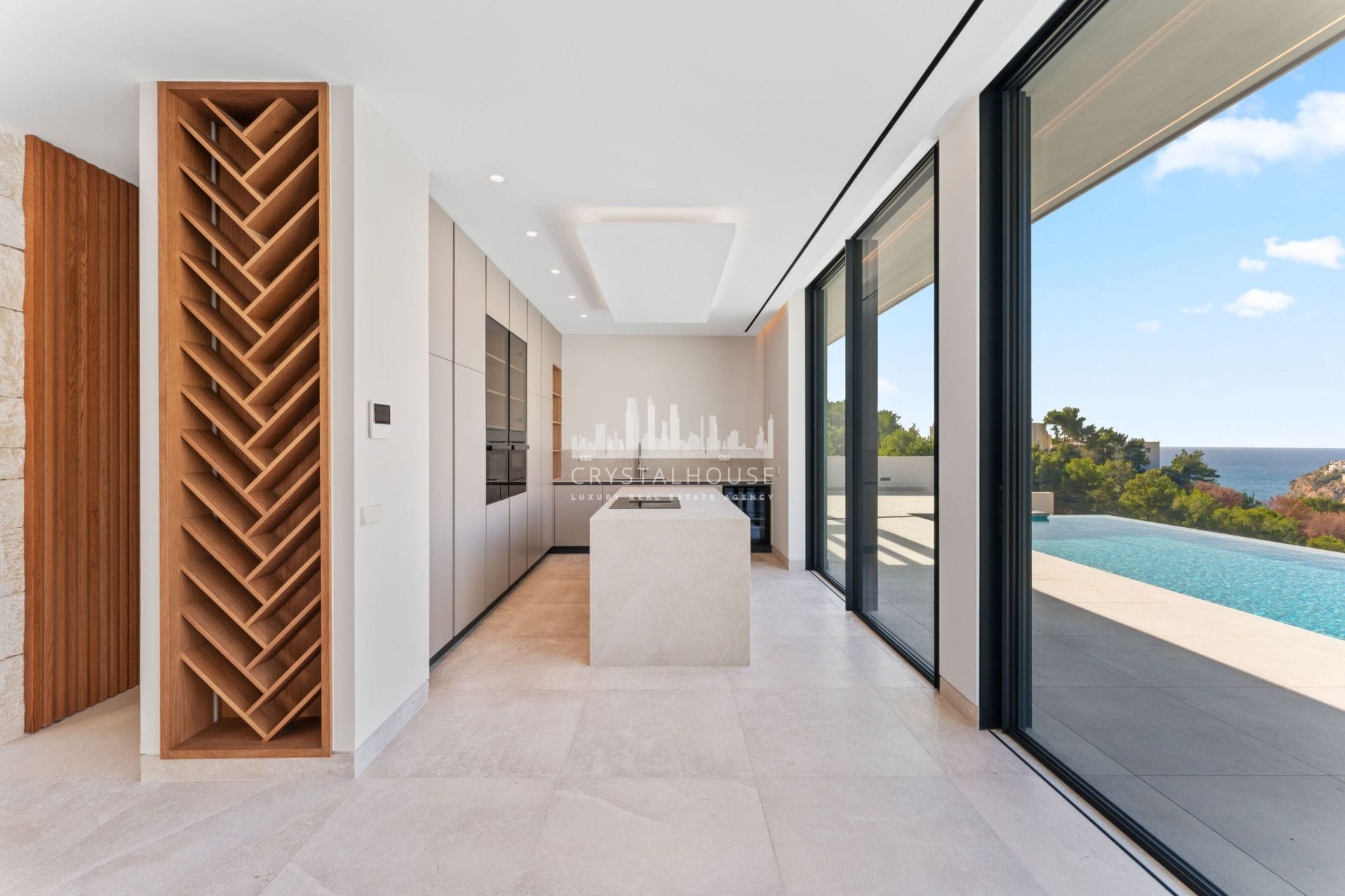 The villa features five bedrooms, each with its own en-suite bathroom, ensuring privacy and convenience for all residents. The layout is thoughtfully designed to maximize the stunning sea views, which can be enjoyed from various vantage points throughout the property. The living areas are spacious and open, creating a seamless flow between the interior and exterior spaces.
