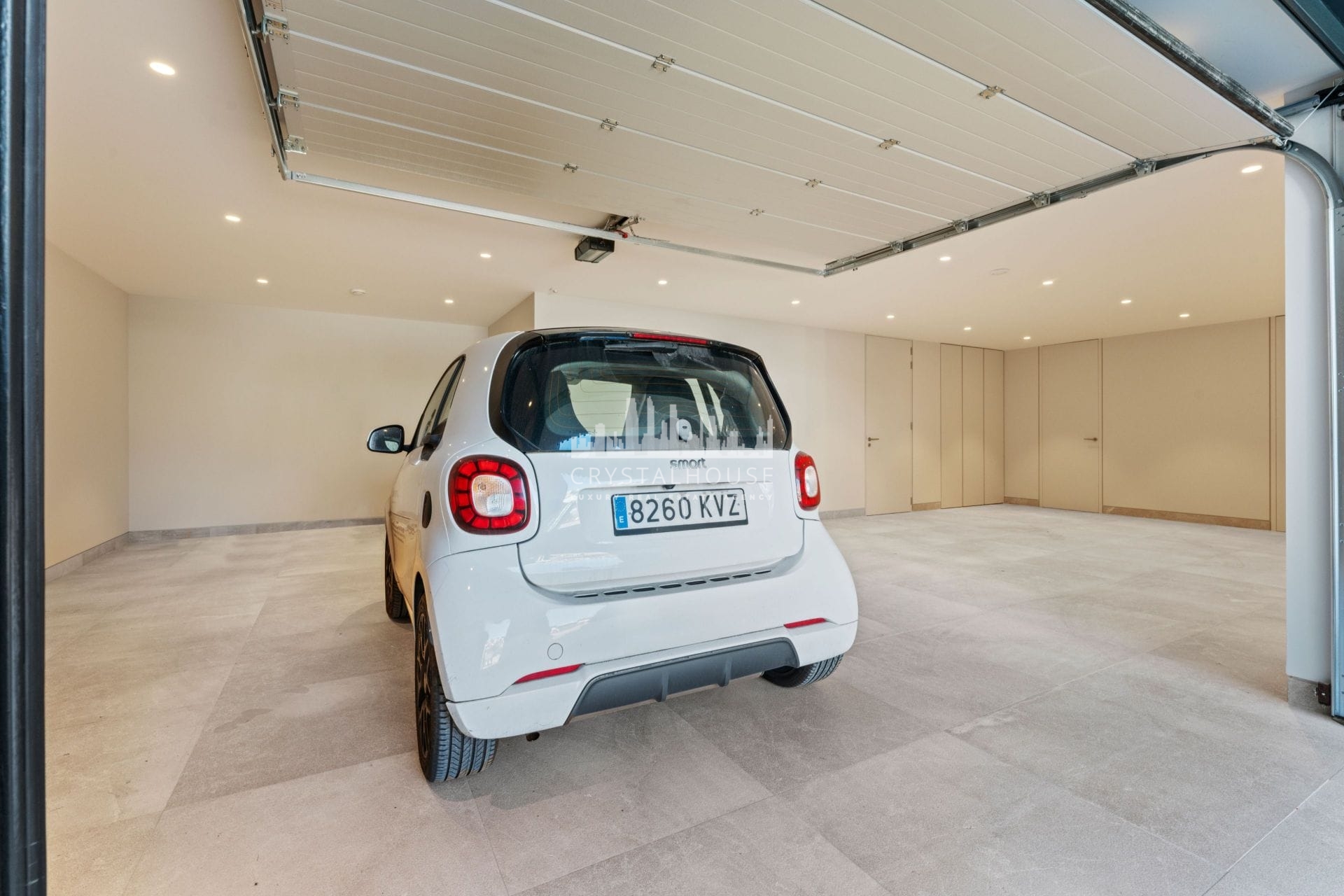 The outdoor area is highlighted by a private swimming pool, perfect for relaxation and entertainment. The property also includes a garage with space for two cars, providing secure parking and additional storage options.