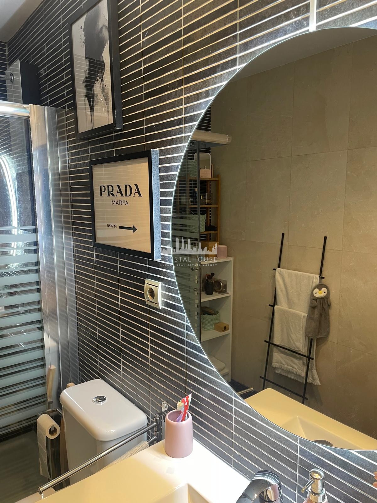 This charming apartment provides spacious and light-filled living, perfect for families or couples desiring a relaxed and comfortable lifestyle. It features two generous bedrooms, two full bathrooms, a fully furnished kitchen, and a large living room that opens onto a spectacular 50 m² private garden and 33 m² porch – ideal for enjoying the Mediterranean climate and panoramic views. Additional conveniences include a 17 m² private garage and 7 m² storage room for extra space and ease.