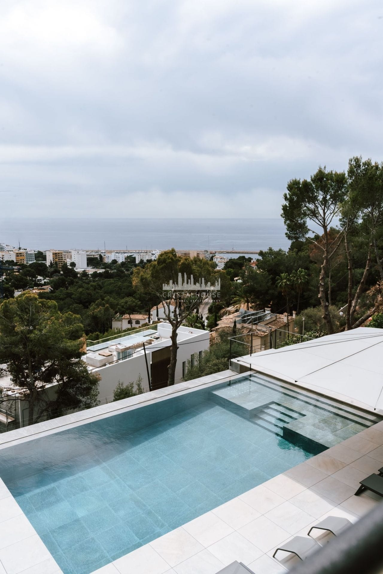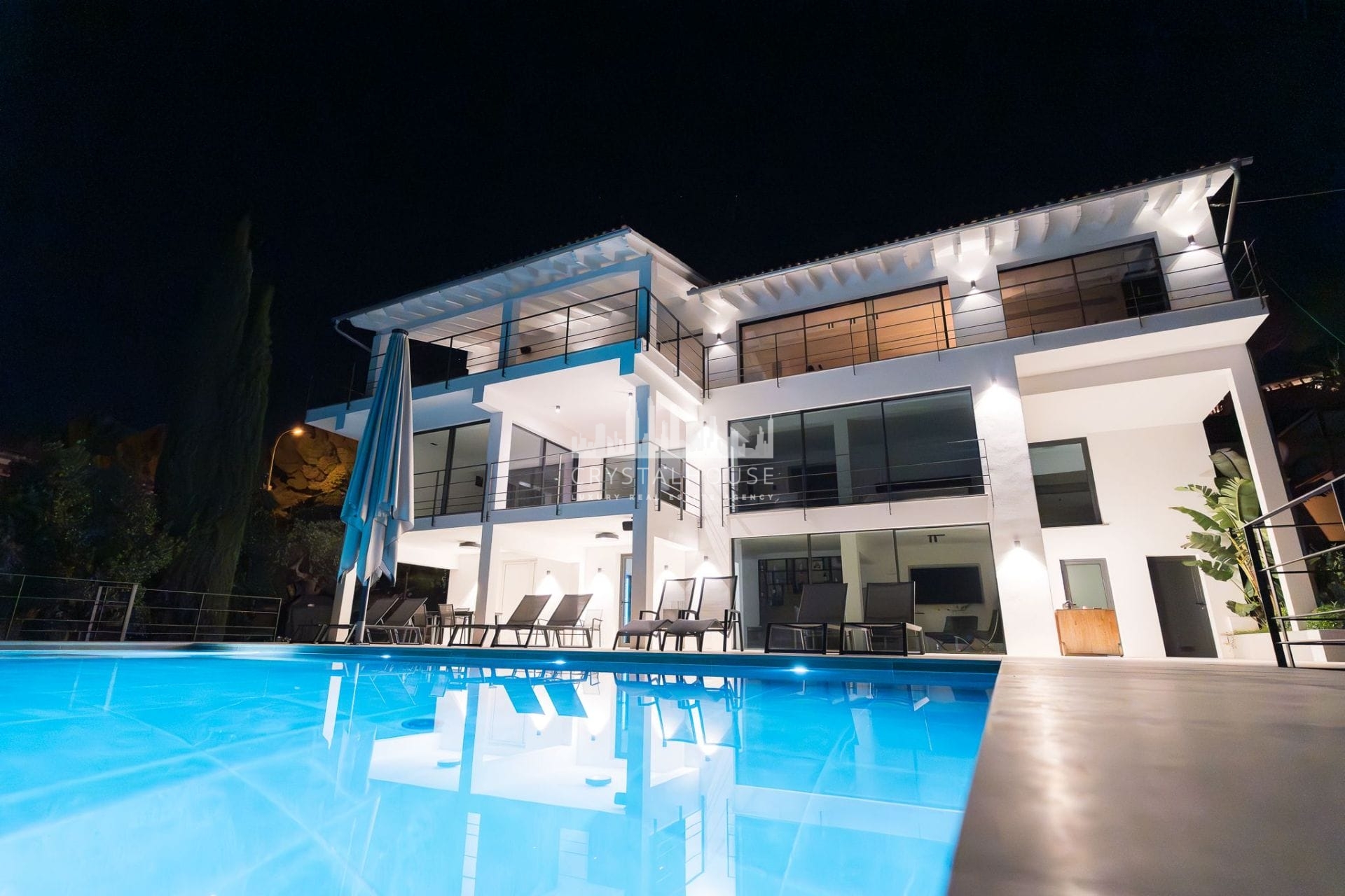 Superb house for sale in Costa d’en Blanes. The villa has been built on a 1,494 m² plot and has a living area of 494 m² spread over three floors. You will enjoy fantastic sea views from every level of the house. The house is supplied with electricity by photovoltaic systems on the roof.