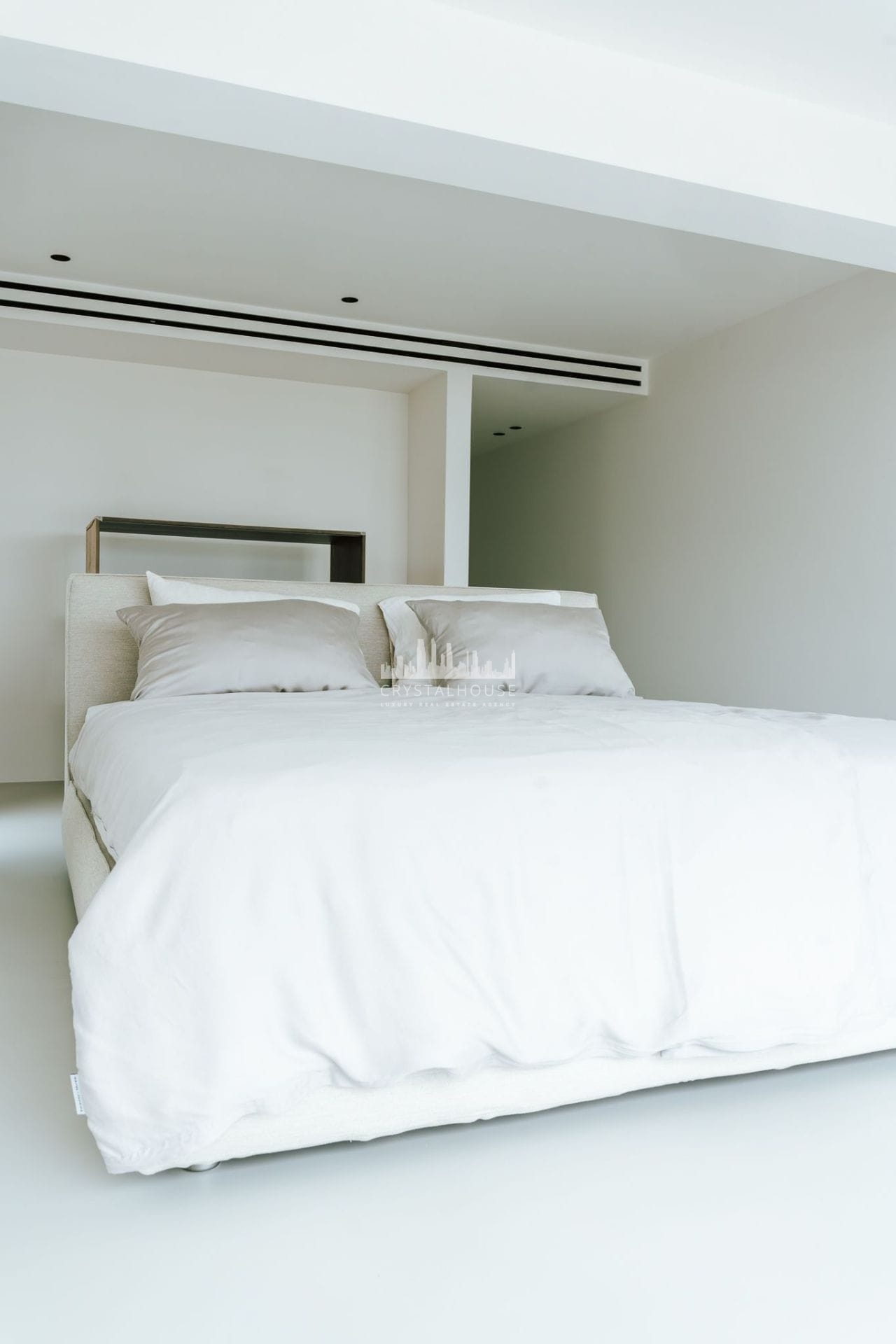 On this level you will find the 140m² terrace, the 84m² infinity pool, a fully equipped kitchen with its own dining area (with TV), a BBQ area (30m²), a guest toilet and as a special highlight the jungle shower. Another staircase takes you to another terrace of 90m², which is intended as a chill-out area.