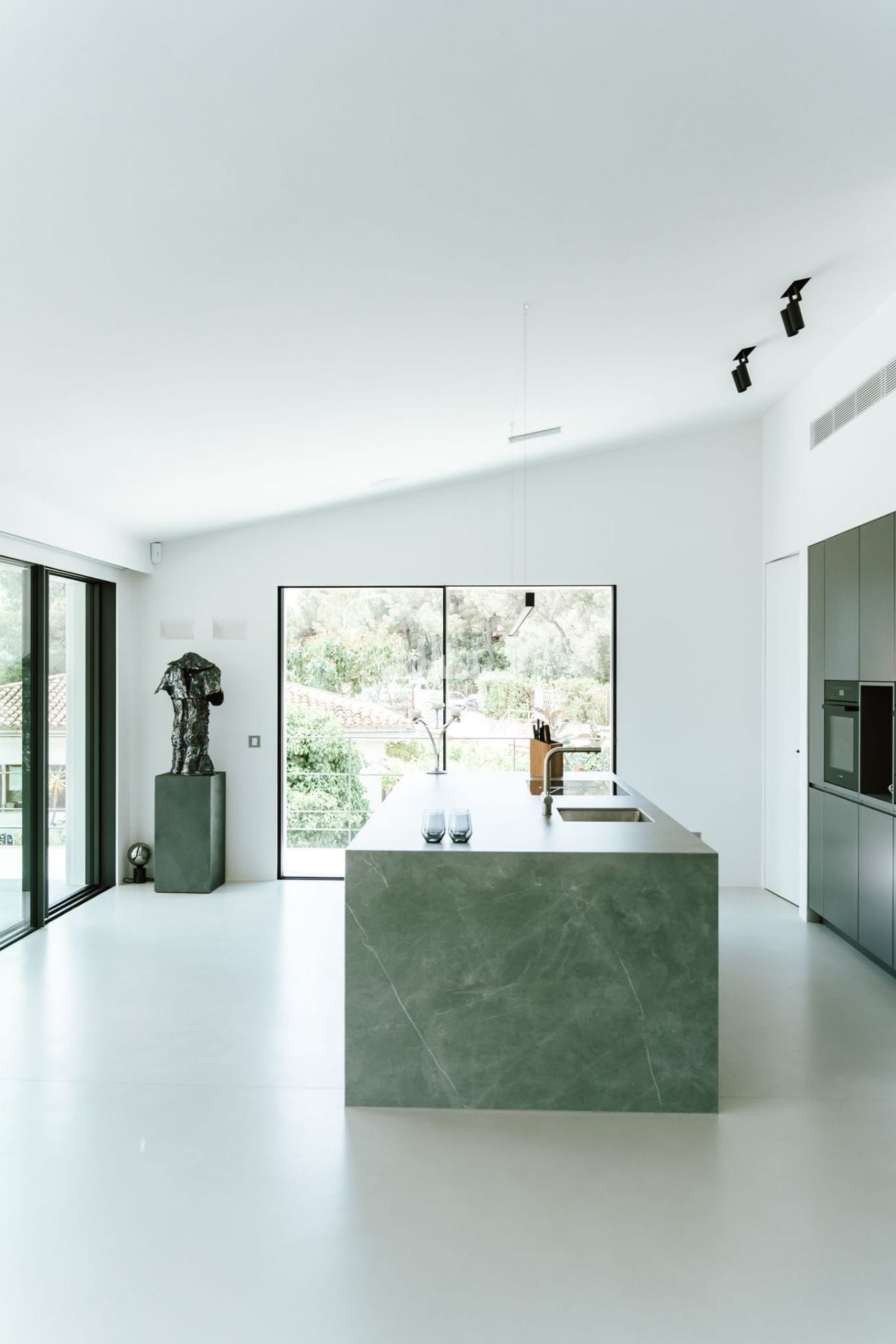 The state-of-the-art equipment of the unique villa includes underfloor heating via two heat pumps, air conditioning h/c, modern narrow window elements, microcement floors, photovoltaic system with battery, a garage with wall box for electric cars, alarm system, sound and domotic system. The house is supplied with electricity by photovoltaic systems on the roof.