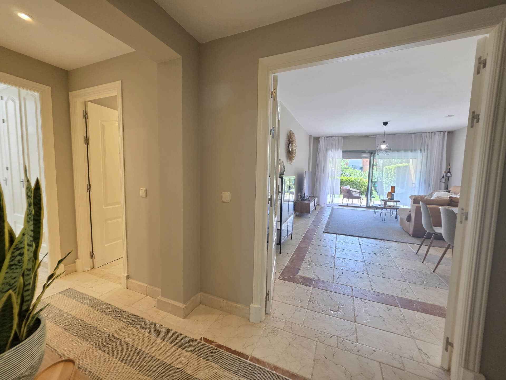 Elegant ground-floor apartment located in the prestigious Benatalaya complex. Bright and spacious, it features an open-plan living and dining area with direct access to a large terrace and private garden.