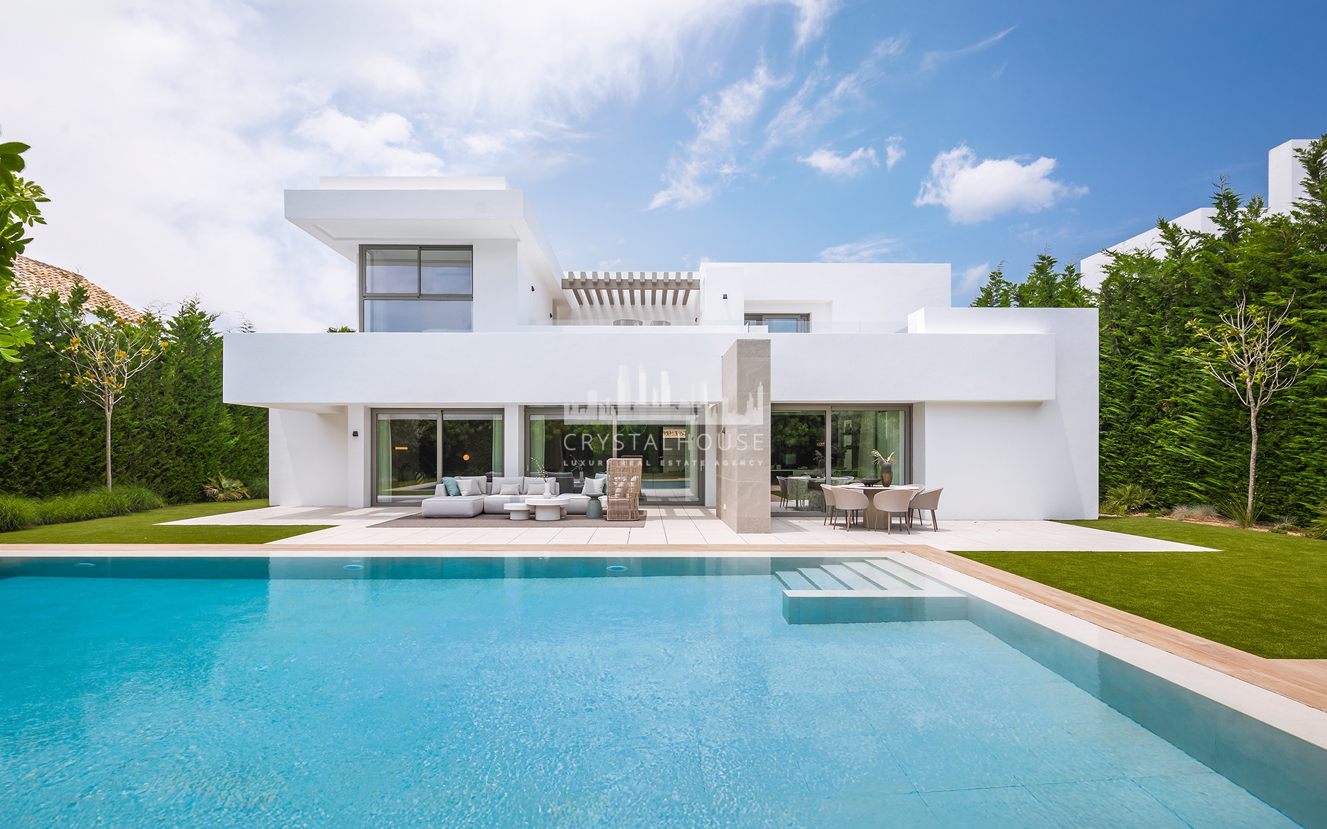 Situated in the tranquil and well-established residential enclave of El Paraíso, this elegant contemporary villa enjoys a privileged location on Marbella’s New Golden Mile, just a short drive from Puerto Banús, San Pedro de Alcántara, and Estepona.