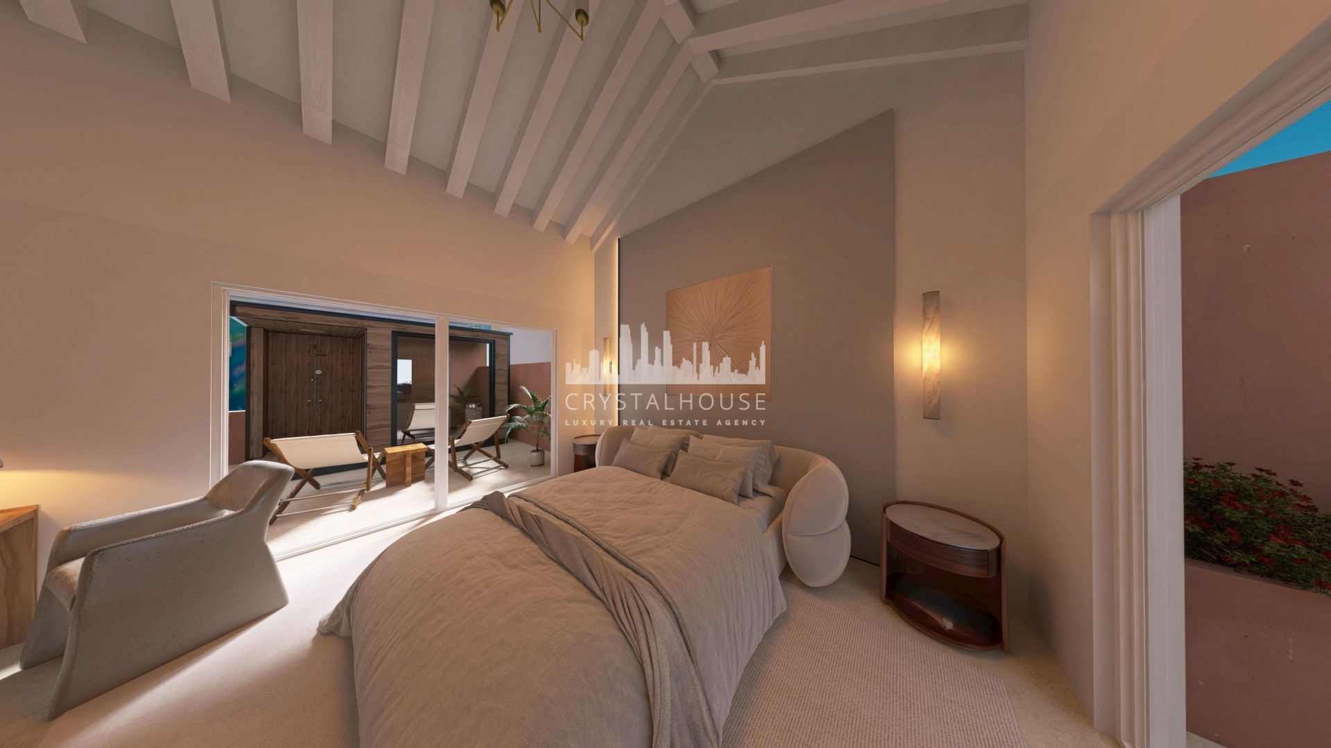 The property features a generous internal layout of over two hundred square metres, complemented by a further one hundred and twenty-five square metres of private terraces. Thoughtfully designed, the interiors combine contemporary finishes with high-spec fixtures. The main suite includes a walk-in wardrobe and a spacious en suite bathroom. Two additional guest bedrooms share a stylish bathroom, and there is also a separate aseo for added convenience.