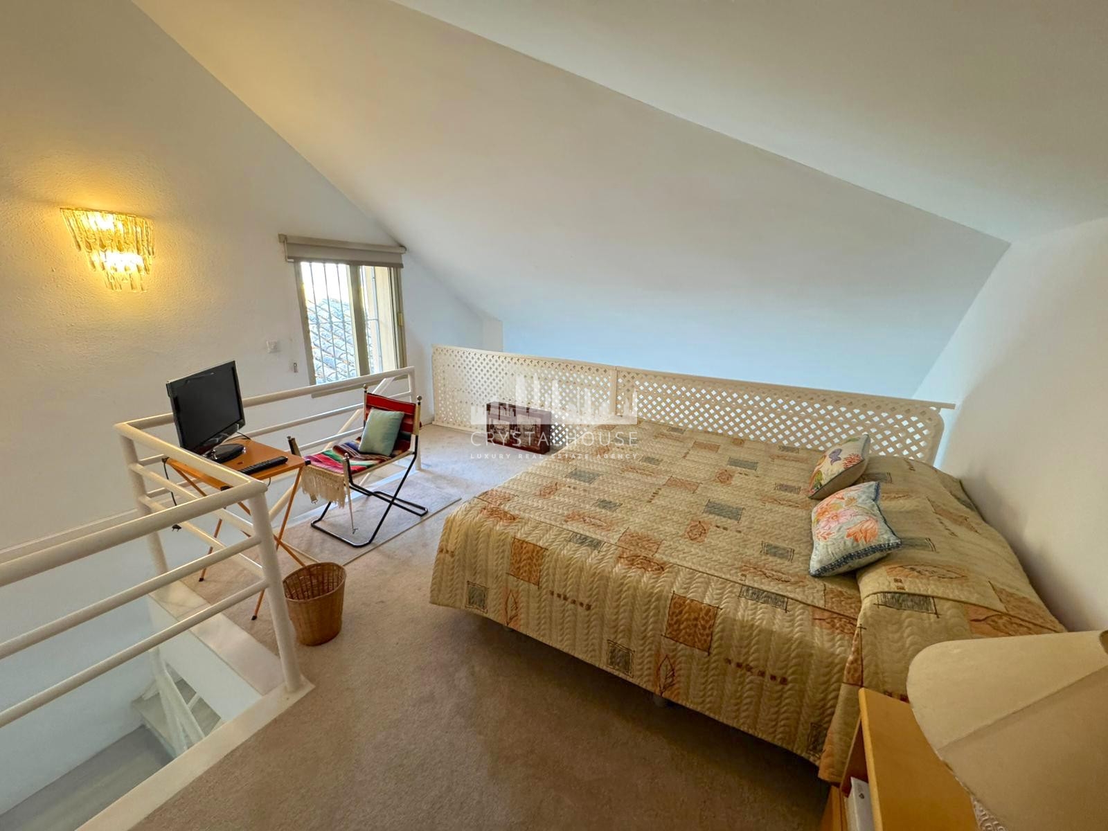 This two-bedroom, two-bathroom apartment, boasting generous proportions and an excellent layout, provides the ideal foundation for a full renovation to enhance its value and transform it into a bespoke luxury residence. One of the bedrooms is located on the upper level, featuring an open-plan feel and a charming sloped ceiling, adding character and architectural interest to the home.