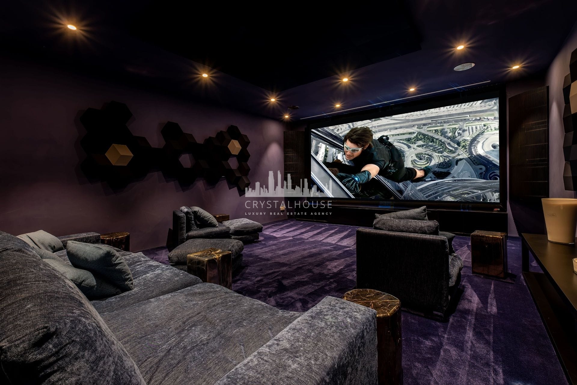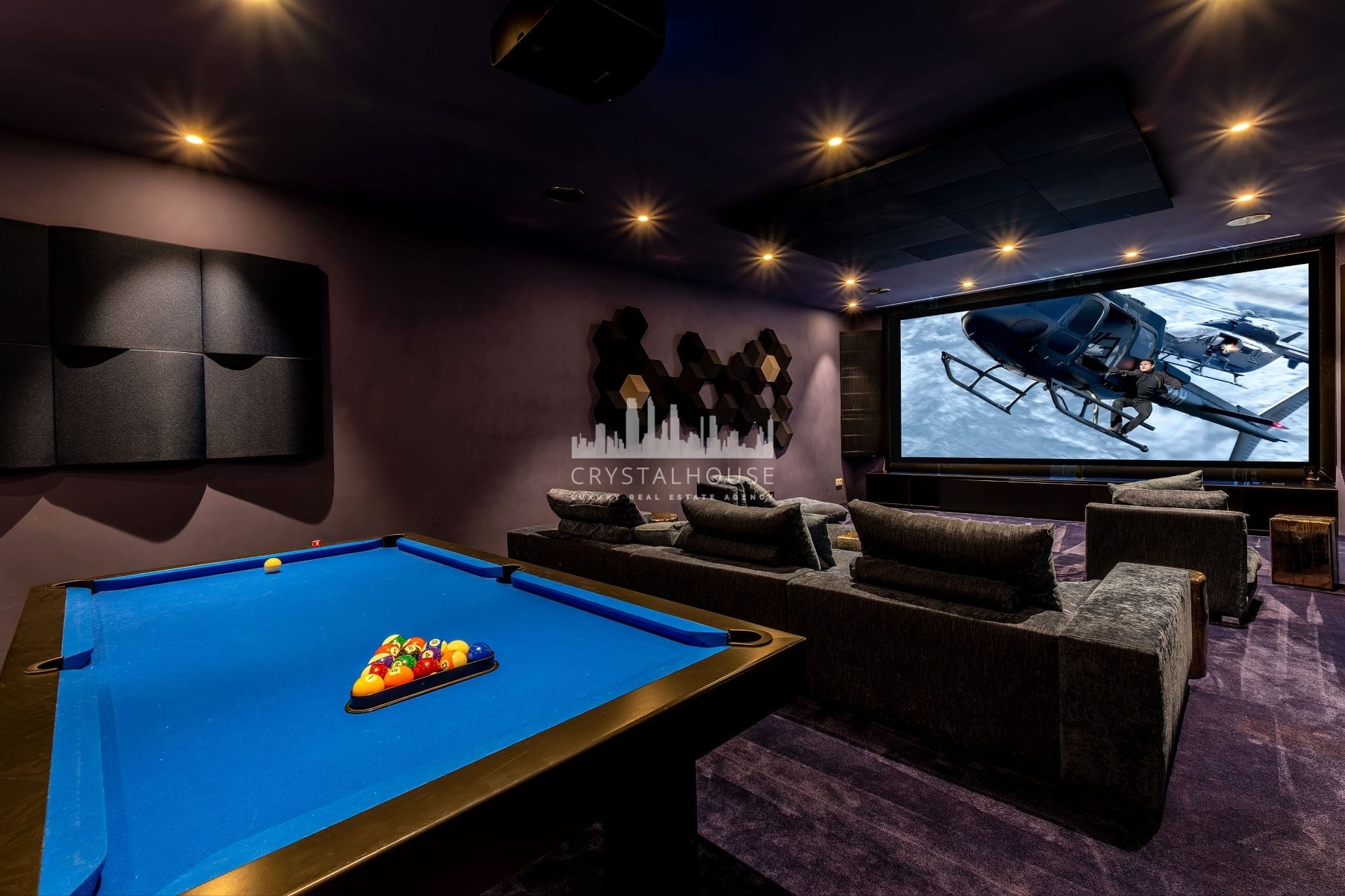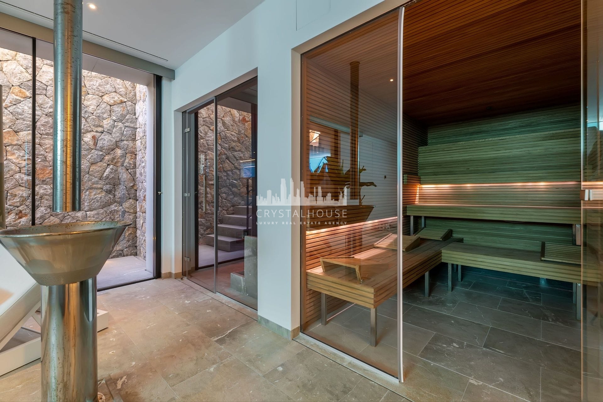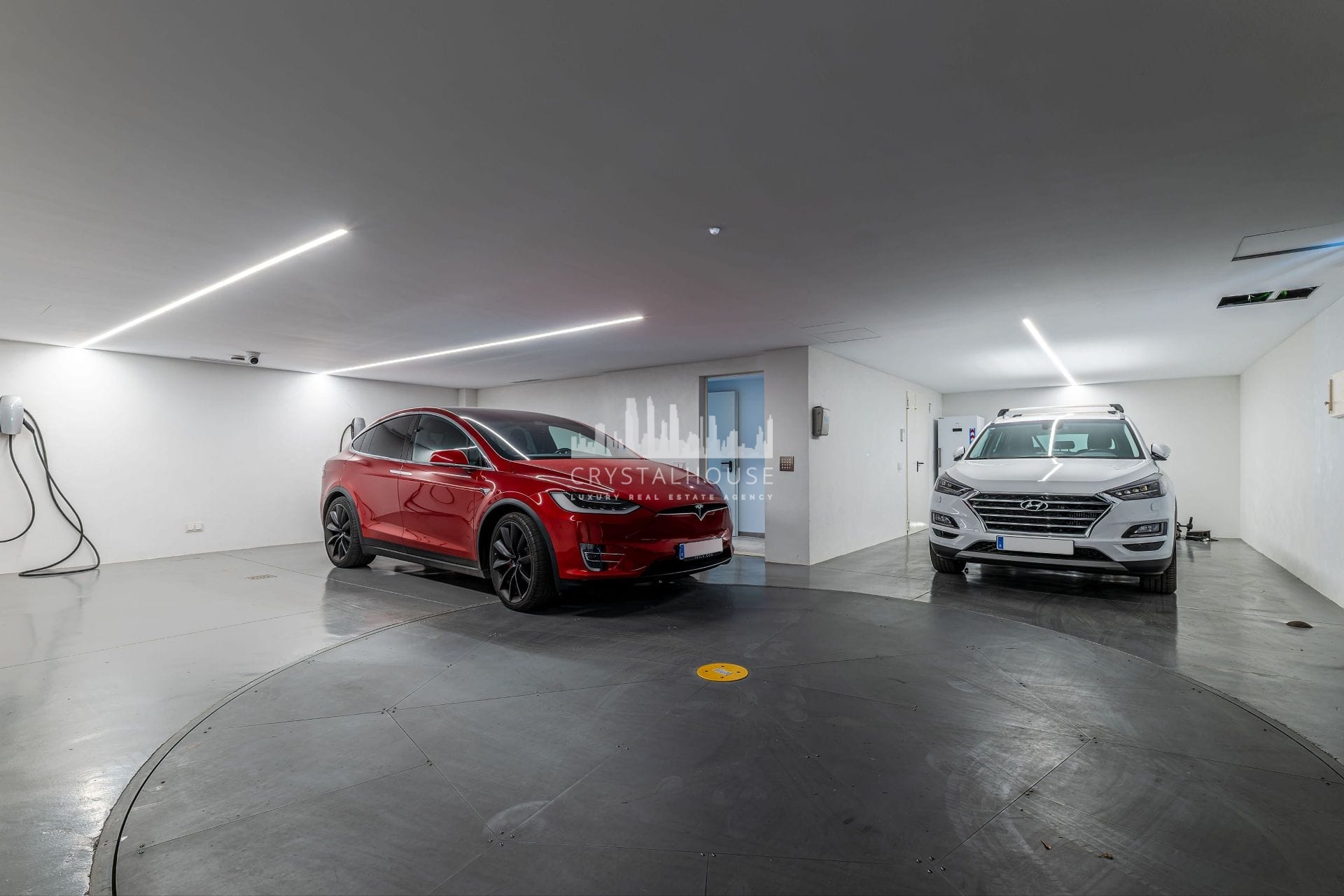 The main house’s full spa and gym allows the new owners complete relaxation and privacy with a sauna and steam room as well as ice chute from the ceiling and is magically lit by natural light from a window from the swimming pool. For convenience, the property features an integral garage with a turntable for ease of use and electric car charging points. Recently built this residence exudes sophistication with high-end luxury finishes and materials throughout.