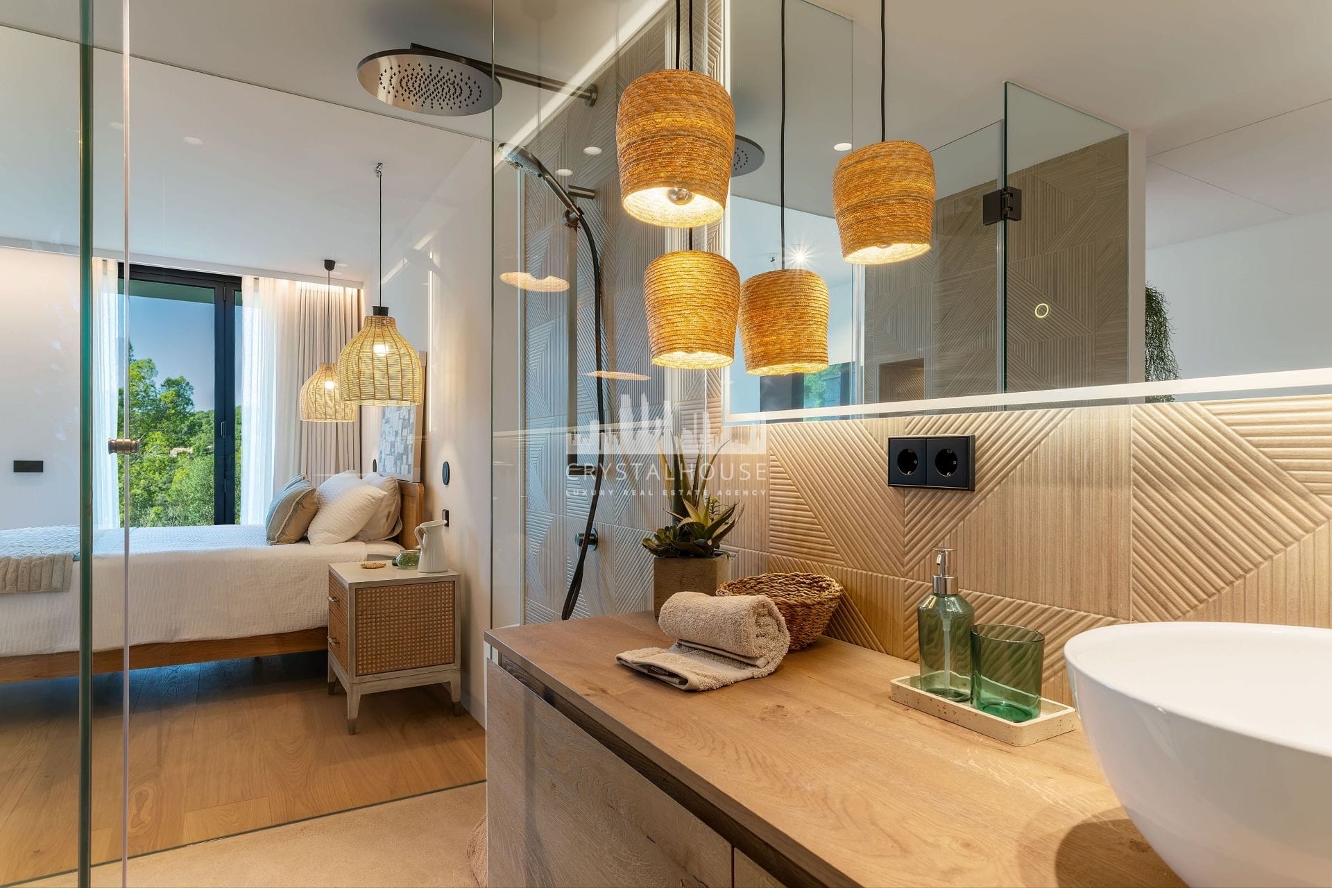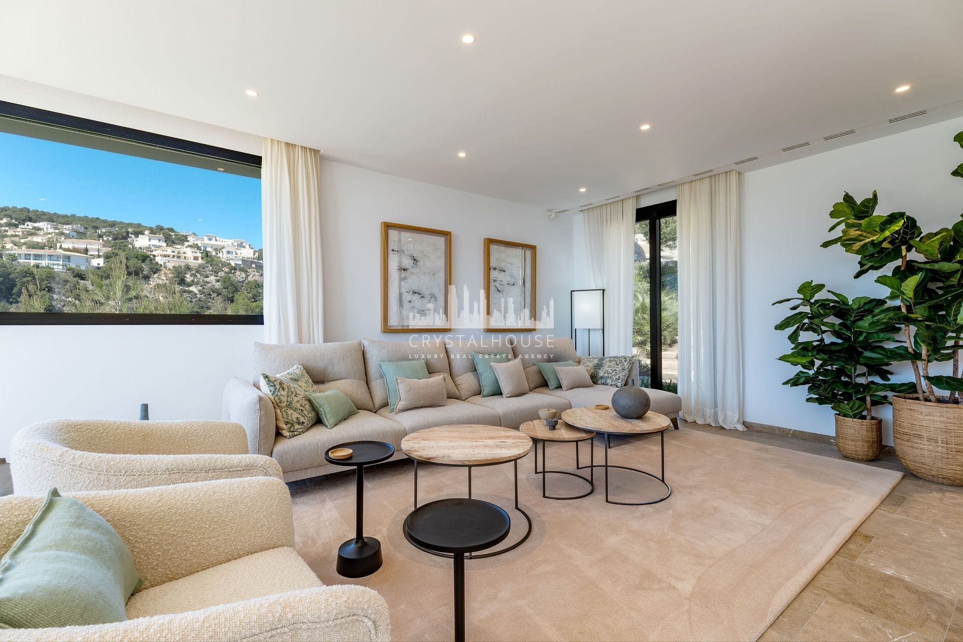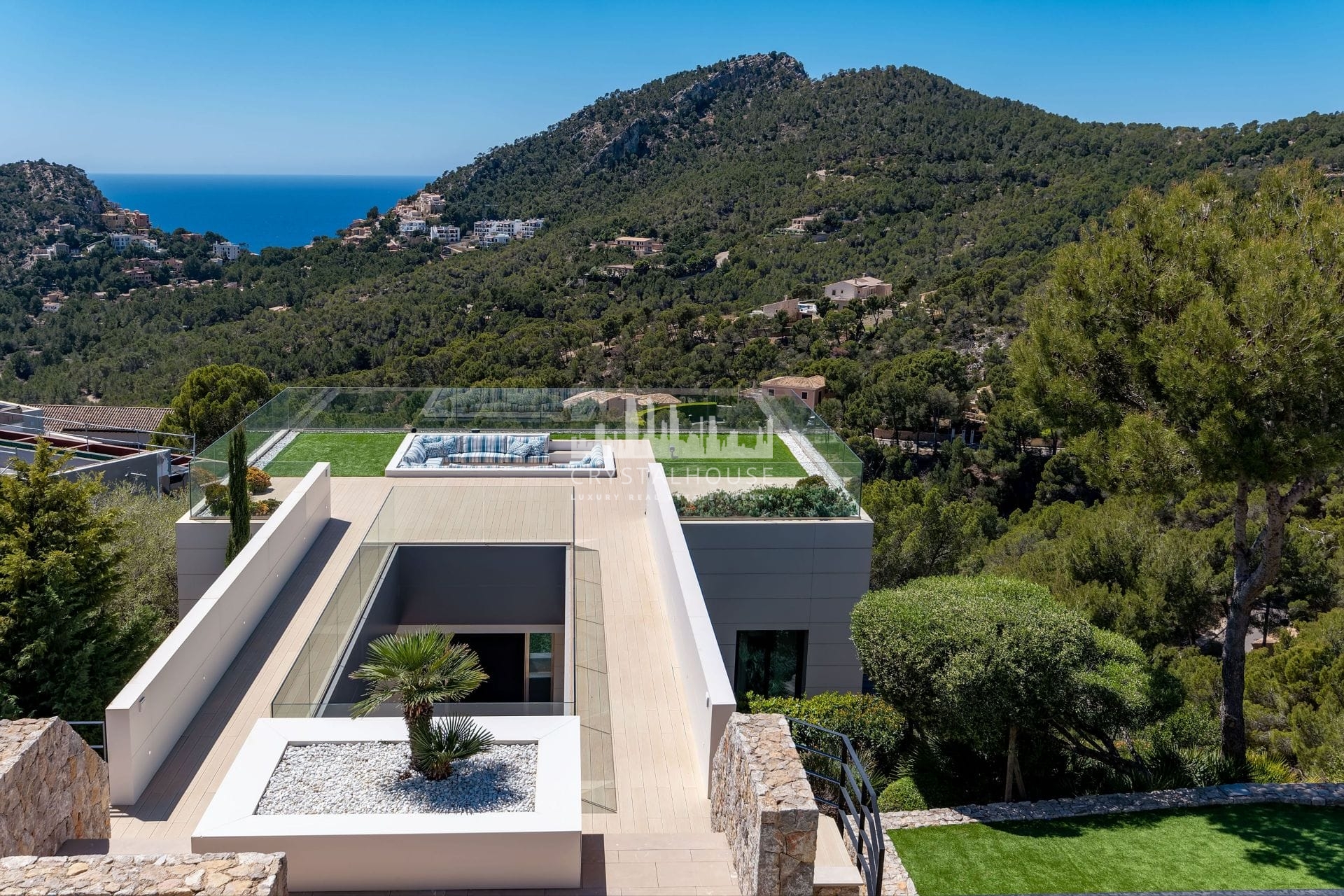 Additionally, both to ensure privacy and extra accommodation, the sale includes a second neighbouring plot of 1.428 sqm with a partially built new villa with 4 bedrooms that also superb sea and mountain views. This villa is to be completed in 2024 and provides a unique offering of accommodation for a large family, guests and or fellow travellers. The combination of three separate but adjoining properties built to such high specifications in this world class location is almost impossible to find in the property market of South West Mallorca.