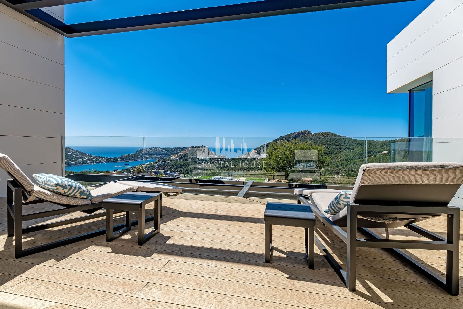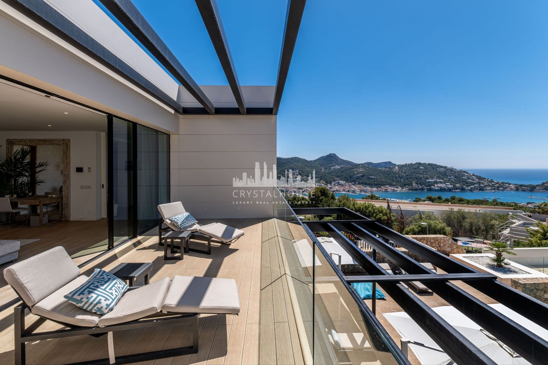 Located in the picturesque village of Port d’Andratx, this villa is situated in the stunning South West area of Mallorca, Balearic Islands, Spain. Port d’Andratx is renowned for its upscale marina, designer boutiques, and exquisite dining options, making it a sought-after destination for those seeking a sophisticated lifestyle by the sea. The port retains the charm of its origins as a fishing port having a wide range of bars, restaurants and hotels mixed in amongst the historic sea front of fisherman’s cottages and workshops. Equally so, the “Club de vela” or sail club, offers world class marine facilities with moorings up to 60m giving access to some of the most beautiful waters of the Mediterranean sea.