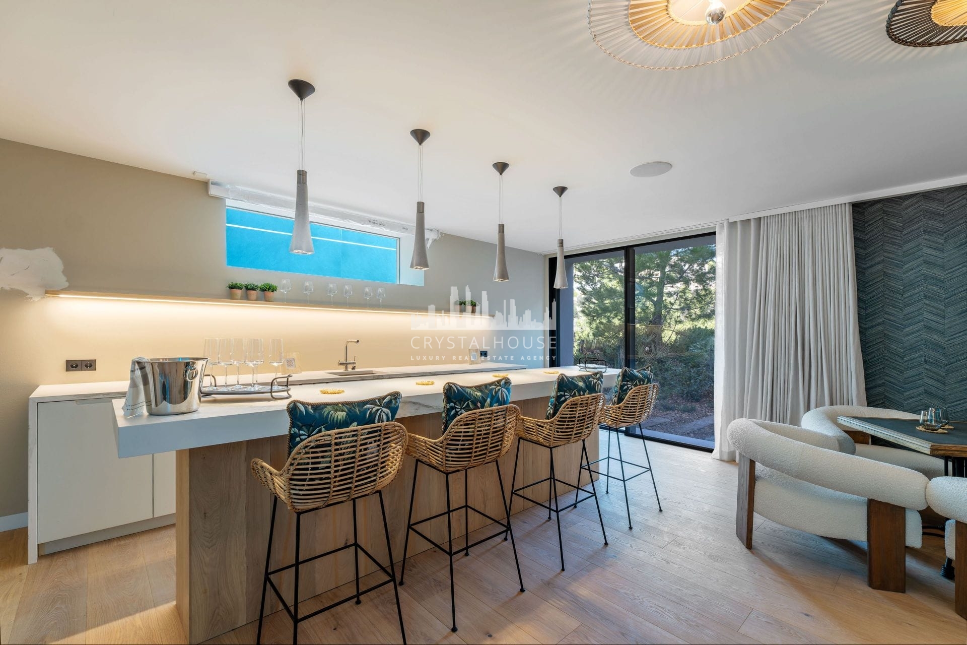 The property boasts an outstanding main residence with breathtaking vistas of the port and sea and is complemented by an integrated guest house linked by a bridge featuring a cinema, games room and two spacious bedrooms. This plot has 2,471 sqm, the main house is 1079 Sqm constructed and the connected guest house is 301 sqm constructed. The villa has 6 bedrooms and the guest house 2 bedrooms.