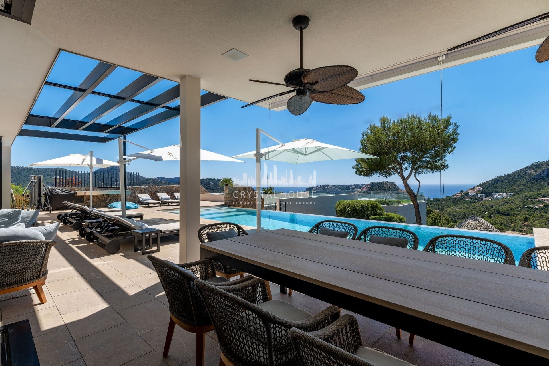 Exclusively for sale with Imperial Properties, this unique estate of 3.899 sqm of land is located in the prestigious area of Puerto Andratx, in the South West of Mallorca. This exceptional villa offers a luxurious lifestyle and privacy with unparalleled views of the highly sought after town of port Andratx as well as Club de Vela and the open seas.