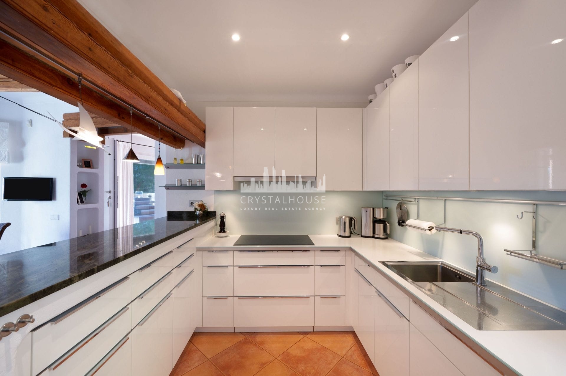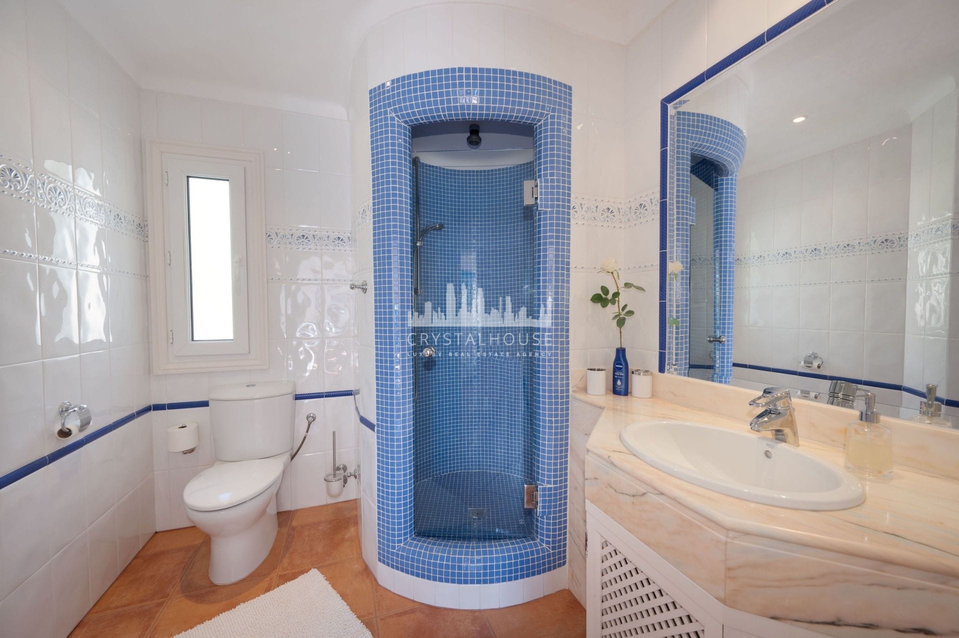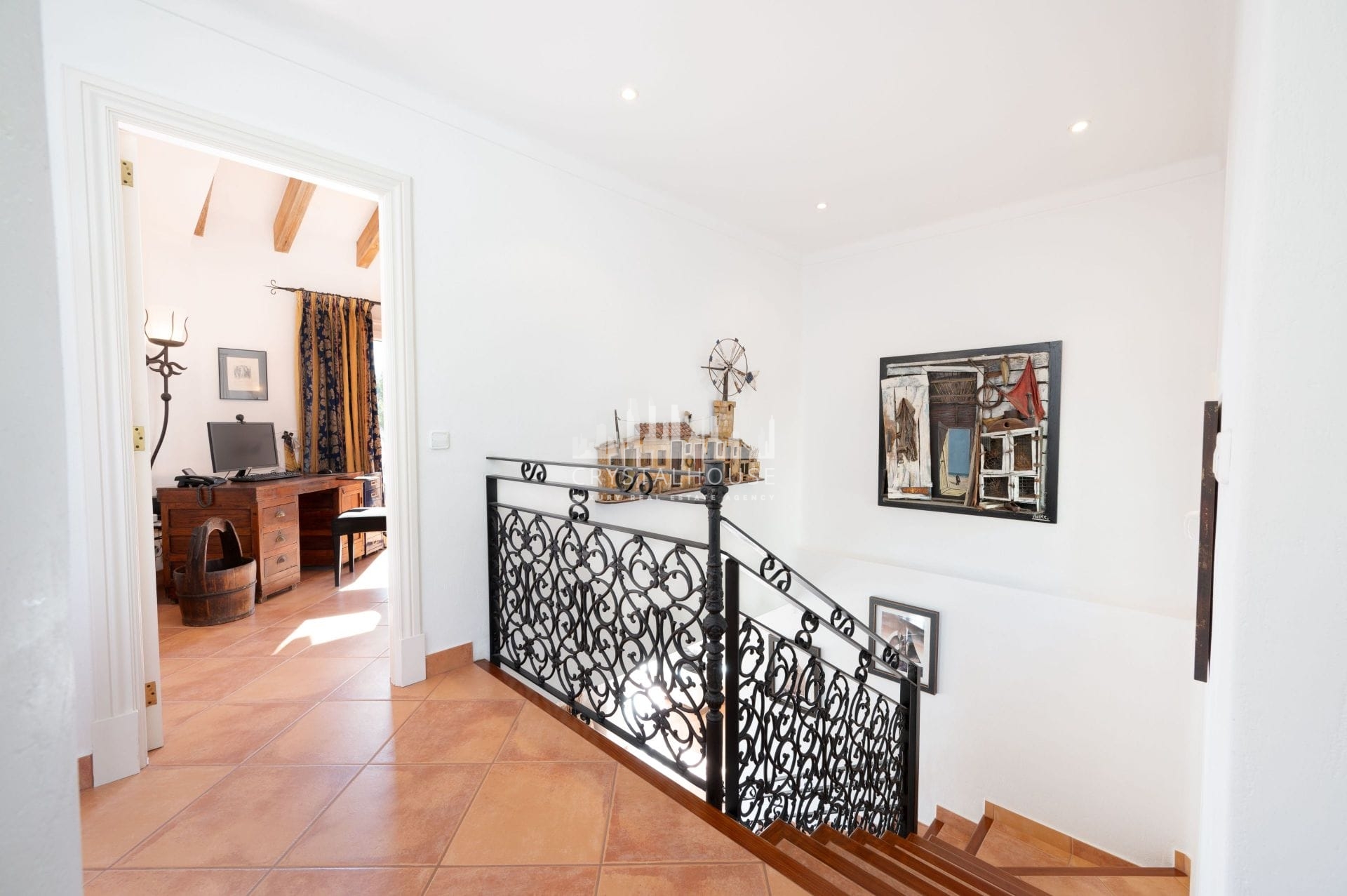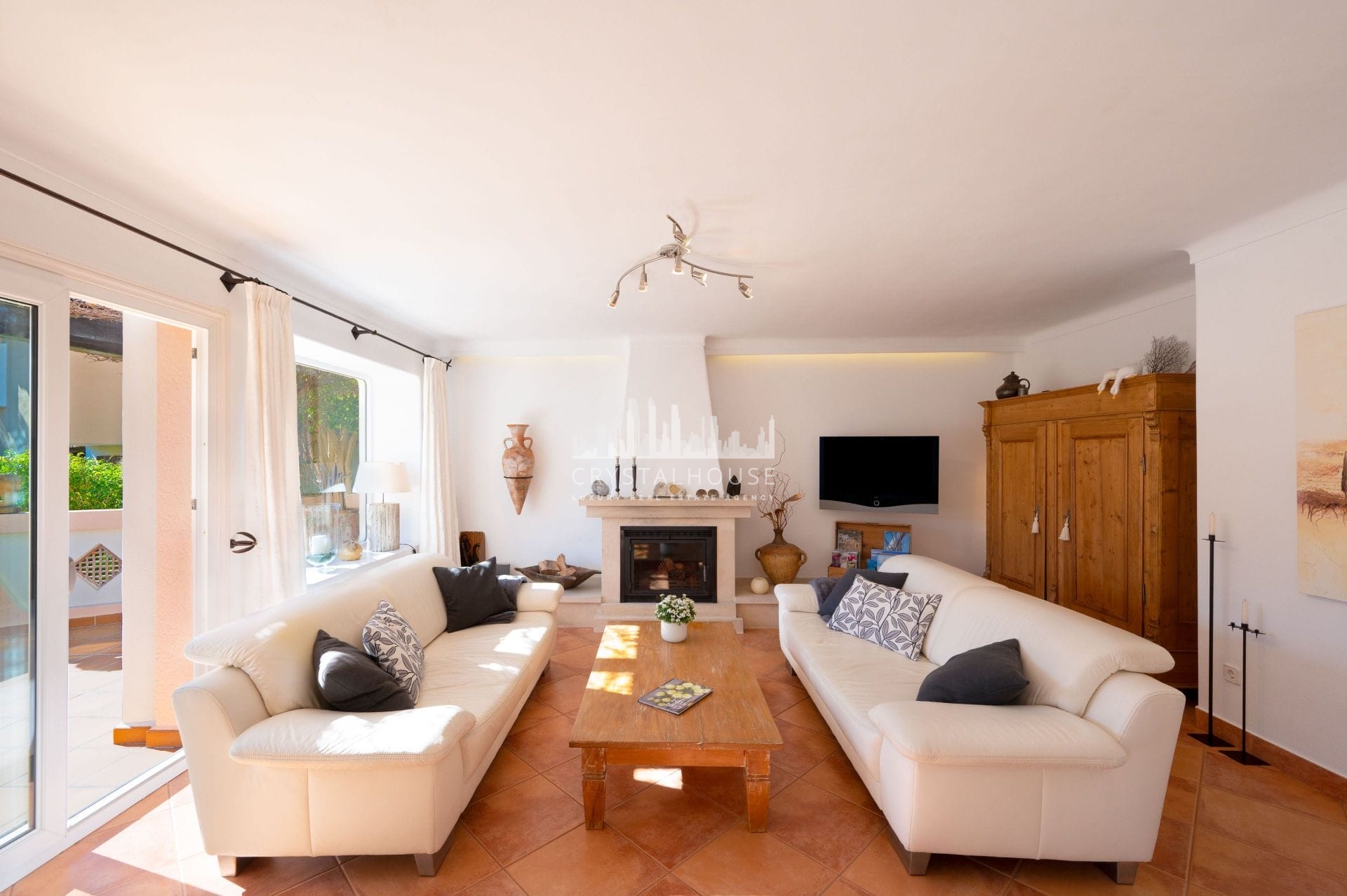 The villa features four spacious sea-view bedrooms, each with its own en-suite bathroom, along with a modernised poolside W/C and shower. The beautifully renovated kitchen flows seamlessly into the bright and inviting living areas, complete with an authentic fireplace and underfloor heating for year-round comfort.