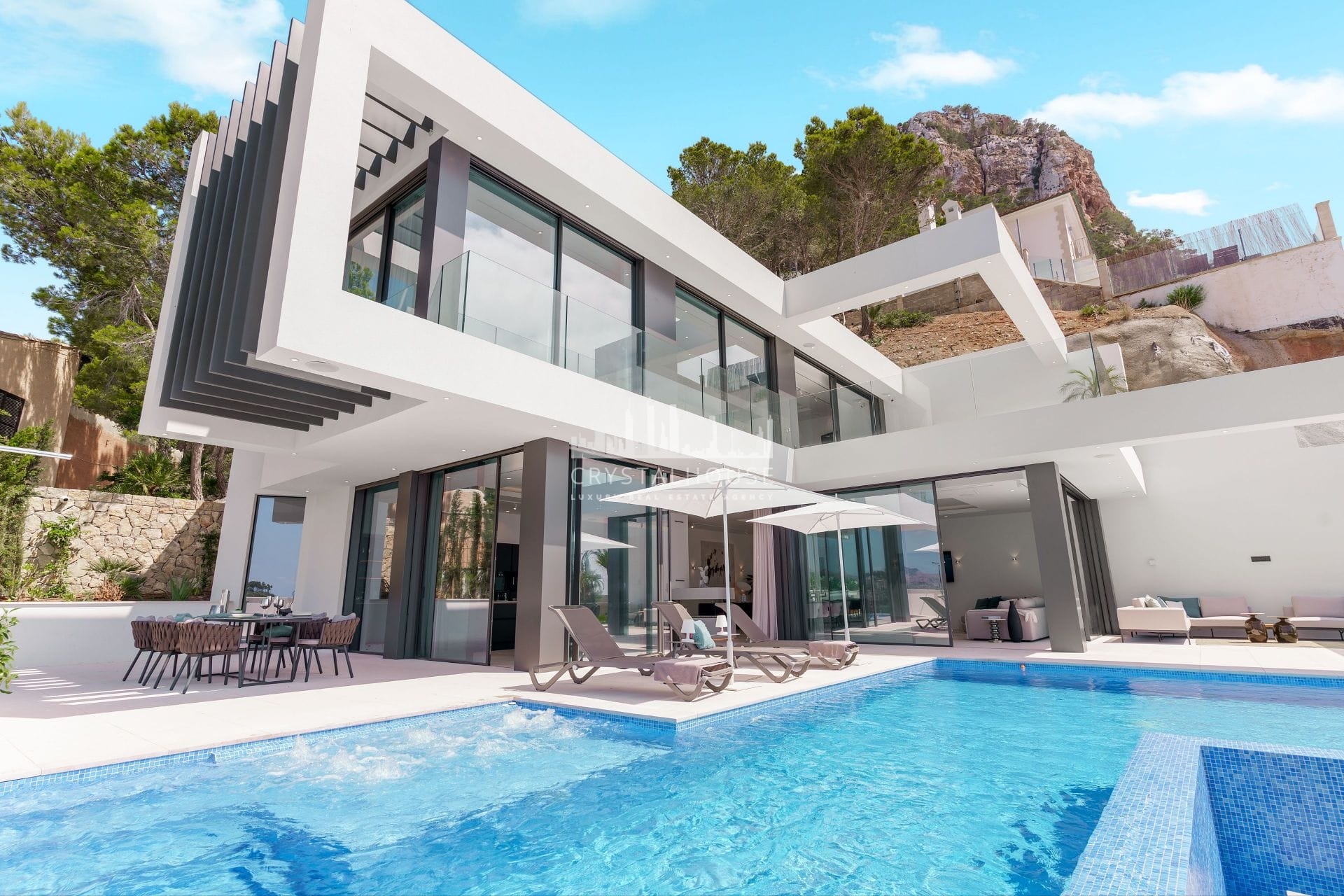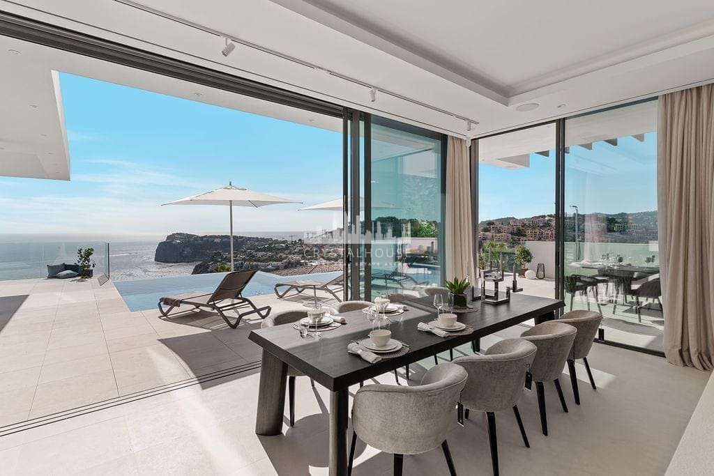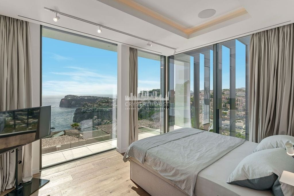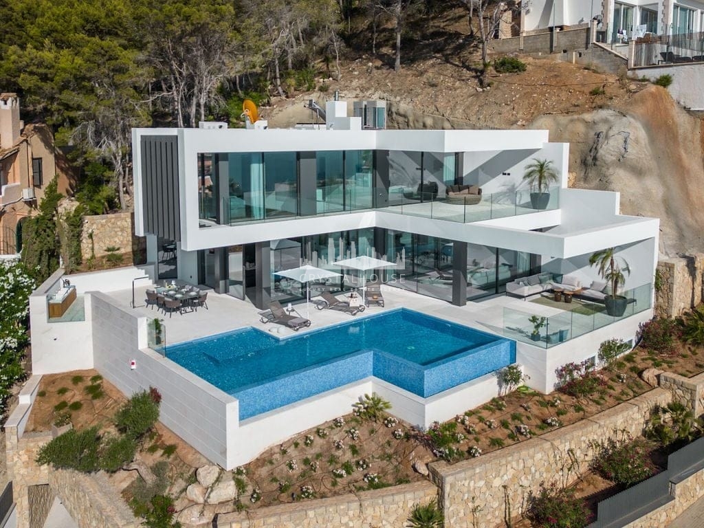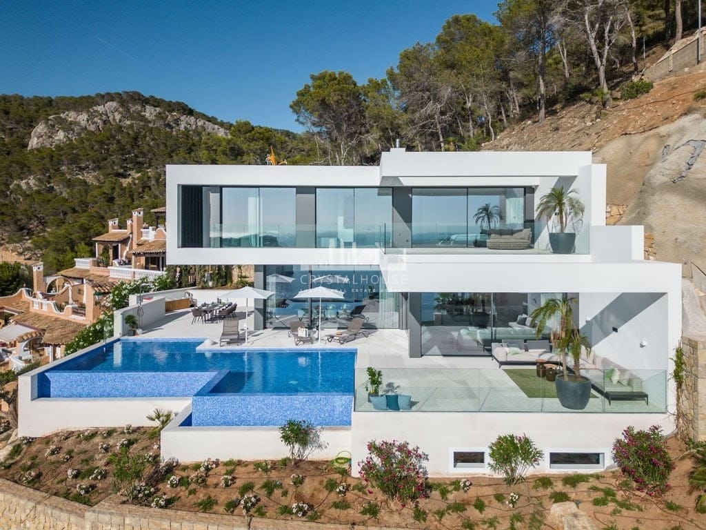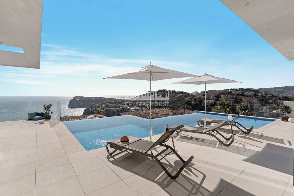 A spectacular brand new villa is available for sale in a magnificent elevated position in Cala Llamp – Port Andratx. Outstanding sea views over the bay of Cala Llamp, over La Mola, and further over the open sea. Top quality materials and equipment. Underfloor heating, lift (connecting all levels starting from the garage), infinity pool – this house will has everything to enjoy living in Mallorca all year round. Ask us for specifications, viewings and more details.