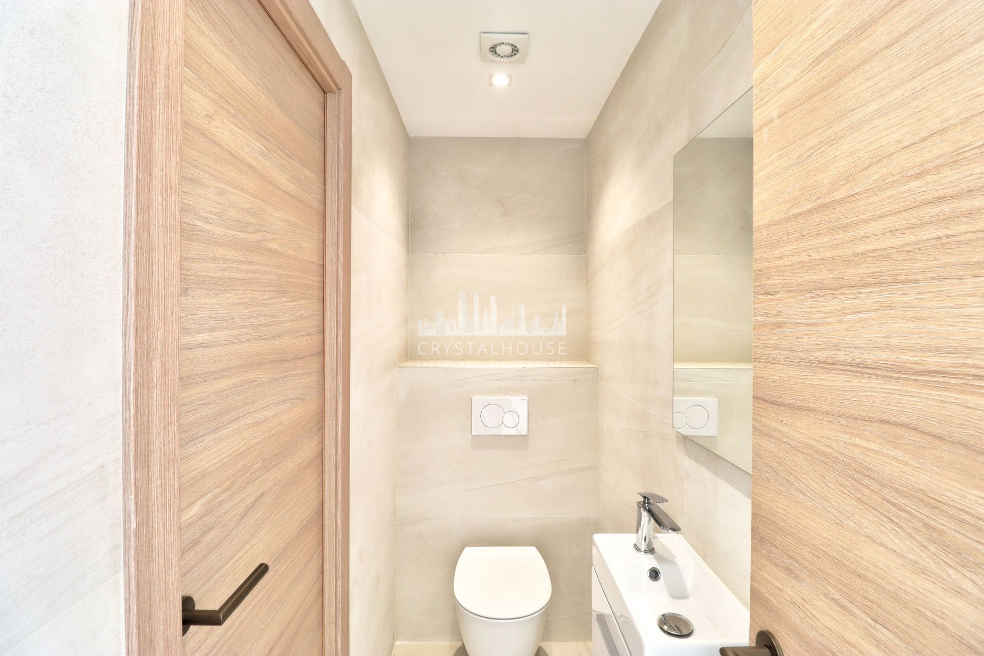 The property includes two double bedrooms, each with its own dressing area and en-suite bathroom. One of the en-suites features a separate WC with an additional entrance from the living space, serving as a guest restroom.