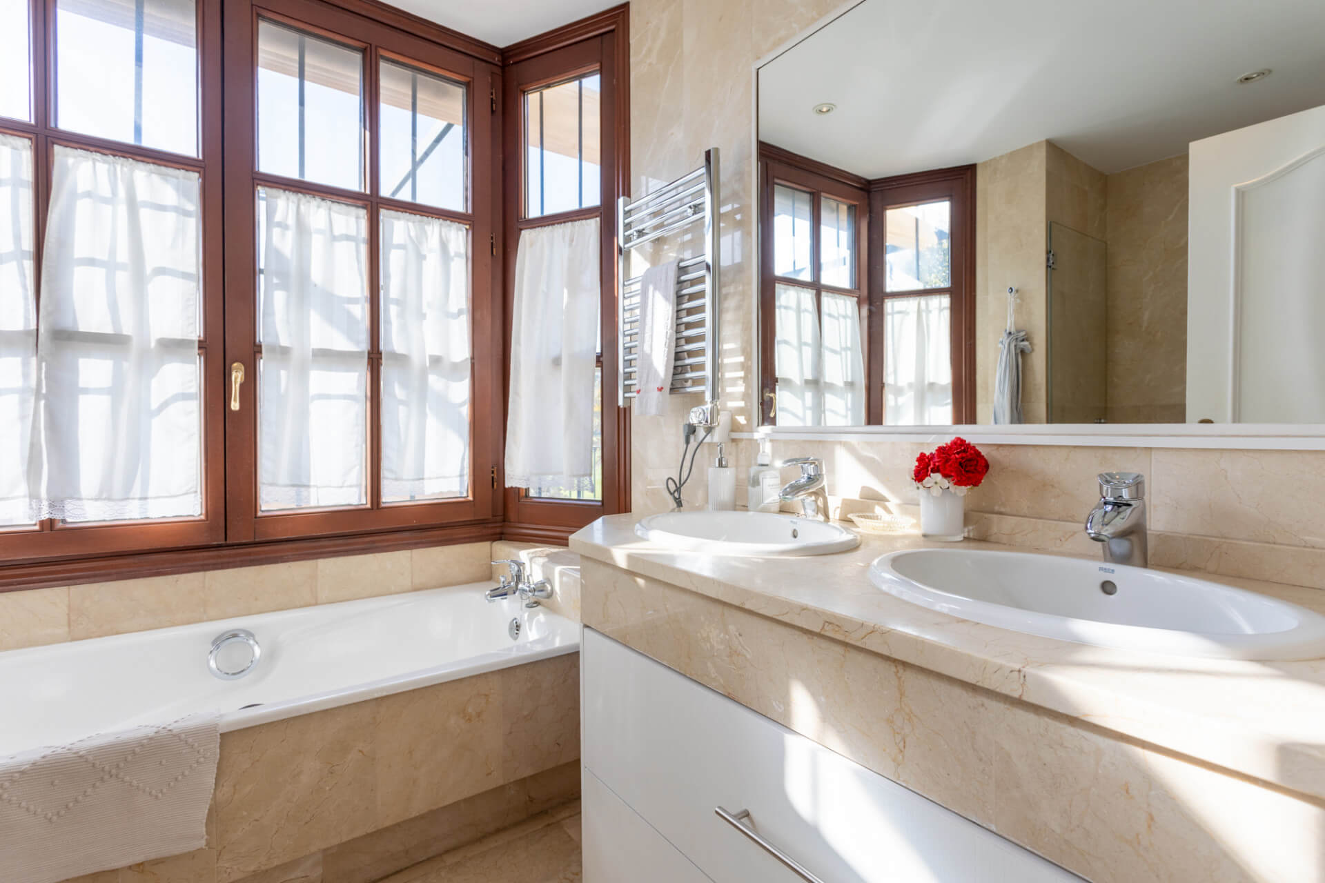 The main floor brings together the living areas in a comfortable and well-connected environment. Spacious living room with fireplace and large windows and direct access to a large covered terrace that extends the space to the outside and allows you to enjoy pleasant views of the golf course. On this level there is also a guest bedroom, currently used as an office, along with a bathroom with shower. The recently renovated and fully equipped kitchen is integrated with the dining room and has direct access to the terrace. It has a separate laundry room with access to a service room with its own bathroom.