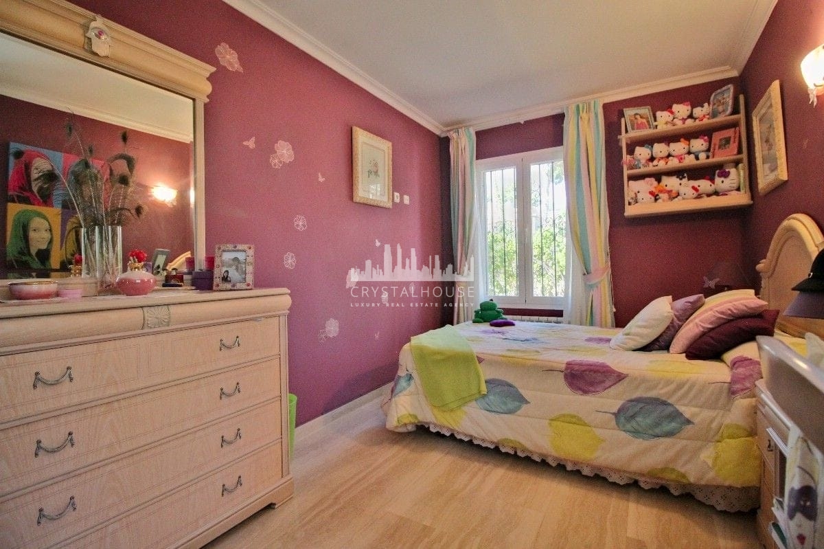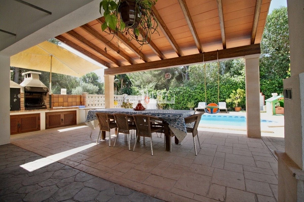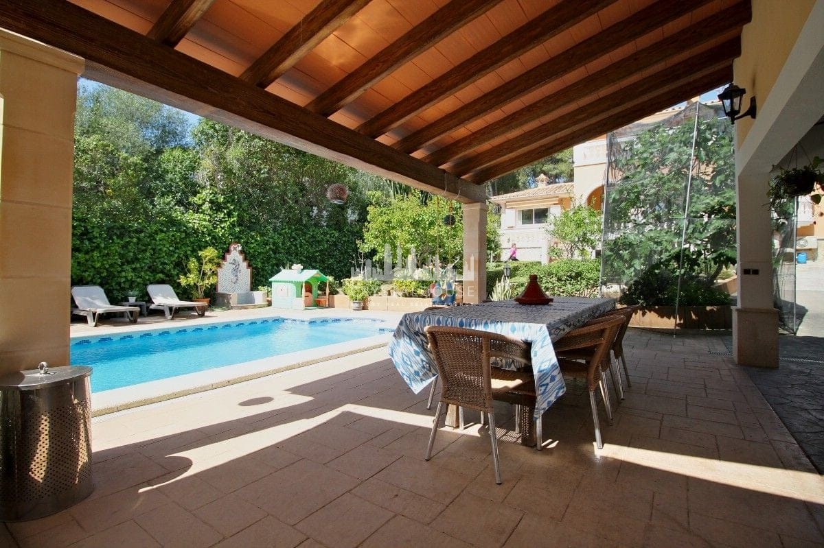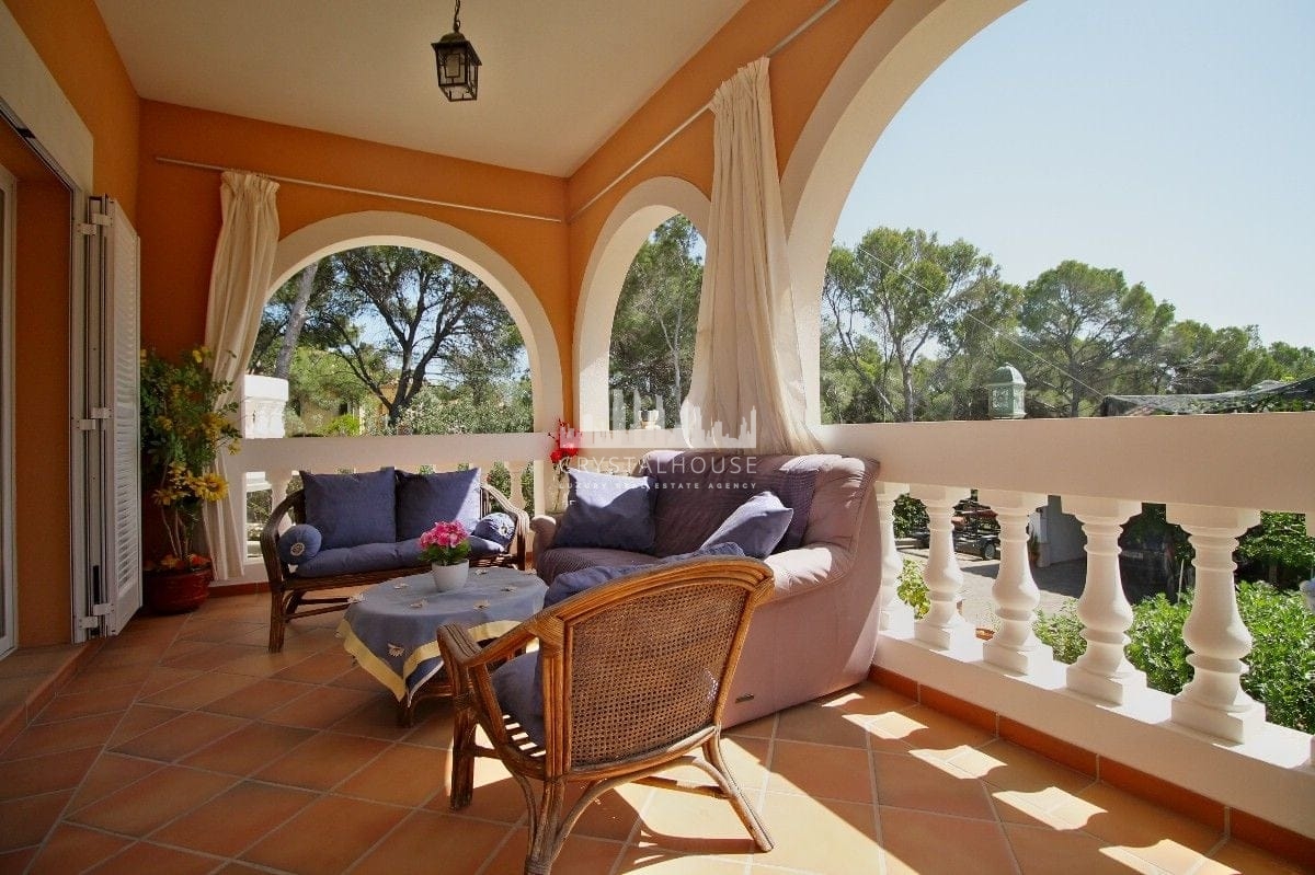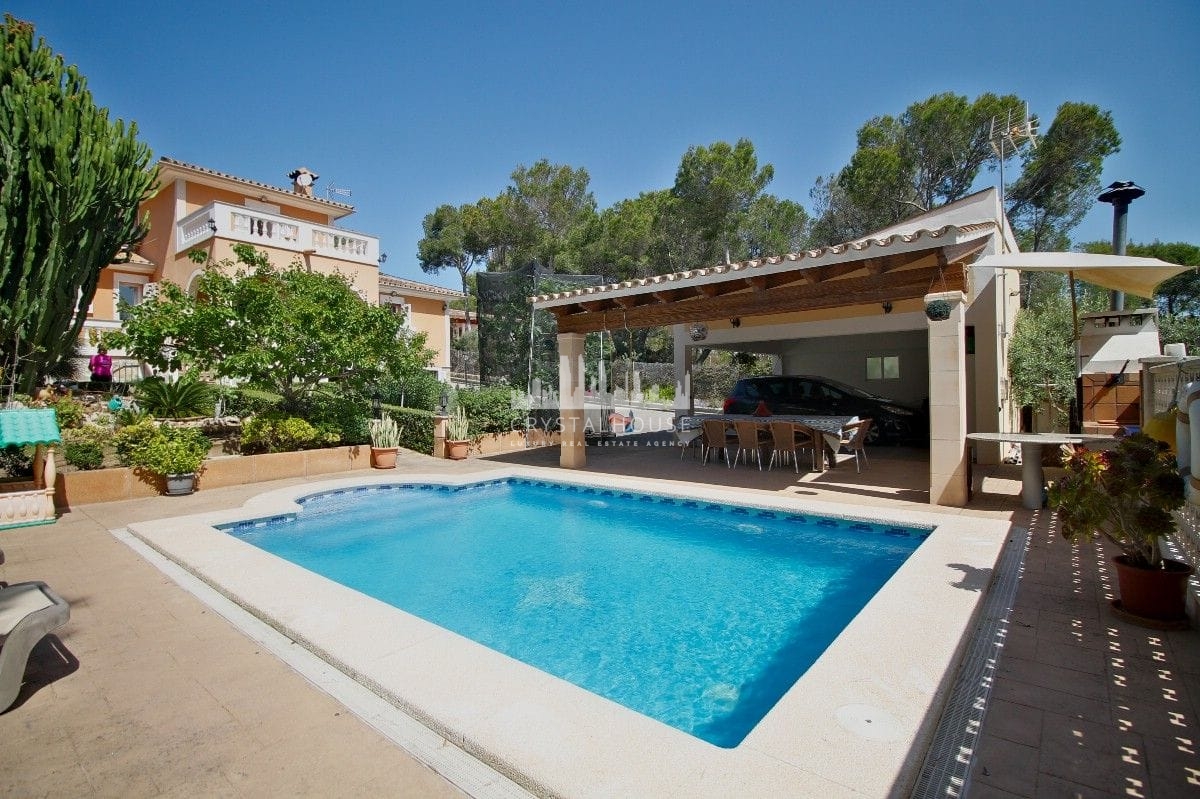 This villa, situated in Santa Ponsa, offers a property on a 1008 m² plot with a built area of 247 m². The residence features four bedrooms, with two located on the upper floor and two on the ground floor, providing a flexible layout. There are three bathrooms.