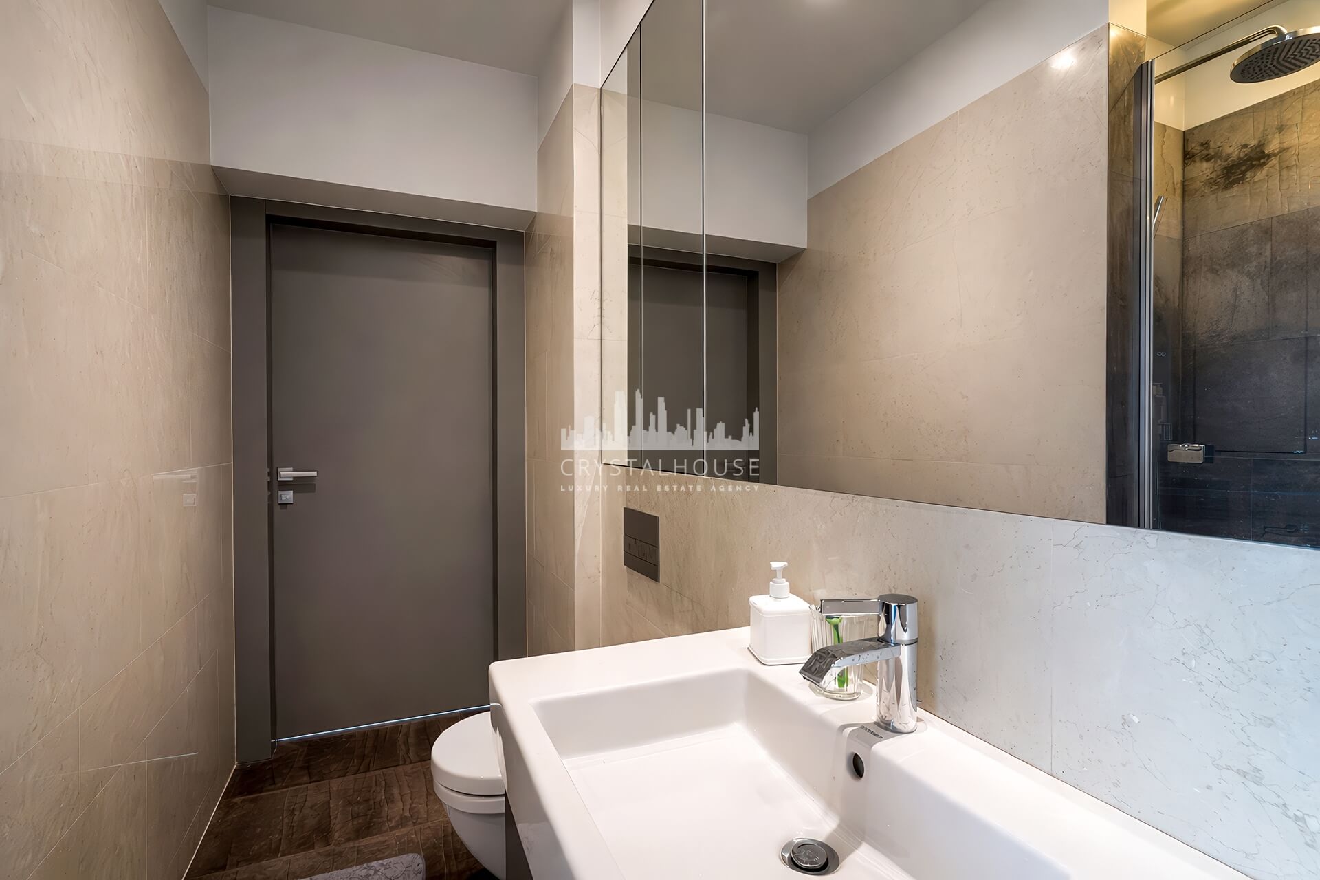 Wnętrza zostały wykończone z wykorzystaniem wysokiej klasy materiałów oraz starannie dobranych elementów wyposażenia. Neutralna, ponadczasowa paleta barw podkreśla luksusowy charakter nieruchomości.