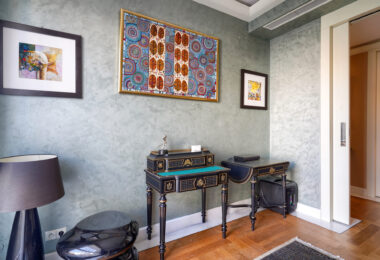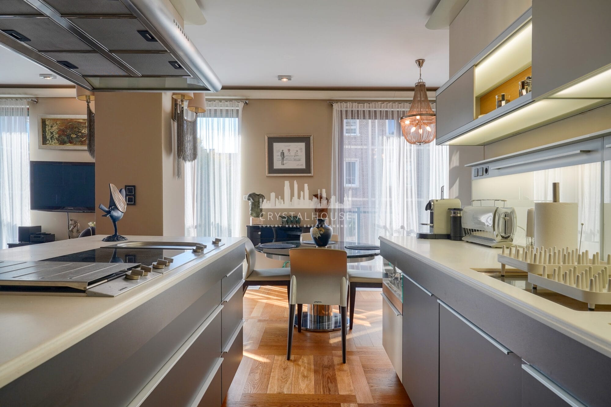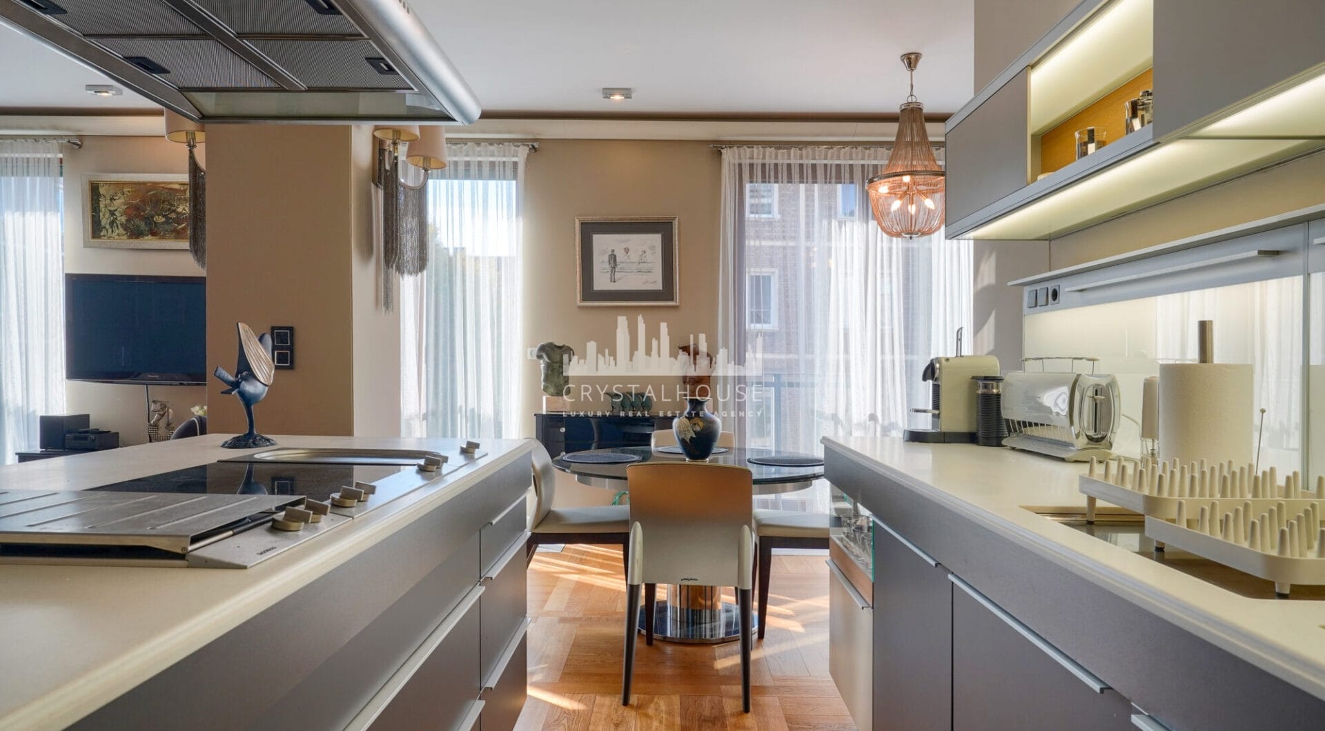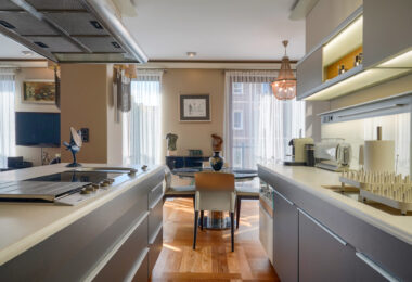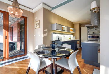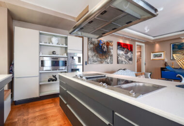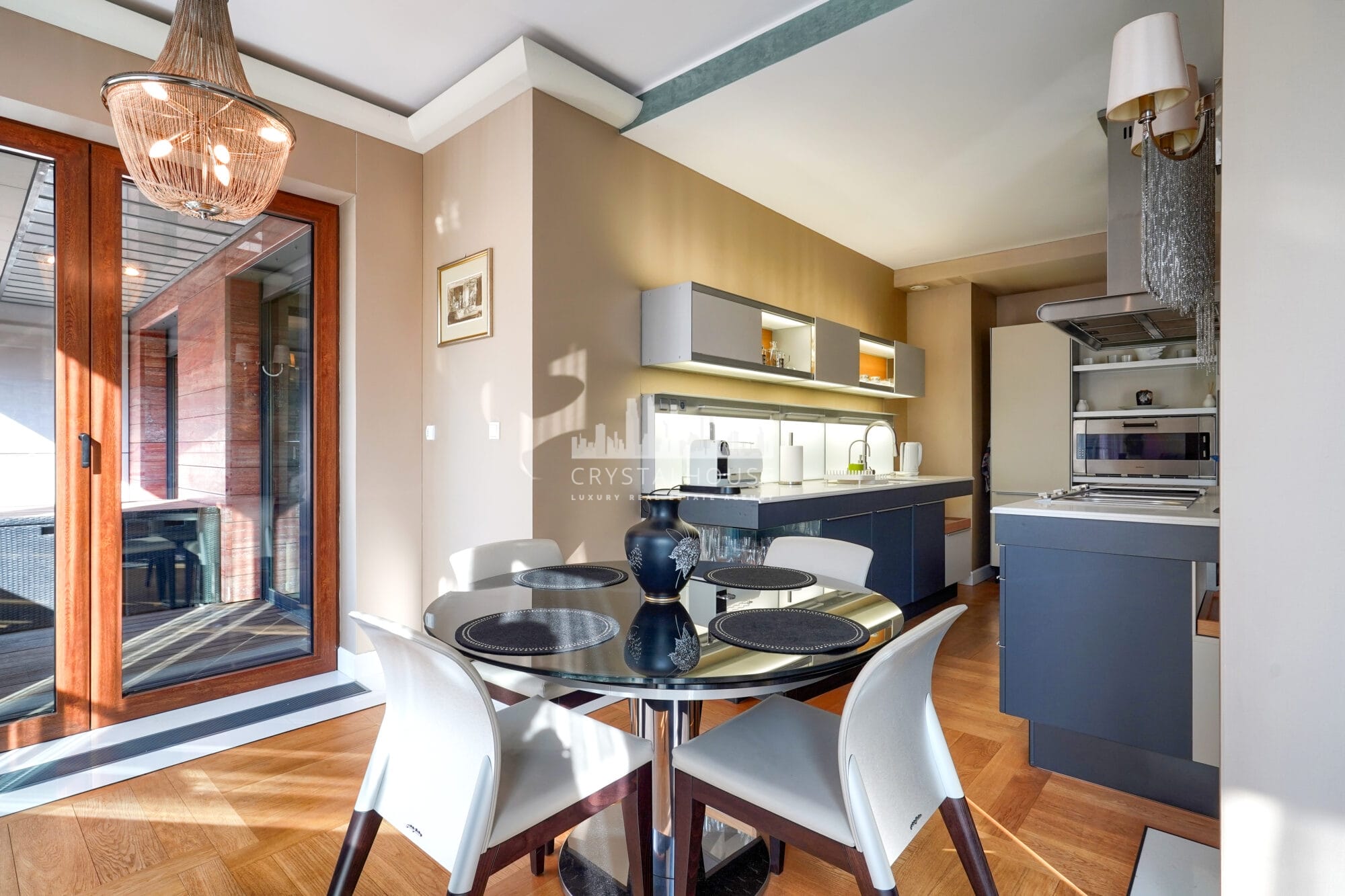 Apartament został wykończony w standardzie fit-out premium, z użyciem materiałów i wyposażenia marek z najwyższej półki: