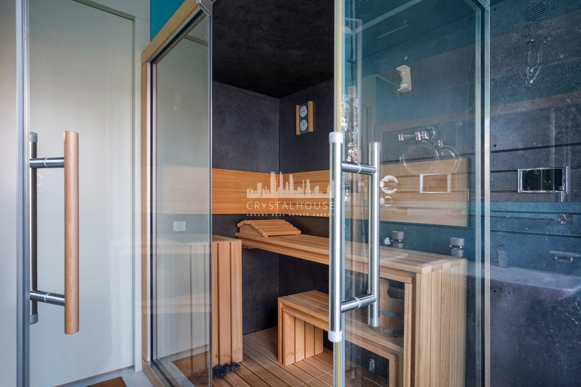 • główna sypialnia (master bedroom) z prywatną łazienką z prysznicem, sauną i garderobą,