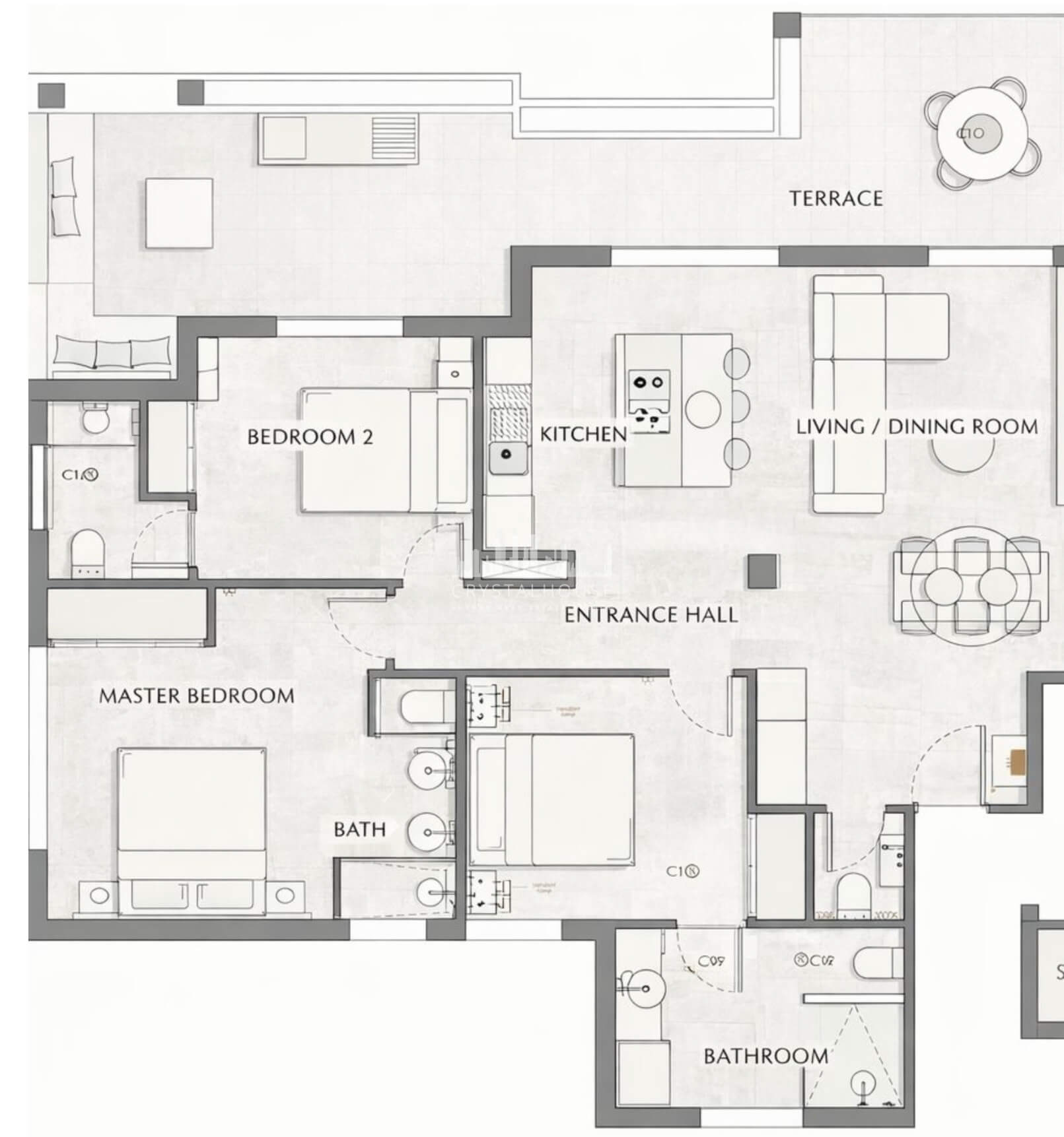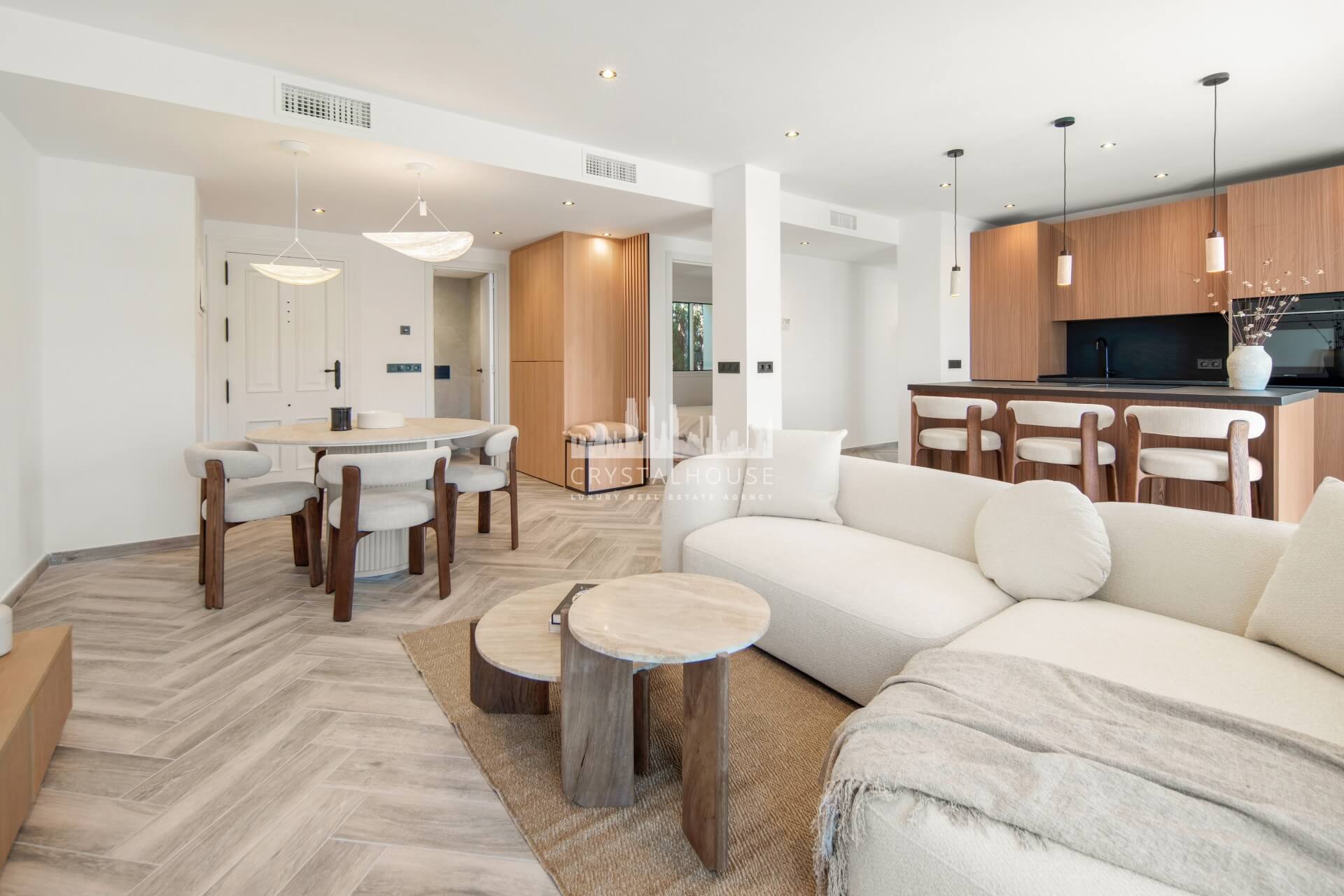 Pięknie przeprojektowany i sprzedawany w pełni umeblowany, apartament wyróżnia się wysokiej jakości wykończeniem w całym wnętrzu. Każda z trzech przestronnych sypialni posiada wbudowane szafy. Nieruchomość oferuje elegancki, otwarty układ salonu, tworzący jasną i płynną przestrzeń między salonem, jadalnią i kuchnią — idealną dla nowoczesnego śródziemnomorskiego stylu życia.