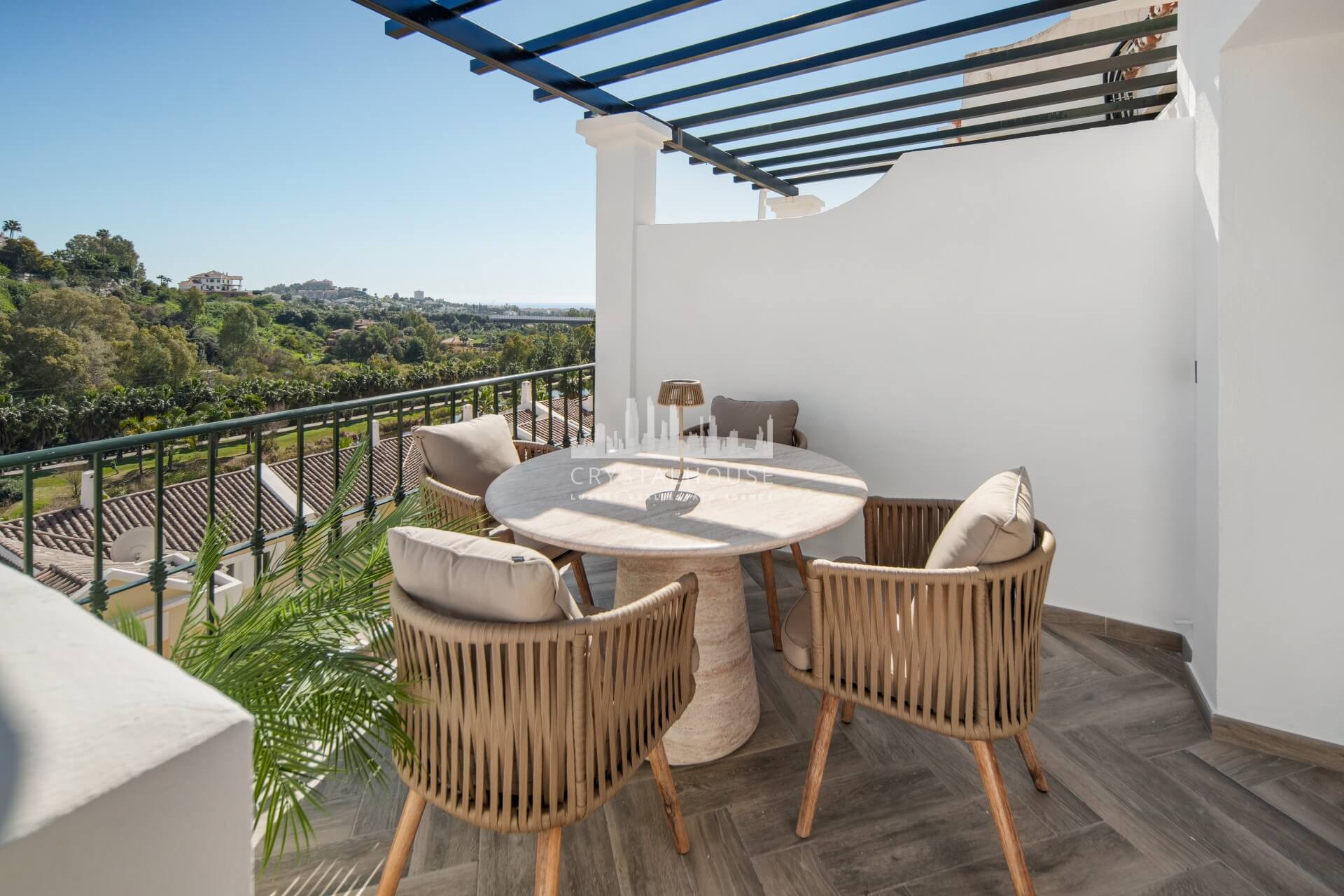 Odkryj ten wyjątkowy, całkowicie odnowiony penthouse położony w prestiżowej dzielnicy La Quinta w Marbelli. Usytuowany w bezpiecznym, zamkniętym osiedlu, ten luksusowy apartament z 3 sypialniami i 3,5 łazienkami oferuje eleganckie połączenie komfortu, prywatności i doskonałej lokalizacji.