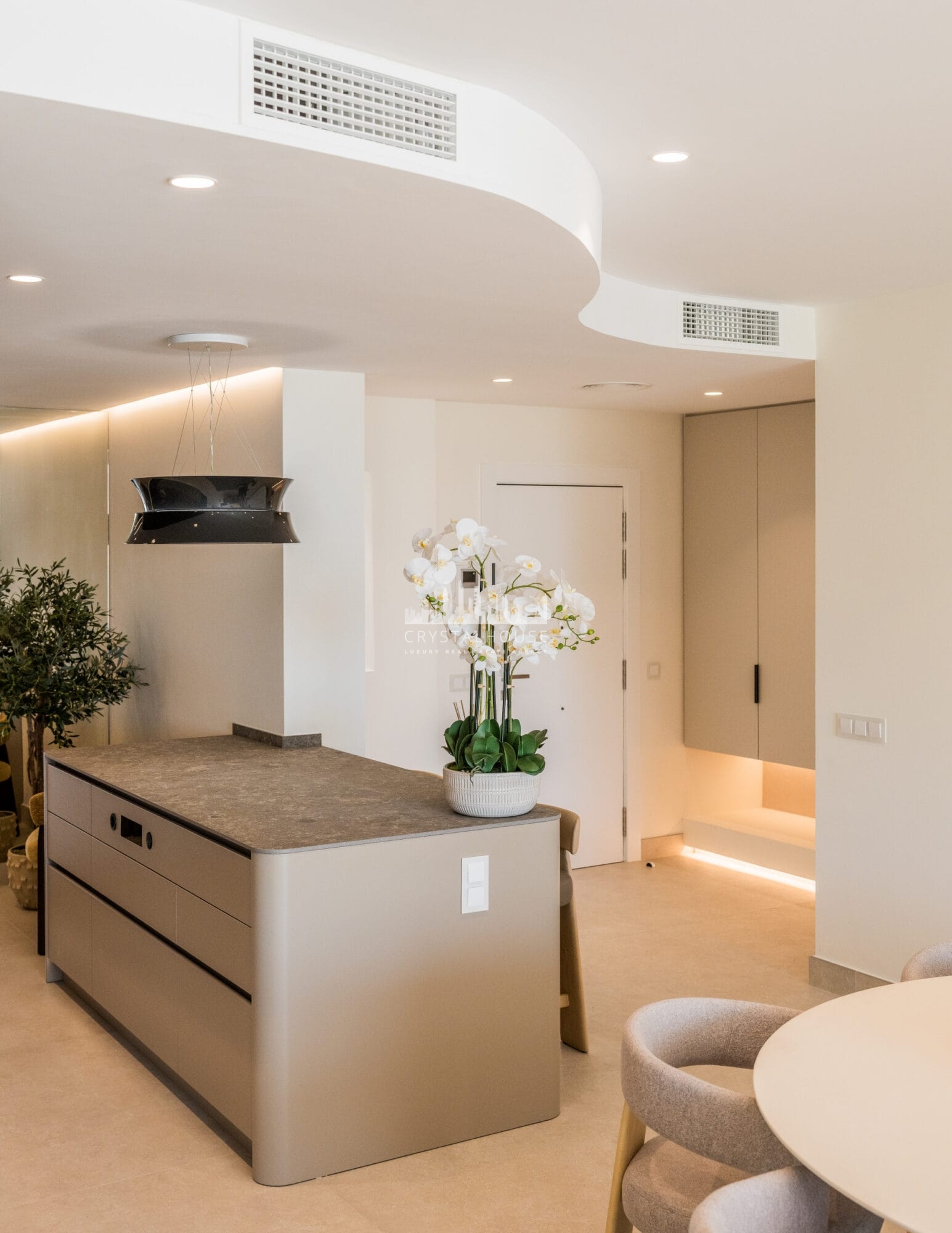 Oszałamiający apartament z trzema sypialniami, położony w ekskluzywnej strzeżonej społeczności Bahia Del Velerin, Estepona. Ten niedawno odnowiony obiekt oferuje luksusowe życie w najlepszym, w pełni umeblowane i wykończone na najwyższym poziomie. W obiekcie znajduje się kuchnia open- plan, przestronne wnętrza i zapierające dech w piersiach widoki na morze. Dodatkowe funkcje, w tym parking podziemny, magazyn i dedykowana pralnia. W strzeżonej społeczności z całodobową ochroną mieszkańcy mają dostęp do dużego wspólnego basenu i pięknie utrzymanych ogrodów. Doskonale położony w odległości spaceru od plaży, sklepy, restauracje i wszystkie niezbędne udogodnienia, ten penthouse łączy elegancję, komfort i doskonałe życie na wybrzeżu.