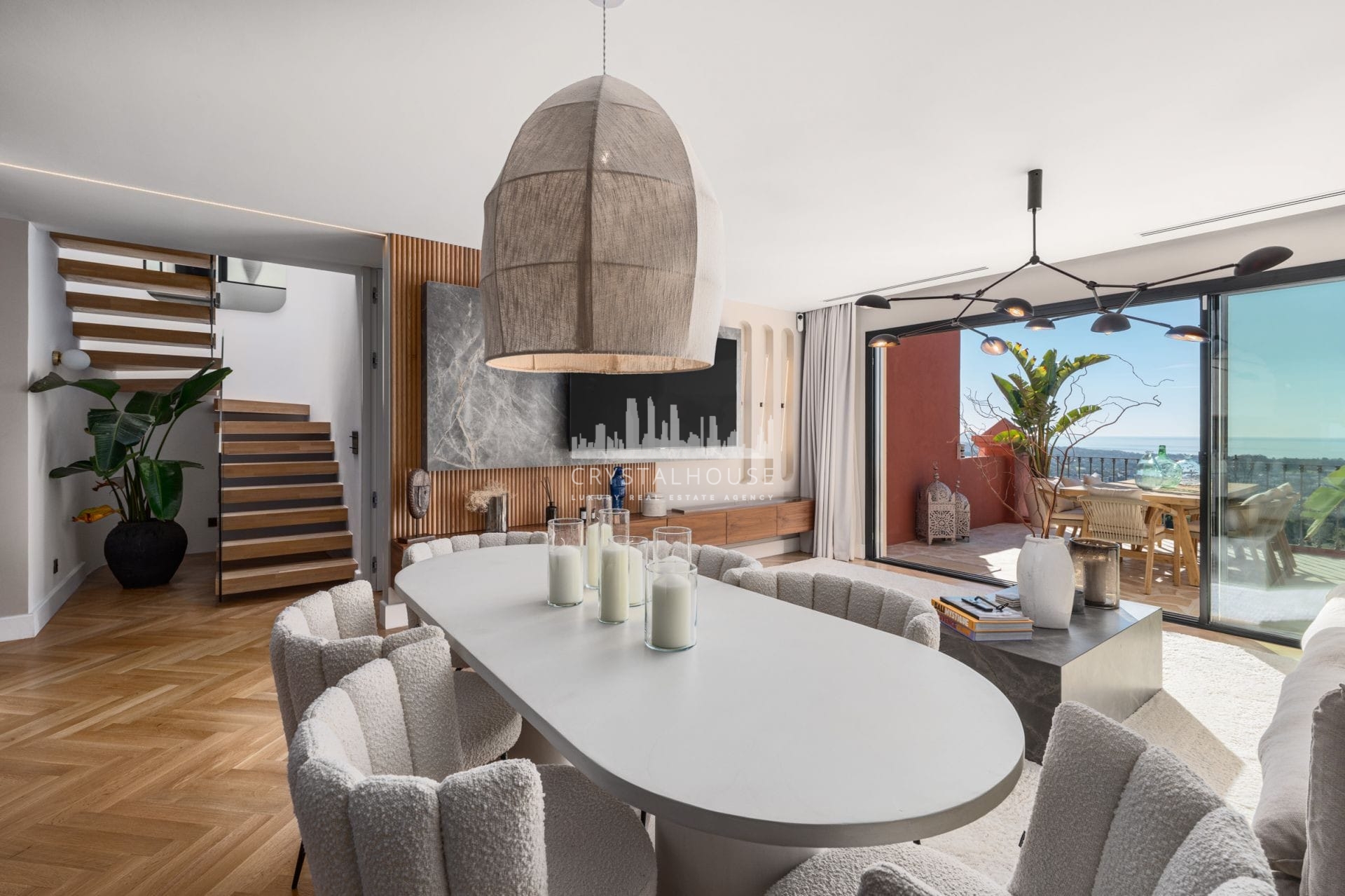 Położony w bezpiecznej i spokojnej dzielnicy Torre Halcones, ten starannie odnowiony dwupoziomowy penthouse zajmuje dwie kondygnacje i ma około 180 metrów kwadratowych powierzchni wewnętrznej, uzupełnionej o przestronny taras z rozległym widokiem na Morze Śródziemne, pobliskie pola golfowe i pasmo górskie Sierra de las Nieves.
